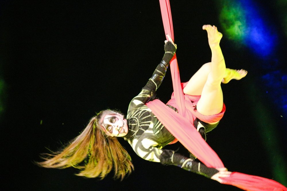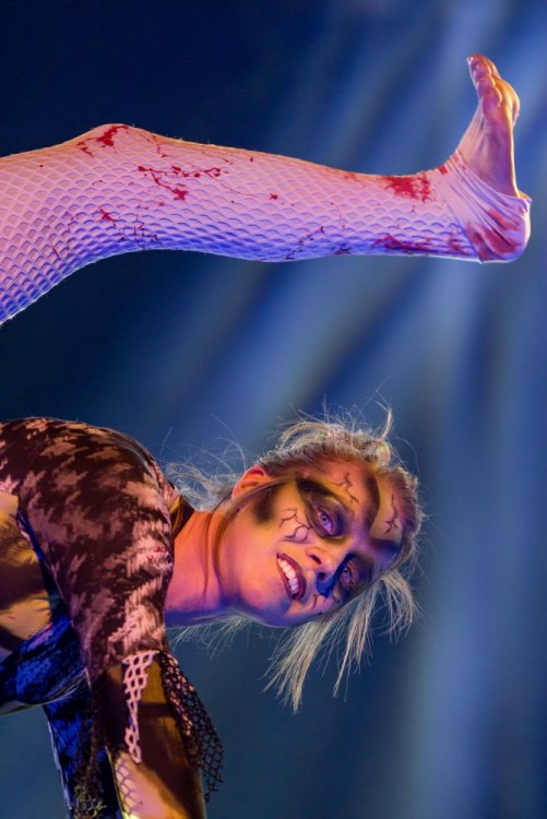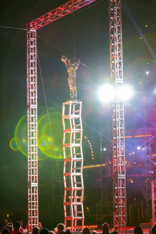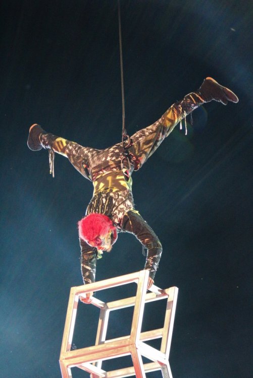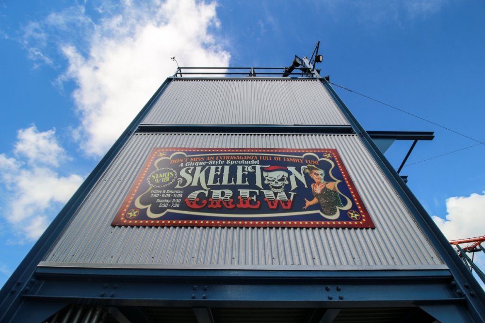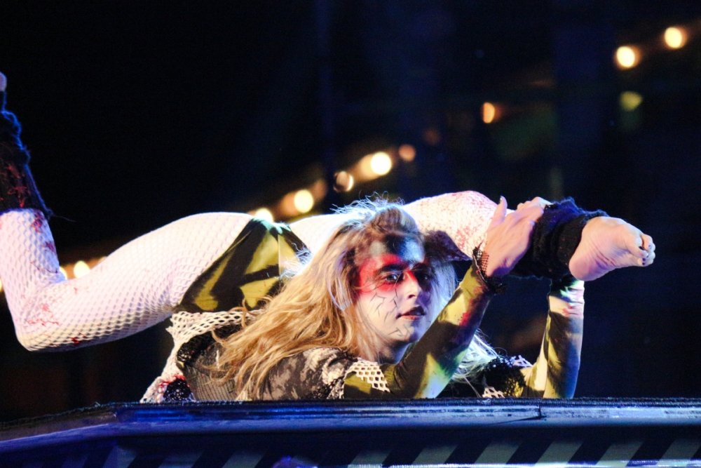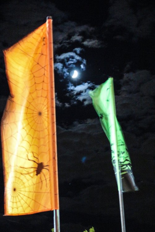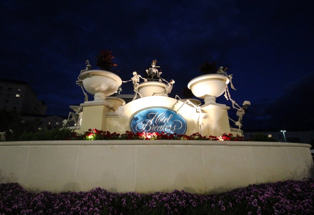 Con't Now that is creepy. Still love the rotunda remodeling. No Surf Bar this time. Breakers - looking grand. The lone outdoor pool. Down for high winds - ha! It's his fault. This turned out better than expected. I found pacman on the Giant Wheel. This is over here now. Troika Troika Troika - was out of control. Eerie Raptor shot. The buckets were running now! It was a perfect fall-like night. Sideways jack-o-lantern from the SkyRide. A look from the station. Led's with designs were all over the main midway. Even Power Tower gets a special color package this time of year. Blaze - is that that the old Mantis sign? So this is what I saw when I arrived at the Skeleton Crew show... I guess she's elasti-girl. Ouch. This guy spun around on his iron hula-hoop. These guys just hung out and looked creepy. Ta-da! She came in for a swing. She did a great job. She's OK - I promise. This act got the best response - too bad she moved so fast I could not get a clear shot of her. This was the best I could do. At least she stood still at the end. I guess this would be the Skeleton Crew. They were fun. Thank you and good night. More nice theming. Get it? Just hanging out. This was new - some little booth with projected faces - I guess they sing or something. Ok - time to ride - then time for rest.