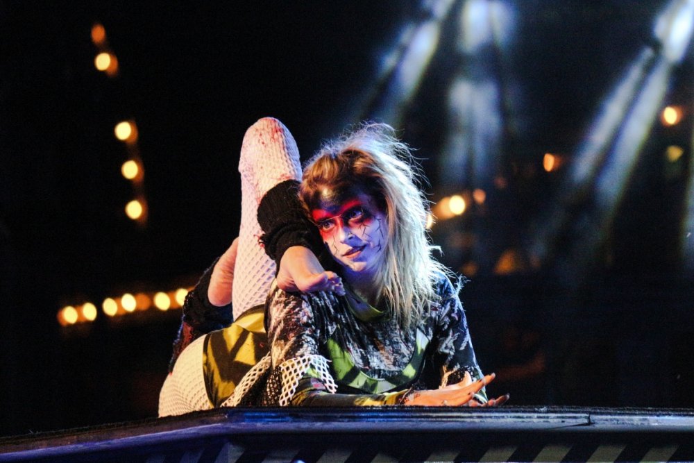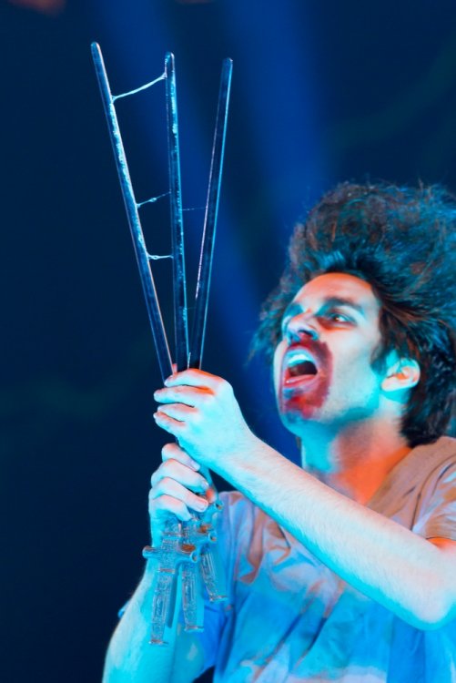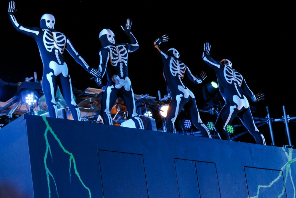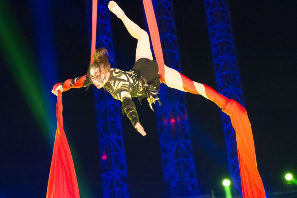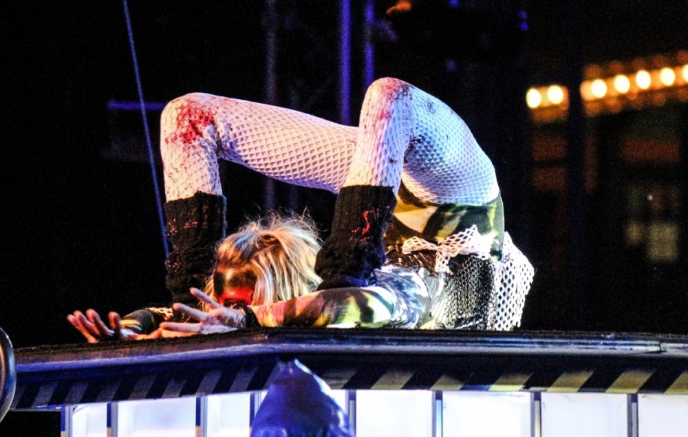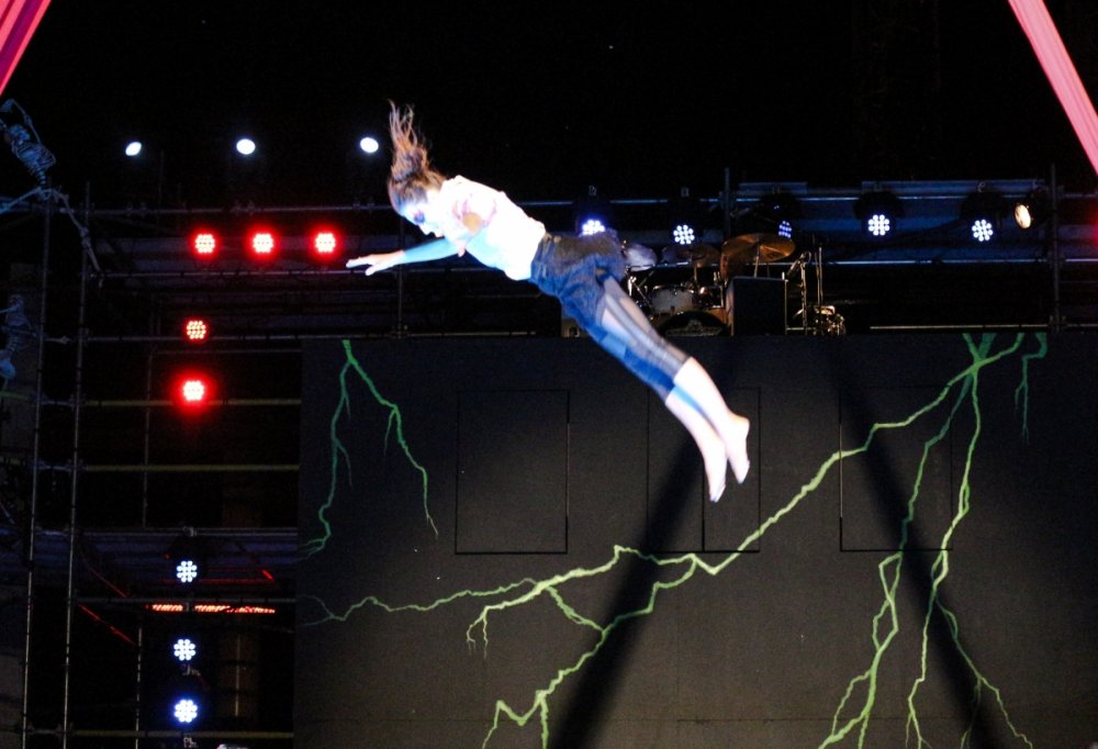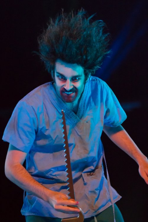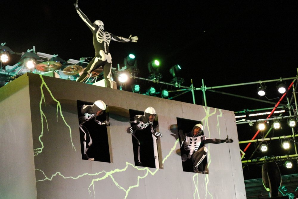 Con't Now that is creepy. Still love the rotunda remodeling. No Surf Bar this time. Breakers - looking grand. The lone outdoor pool. Down for high winds - ha! It's his fault. This turned out better than expected. I found pacman on the Giant Wheel. This is over here now. Troika Troika Troika - was out of control. Eerie Raptor shot. The buckets were running now! It was a perfect fall-like night. Sideways jack-o-lantern from the SkyRide. A look from the station. Led's with designs were all over the main midway. Even Power Tower gets a special color package this time of year. Blaze - is that that the old Mantis sign? So this is what I saw when I arrived at the Skeleton Crew show... I guess she's elasti-girl. Ouch. This guy spun around on his iron hula-hoop. These guys just hung out and looked creepy. Ta-da! She came in for a swing. She did a great job. She's OK - I promise. This act got the best response - too bad she moved so fast I could not get a clear shot of her. This was the best I could do. At least she stood still at the end. I guess this would be the Skeleton Crew. They were fun. Thank you and good night. More nice theming. Get it? Just hanging out. This was new - some little booth with projected faces - I guess they sing or something. Ok - time to ride - then time for rest.