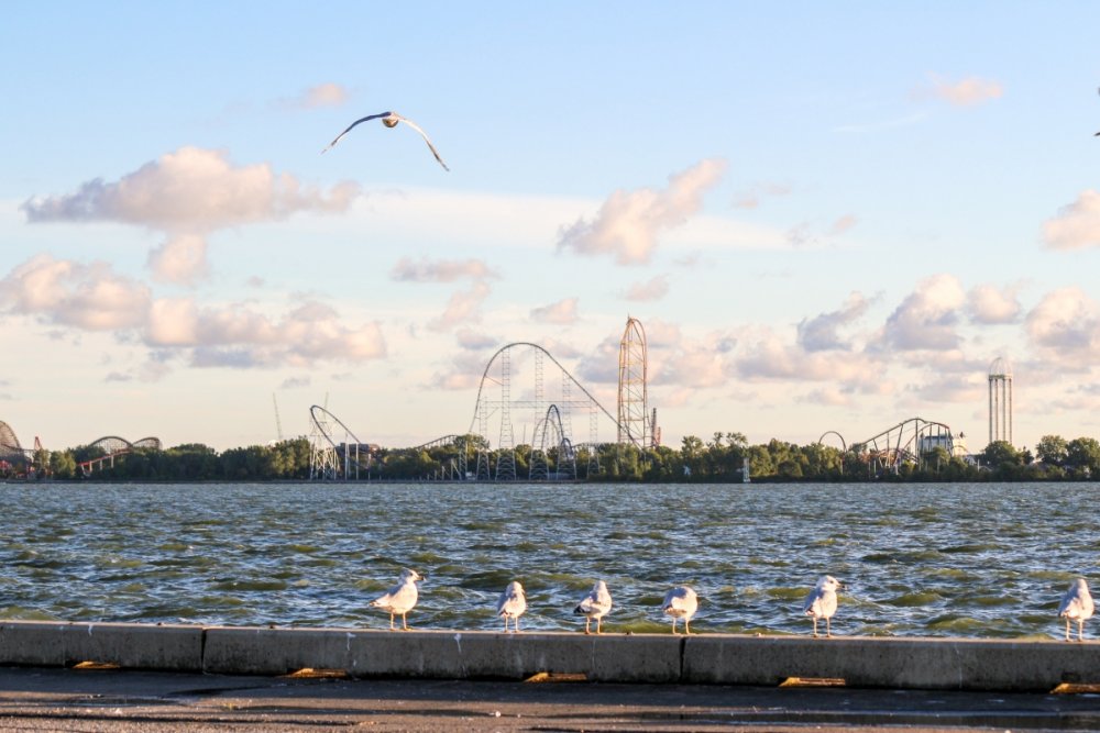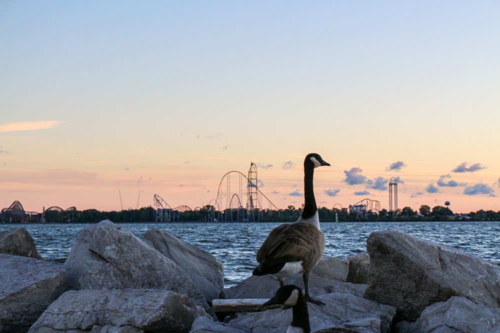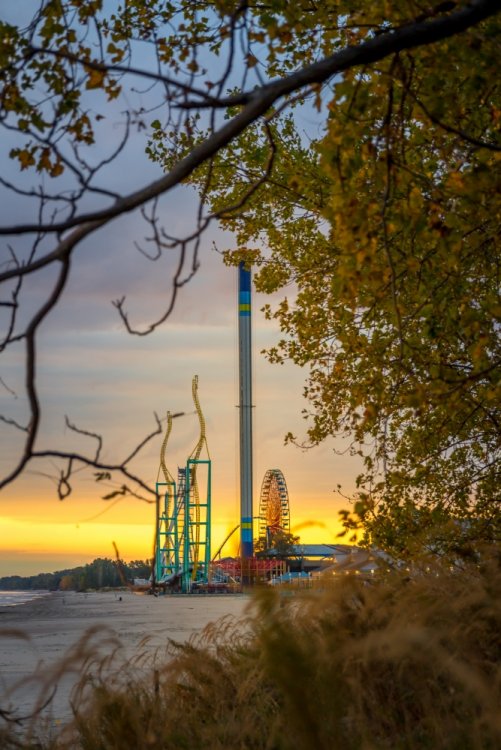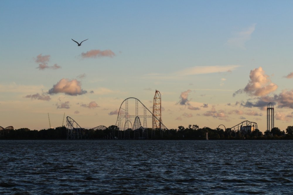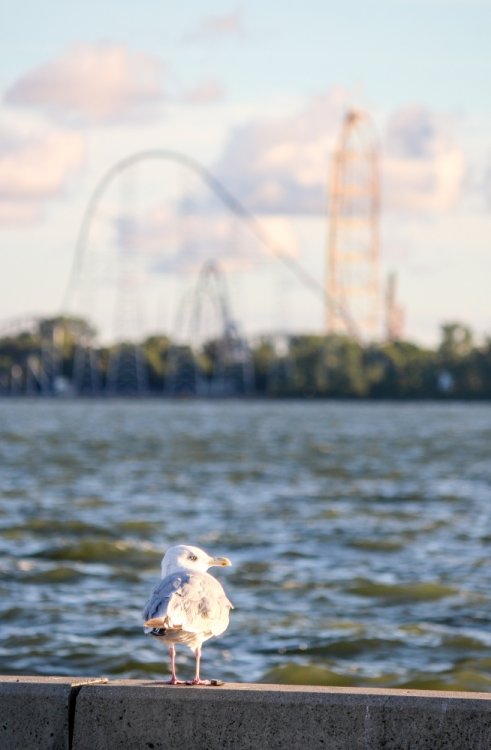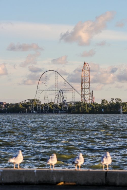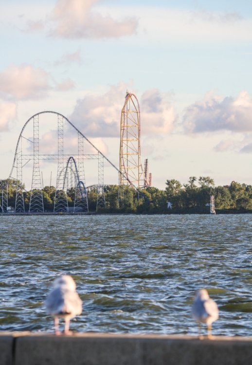 Part II Taking a closer look a a couple of Intamin giants. A peak at the front gate from across the bay. A couple of B&M lift hills. Love the silhouette of Wicked Twister and the Giant Wheel. Let's look at them all together. These guys decided to show up. Taking in the view. Loved the little puffs of clouds this morning. Valravn sighting! Headed to its new home perhaps... Then a cyclists scared the geese away. Things were brightening up. A coaster enthusiast's dream. I spooked the seagulls. It was the morning of birds. They started to reclaim their space. Probably thinking of all those elephant ear crumbs over there. All in a row. This big guy giving me the evil eye. Looked like they were deciding which to crap on first. To the park! Always arrive nice and early! Just an amazing morning on the peninsula. Some interesting sights in the employee lot. Let's take a look at this beauty. I guess if you do a kick-ass job you get a close parking spot. To protect and serve Cedar Point. A look at that first drop. Camelback looking large. MCBR A view back to the starting point. Only real coaster nerds would love to walk down these stairs. First train of the day! Here she comes. Over the camelback. I like this little drop after the MCBR. Next train - back, outside left is the best sport for this. Headed towards the front gate. Coming back - next to the keyholes. About to go keyholing Giant pumpkins greet you at the main gate. Turning around. Raptor through the fall landscaping. No tears were shed. Giant pumpkin over the fountain is new. This guy was still out cold. Quite the contrast on this beautiful morning. The throne is pretty epic. Great little show - check it out! Millennium Force rising from the trees. Peek-a-boo! Headed up the first airtime hill. Coming back on the smaller airtime hill. Some remains of White Water Landing Launched lift - yes please. Such an awesome sight - it never gets old. Skyhawk walk on - sure! For the Arrow mine train lover - I know you're out there. Time to check out this beast. Back down they come. Crossing the finish. 120MPH water ride? Dinosaurs Alive is good for something - these views. Always trains full of smiles and hands up! T-Rex vs. Millennium Force... who will win? Carnivorous dino's and Millennium Force - quite the combo. More hands up and smiles! Catching some air! Whee! Bye Millennium Force! Looking down on Millennium Force's lift hill! This gord-o-saurus was hanging out. Best 17 seconds in the park! Trying to be creative. Don't eat the train! Cool pumpkin-snake. Someone raided the farmer's market. Another nice addition for HalloWeekends. Some CorkScrew love. The Corkscrew's iconic midway presence.