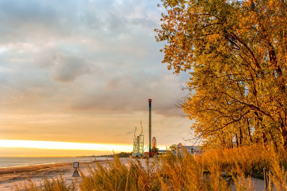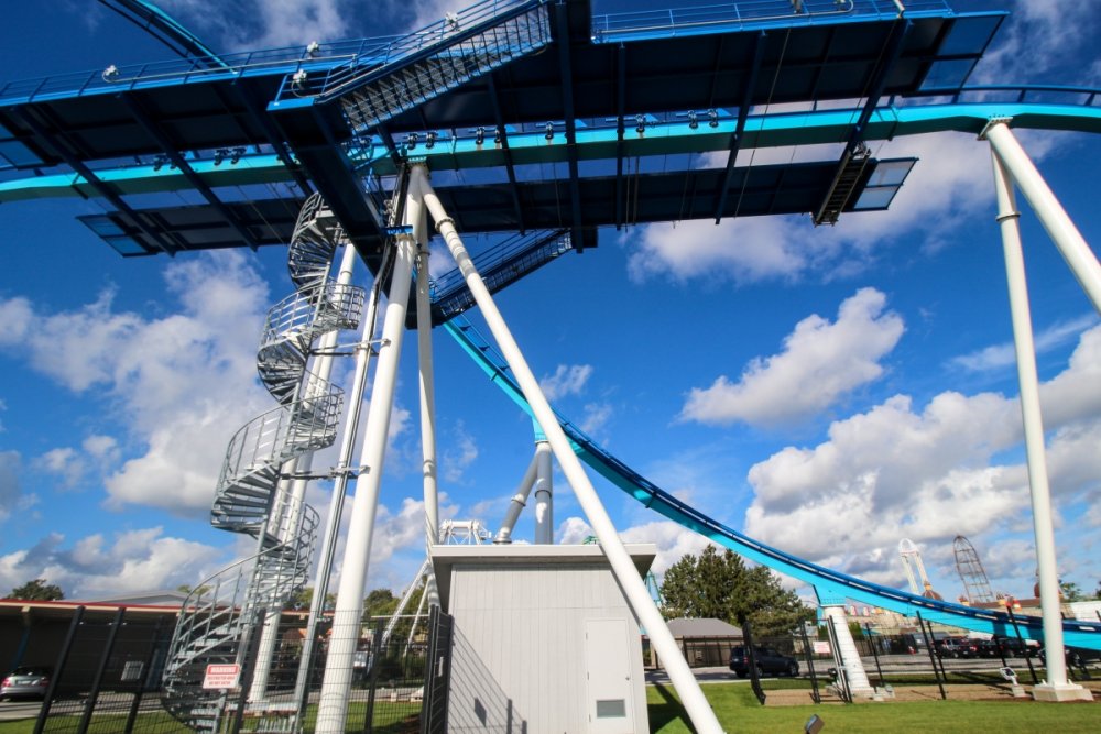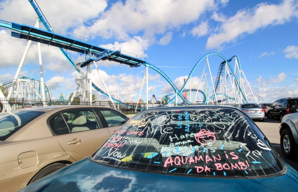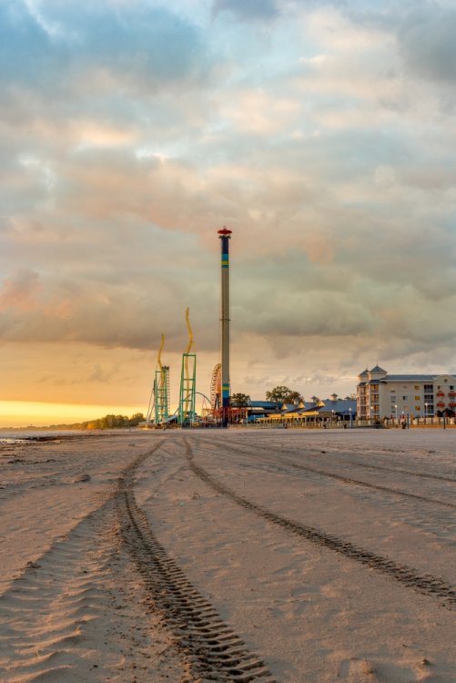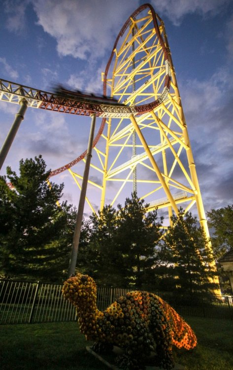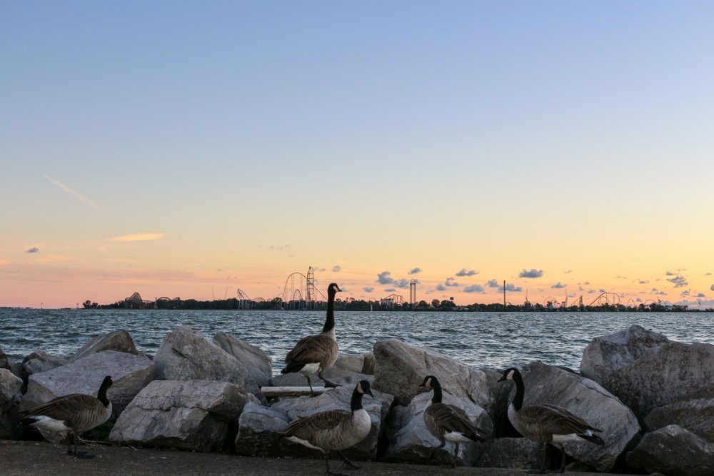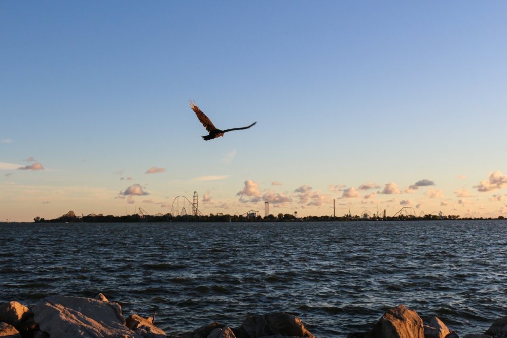 Part II Taking a closer look a a couple of Intamin giants. A peak at the front gate from across the bay. A couple of B&M lift hills. Love the silhouette of Wicked Twister and the Giant Wheel. Let's look at them all together. These guys decided to show up. Taking in the view. Loved the little puffs of clouds this morning. Valravn sighting! Headed to its new home perhaps... Then a cyclists scared the geese away. Things were brightening up. A coaster enthusiast's dream. I spooked the seagulls. It was the morning of birds. They started to reclaim their space. Probably thinking of all those elephant ear crumbs over there. All in a row. This big guy giving me the evil eye. Looked like they were deciding which to crap on first. To the park! Always arrive nice and early! Just an amazing morning on the peninsula. Some interesting sights in the employee lot. Let's take a look at this beauty. I guess if you do a kick-ass job you get a close parking spot. To protect and serve Cedar Point. A look at that first drop. Camelback looking large. MCBR A view back to the starting point. Only real coaster nerds would love to walk down these stairs. First train of the day! Here she comes. Over the camelback. I like this little drop after the MCBR. Next train - back, outside left is the best sport for this. Headed towards the front gate. Coming back - next to the keyholes. About to go keyholing Giant pumpkins greet you at the main gate. Turning around. Raptor through the fall landscaping. No tears were shed. Giant pumpkin over the fountain is new. This guy was still out cold. Quite the contrast on this beautiful morning. The throne is pretty epic. Great little show - check it out! Millennium Force rising from the trees. Peek-a-boo! Headed up the first airtime hill. Coming back on the smaller airtime hill. Some remains of White Water Landing Launched lift - yes please. Such an awesome sight - it never gets old. Skyhawk walk on - sure! For the Arrow mine train lover - I know you're out there. Time to check out this beast. Back down they come. Crossing the finish. 120MPH water ride? Dinosaurs Alive is good for something - these views. Always trains full of smiles and hands up! T-Rex vs. Millennium Force... who will win? Carnivorous dino's and Millennium Force - quite the combo. More hands up and smiles! Catching some air! Whee! Bye Millennium Force! Looking down on Millennium Force's lift hill! This gord-o-saurus was hanging out. Best 17 seconds in the park! Trying to be creative. Don't eat the train! Cool pumpkin-snake. Someone raided the farmer's market. Another nice addition for HalloWeekends. Some CorkScrew love. The Corkscrew's iconic midway presence.