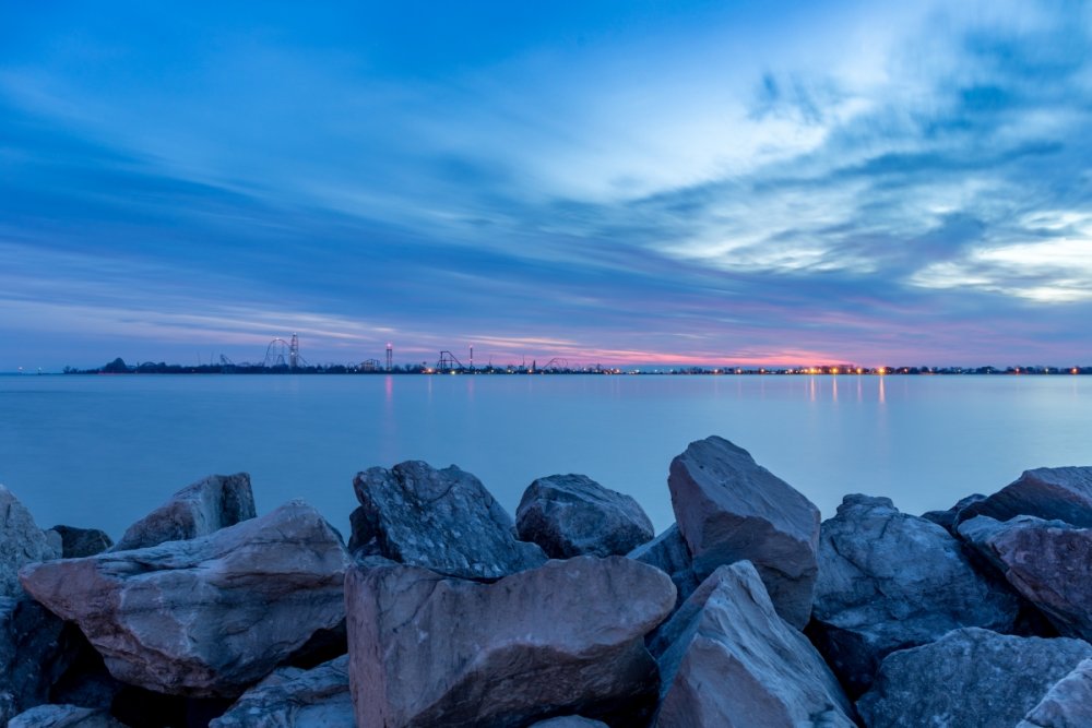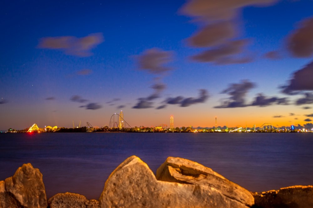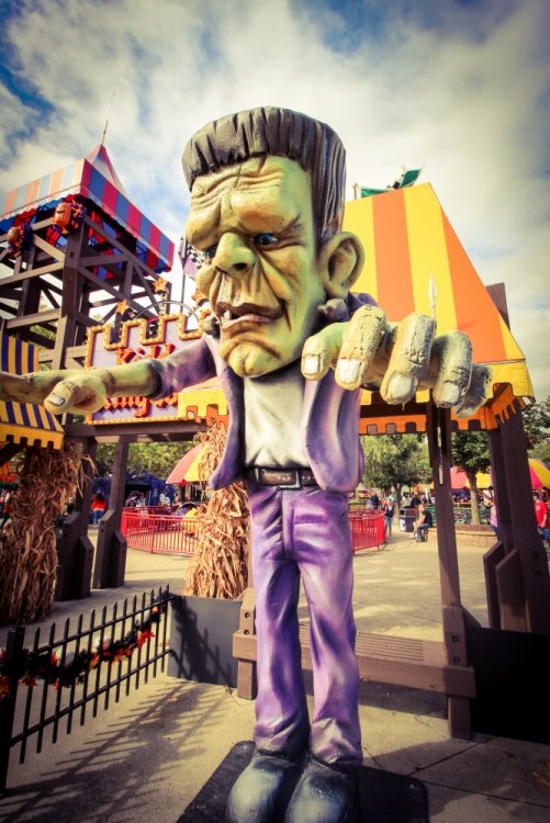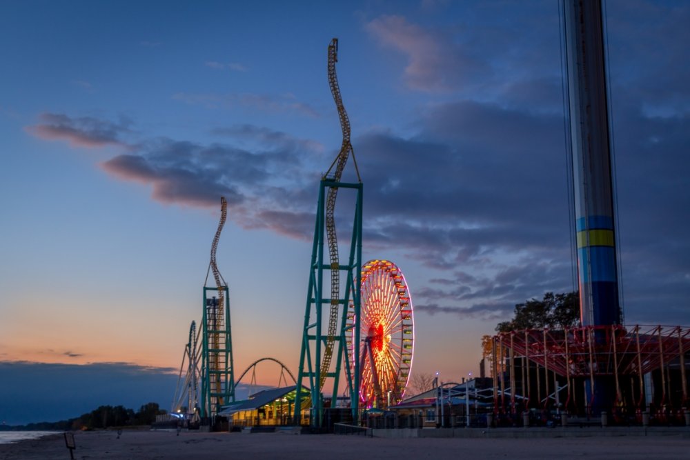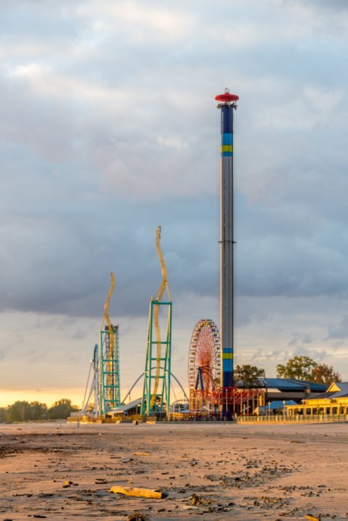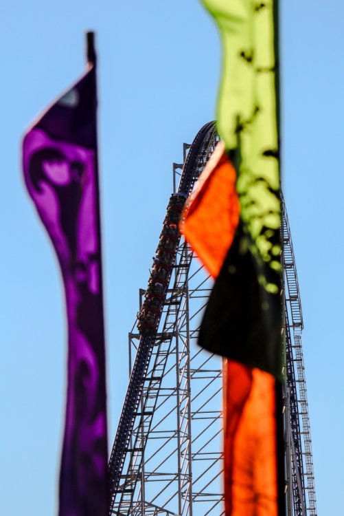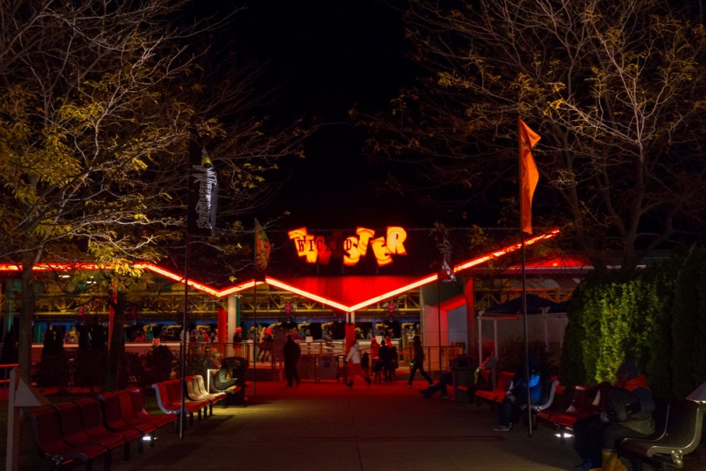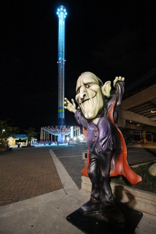 Decided to take one more full trip to the Point for the year. Went with the kiddos and my sister came along for her first trip. We arrived at the park around 8:30 Friday evening - it was chilly and a little windy so a few rides were down like Dragster and Raptor. We checked out a few shows, got a ride on Gatekeeper, Wicked Twister and Millennium Force then left about 11:30. We stayed at Breakers Express the first night so I went over to Battery Park to get some sunrise photos - then we head into the park for early entry. Again it was a chilly day but not as windy - everything but Maverick seemed to be running. I splurged for FastLane Plus (actually not a bad deal for Platinum Pass holders $100 vs. $150) so we were able to get a decent amount of riding in and go at a leisurely pace. I had to explain to my sister who Tony Clark was and what a tweetup was and let her know that on a crowded day it would be tough to win unless we got lucky - which we did! We had rode Dragster and head up to the restrooms near Matterhorn. As I was leaving I saw a fellow carrying a handful of Fright Lane passes - it was "Intern" Jordan!!! Not 10 seconds later Tony tweeted out that he was at the Valravn center!!! Woo Hoo! We quickly WALKED over and there was already a few folks in line. We tried to do the math as he handed out the Fright Lanes and my sister and myself were lucky to score Fright Lane passes - and she got a coin! It was pretty exciting! My kids opted for the line skippies as no matter how hard I try they won't do the haunts. So FINALLY I got to do the haunts - and on this insanely crowded night we were able to walk right in to all the haunts - the only waits were 20 minutes for Eerie Estates and about 15 minutes for Cornstalkers - everything else we went right in. We also got to experience the Skeleton Key rooms. Here's how I ranked the haunts... 1. Eerie Estates - Best theming and best Skeleton Key room - loved it. 2. Zombie High - Great theming and great cast that made the Skeleton Key room a hoot. 3. Cornstalkers - Lots of good jump-scare moments 4. Slaughter House - It was ok and Skeleton Key room was different 5. Eden Musee - Again it was ok and Skeleton key room was different - but really only 1 guest can truly experience. 6. Eternity Infirmary - Liked the "spinning room" walkway part - Worst Skeleton Key Room - just stupid. 7. Hexed - OK - no Skeleton Key room - but props to Goat Man who was entertaining the queue. Everything was pretty much PG-13. I was hoping for a little more intensity from the screamsters in the houses. I'm glad we got to do them all and not really wait - plus with the colder weather it was nice to warm up a bit. I would do the top 3 again - they were really very well done - the rest I personally wouldn't do again. Next morning I spent some time at the beach at Hotel Breakers to try and get some photos - I was able to get a a few keepers for sure. After that we head in for early entry and unfortunately Maverick was still down while Millennium Force and Rougarou were still cycling with water dummies. We head up and walked on Gatekeeper then came back to find Millennium Force and Rougarou up. Maverick would not come up before we had to leave so that was a bummer. That's OK because we are already planning our trip next year to get that credit and Valravn! Here's some photos I took - not a lot of ride photos as we were too busy riding / doing haunts ourselves but had time to see a few shows and take some morning / night shots... Enjoy! Stopped in the Red "Slaugher" Saloon to check out the Edge of Madness show Jazz hands! Lots of 80's rock was heard Jammin' Nice details with all the costumes. Stopped to watch the Skeleton Crew show Looks concerned - must have lost his big metal hoop. Dramatic climb with dramatic lens flare. Even with a safety line - that's pretty crazy. No safety lines for the silk aerial act She was very, very good - great performance. But this guy - stole the show. I don't know what was more impressive - his hair or the sword swallowing. He had swords of all shapes and sizes. Lubing one up. This got a lovely reaction of "yuck!" from everyone. Then the namesake of the act came out and bounced around for us. Stars were still out as I arrived. A closer look at the front gate. Longer exposer to soften the waves. This view never gets old. I look from further back. Pumping up the saturation for a more dramatic look. Brought the camera back out at sunset. Trying to get that nice bokeh. The Frontier Trail was lit up nicely. Snuck up the Thunder Canyon queue to get this shot. Loved the lasers along the trail. Crazy colors everywhere. The huge crowds made their way through the darkness and lasers. Nice mood lighting. This sign would fire up every few minutes or so. This guy was hanging out near celebration plaza. Up by Coaster Drive In. Loved the fall colors everywhere. I still love the Giant Wheel's LED package. Looks like a lightbulb needs changed. Even power tower gets lots of orange, green and purple hues. Pumpkins were everywhere near the Dragster midway. See - lots of them. Like, everywhere. Time to head back to Breakers for the night. Got lucky as I waited for sunrise as they fired up the Giant Wheel lights for like 5 minutes. This is when I don't feel so crazy standing on a 30 something degree beach at 7 AM. Sunrises over Lake Erie never get old. Tried to incorporate the fail foliage. A little wider shot. Sun came up and bathed everything in gold. Breakers taking in the morning sun. Loved the glare off the windows. Being creative with a Gator that just rode by. One last beach shot. Morning Breakers! A look out from the fire pits. The rotunda even had a little bat light show.