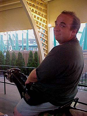 Craig and I take an airtime filled front seat ride on the Blue Streak! (photo by Jason Brooks)