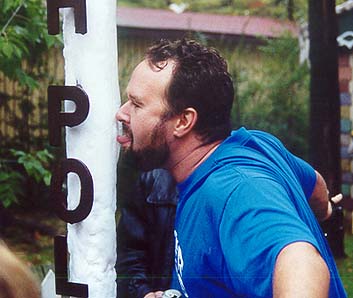 Uh-Oh! Someone has 'double-dog dared' Todd Long to stick his tounge to the pole!