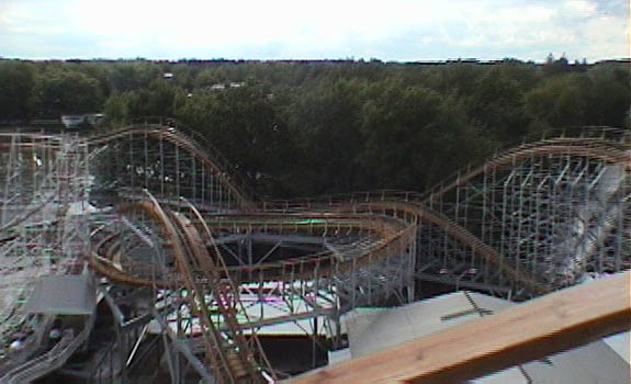On the lift hill, Cornball almost 'duels' with the Hoosier Hurricane.