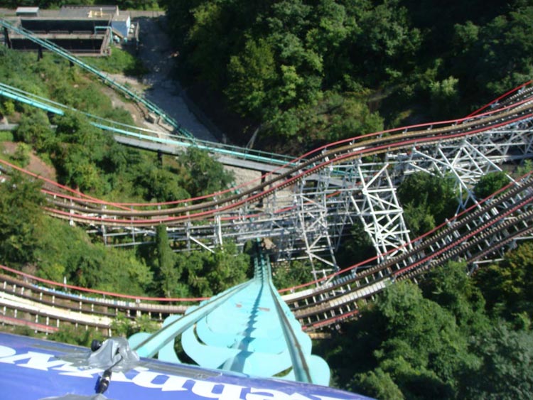 For those of you who don't know, Phantom's Revenge used to be Steel Phantom.  It's a "Hybrid" coaster.  This first drop is part of the old ride.