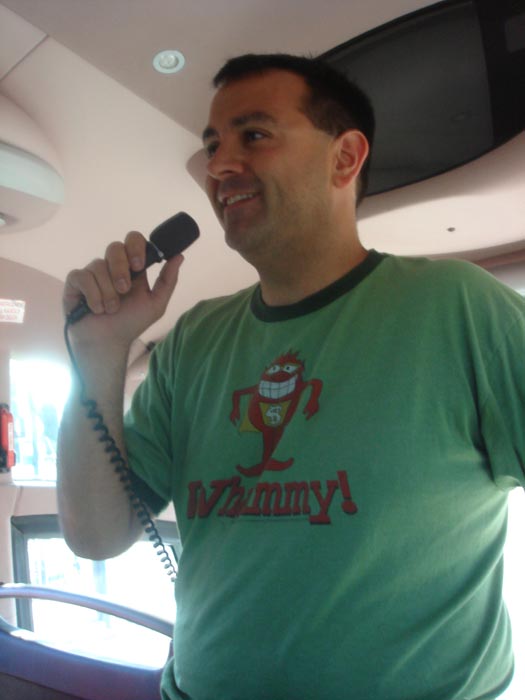 From the moment we all got on the coach, Robb grabbed the microphone and started babbling about Donkeys, video stores,