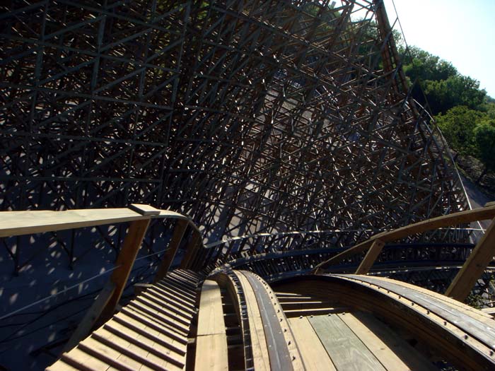 The first drop from a slightly different angle.  IMO, the twistyness really worked!  There was a bit of air and a nice lateral on the drop!