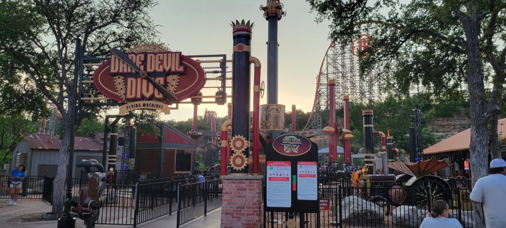 After three long years we finally returned to this park (Our favorite SF park easily!) The weather helped keep the crowds down both days (Saturday it was raining until after lunchtime and Sunday just plain hot and humid). I was eager to try out the three attractions added since our last visit: Pirates, DDD, and Joker. The Pirates of the Deep Sea was heavily themed, entertaining, and a welcome break from the outside heat. I found Dare Devil Dive Flying Machines to be surprisingly fun for what it was but not something I would want to ride again and again. The theming was really cool though. There was a costumed 'character' greeting riders in the queue - I think he was supposed to be 'the inventor'. Curiously, this ride did not elevate to the top on every cycle but stayed low to the ground. I only observed the planes up in the air once. Lastly, The Joker Carnival of Chaos was as fun as I expected. I really like these pendulum rides. I did notice there was a sign near the queue entrance advertising the world record specifications of this ride, still referring to it with the discarded name "Wild Card". Poltergeist was down but we already had the credits from prior visits. Still missed riding it though. I really liked Hustler's new paint job. The bonus of the day was the Rock The Night Grand Finale fireworks and laser show. I remember seeing a similar show three years ago and this one did not disappoint. The Diamond / DE seating area was nice too. Ride ops and food service were excellent. We will be back! Great addition to the park! Awesome theming but lacks the re-rideability of many other rides here. This view never gets old! Signs like this were all over the park. Possibly a haunt overlay to Poltergeist queue? Another great finale! We will be back1 point