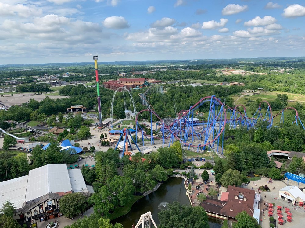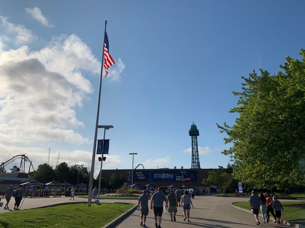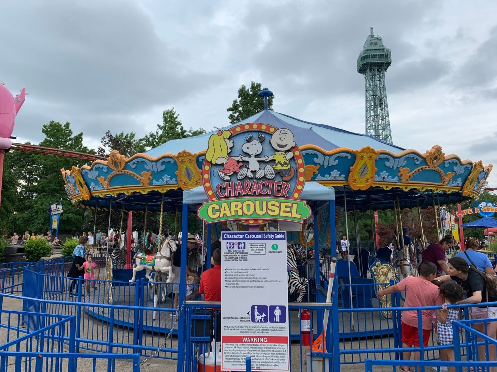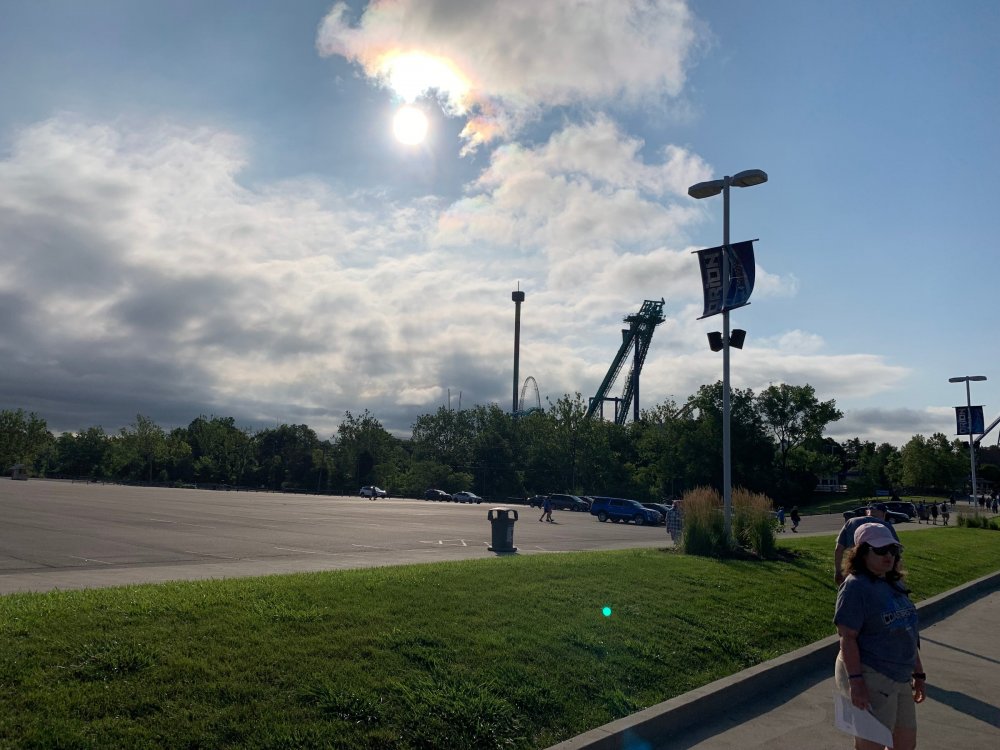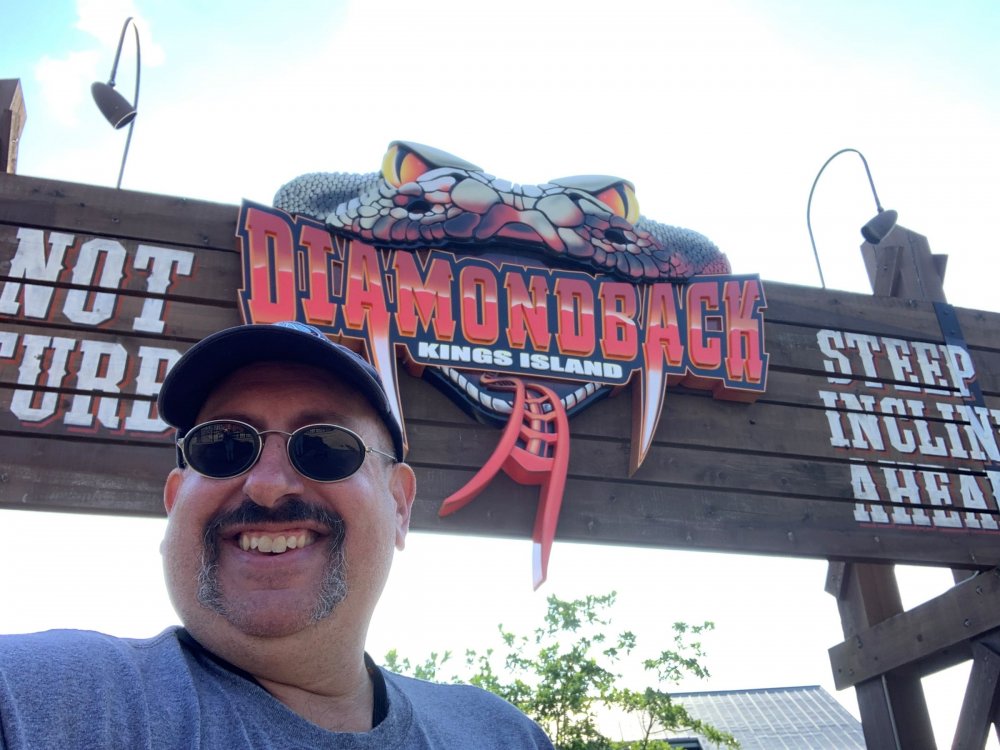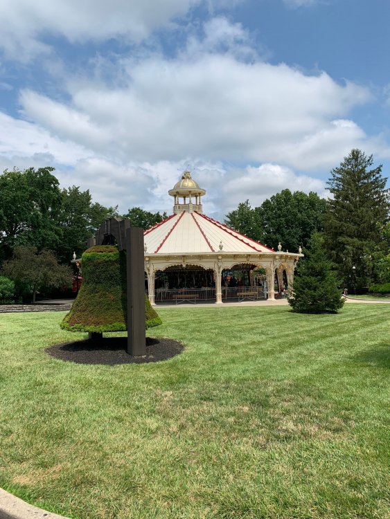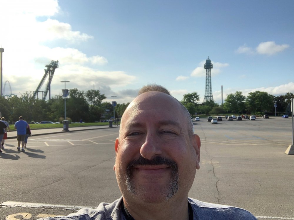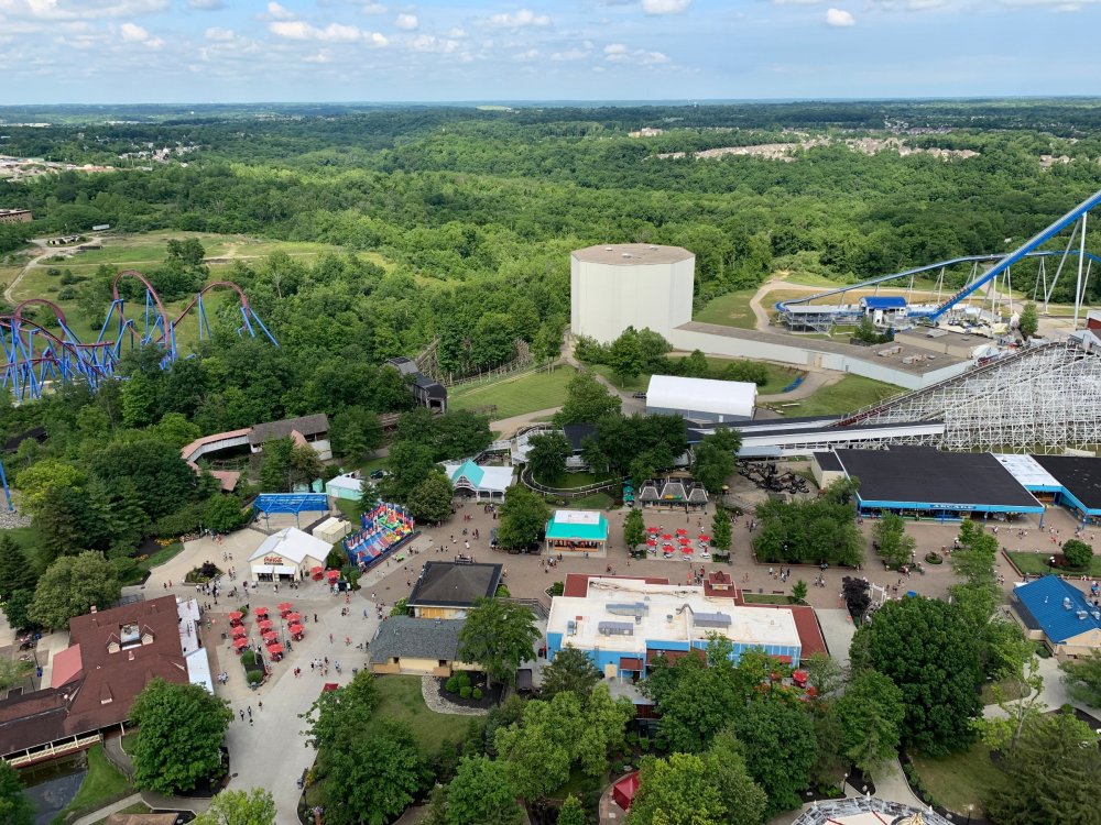 Friday, 7/9 - So I didn't sleep all that great, despite how tired I was, due to a mix of excitement & being in a room directly across from a stairwell. That typically wouldn't be much of an issue, but remember the hotel was sold out *and* one of the two elevators was not working. So that resulted in folks going in and out of that stairwell - and the resulting door slam behind them - up to ~3am. (I didn't complain, but I did, on the next night, put a towel down at the bottom of the door, so it won't slam shut, and that helped a lot. I believe we had planned to meet down in the lobby/breakfast area at 7:45, but I was up and ready by 7:15 anyways, so got ready (got peer pressured into wearing my Coasterstock shirt, even tho I felt like the kid that wears the concert shirt to school the day after the show!), and headed down to the lobby to partake in breakfast offerings. honestly, not bad at all. The Coffee left a LOT to be desired, but the omelettes (pre made, I'm sure) were decent and the hash brown patties and sausages were quite good. Lots of fresh fruit, oatmeal, dry cereal & waffles offered as well, but I didn't want to over-do it, since I tend not to be a breakfast person anyways. And we knew that there would be donuts offered at the ERT this morning by Diamondback anyways in a couple of hours. eventually Kim made her way down, then Joel, and by 8;20 we were in the car for the short trip across the freeway to Kings Island. I was so excited, I missed having my camera out to get the main entrance sign - even tho I was sitting in the back seat (thanks again for driving to the park each day, Kim!). But here's the view from the toll entrances at ~8:35 am. Coasterstock gets you free parking both days, and the parking opens ~2 1/2 hours before the park officially does. we parked pretty far up in the lot, and here's my first view of this wonderful place from the parking lot: yes, I'm a nerd. . even the Kings Island logo on the trash can excited me. . LOL we made our way up to the front gates, stopping for pics along the way (well. . I was stopping, and they kept waiting for me - hey, they'd been there before. . 1st time for me!) and we got thru the security gates eventually, and lined up for the main gates to open up for us right at 9am (during that short wait in line, Don & Chad - who organized the whole shebang went up and down the line saying good morning to everyone, and double-checking that everyone had their coaster club membership card (for whichever club/clubs they are a member of) . . Don and I briefly chatted about Carousels (we had discussed via email how excited I was about the Carousel ERT/anniversary) and then the gates were officially open, and I stepped foot into Kings Island. and who do we meet literally seconds after going thru the turnstiles into the park? Why we bump into Stacy Gretchen - who I last saw at Cedar Point on the TPR 2018 USA tour I introduced her to Kim & Joel, and we ended up seeing her (and her friends Adam & John many times during the event - including sitting with Stacy and John at dinner both nights. TPR representing! the morning's first ERT was at Mystic Timbers and Great Pumpkin Coaster (and then overlapping with Diamondback & Flying Ace Arial Chase), so I / we followed the crowd thru Camp Snoopy, and headed over to Diamondback. Yes, I rode Wilderness Run at Coastermania! at Cedar Point back in 2017, but that was historical as the 1st Intamin. I really had no interest, whatsoever, in riding a roller-skater loop kiddie coaster (tho it did get a bit of a line, as those with no shame lined up to get on it). I didn't *need* the credit tho, so we kept walking towards Diamondback. I'm not familiar with this charity "A Kid Again" but it seems to be a similar organization to "Coasting for Kids" - and I loved that they have a dedicated statue just outside the Camp Snoopy area. .so of course I snapped a pic of it. the design work on this (Boo Blasters, I think it's called) was so great. it wasn't open yet, but we would ride it the next day, and it surprisingly is an Omnimover type ride, that's also a shooting ride) as many of my friends know. . I'm a photo-op whore - it's very difficult to get me to walk past a character photo opportunity (especially at a park i've never been to before). and remember, we were getting to Diamondback THRU Camp Snoopy. . . soooooooo edit: just noticed you can see the line for Great Pumpkin Coaster behind me in this pic LOL but we did eventually make it to Diamondback, and got in line for my first ever ride in Kings Island. and what a great ride to start with. Diamondback is an airtime machine! especially in the front car.. wow, your butt doesn't even touch the seat for the majority of the ride after the 1st drop. for 1st ride, I waited for front row, but it was so good, that we immediately got off and got back in line (something that's rather odd for me. . I usually ride once, move on to next thing, and then go back for rerides on things I liked later. . but this one was so good? twice in a row!) Front Row: and Row 2 (which was a little more rattly, due to wheel I think, but still amazing): after two rides (and a quick hop into the Donut line - which had gotten way shorter by now. . they had lots of varieties too - I had an eclair - and I remembered to pop some Tylenol to prepare myself for the day using the frozen orange juice they were handing out as well), we headed over to Mystic Timbers. it was time to find out what was in the shed! a peek at Race For Your Life, Charlie Brown's flume. . still empty this early in the morning. .but looked like a fun flume ride (and wet, as we would find out the next day) Ok, so "what's in the shed?" is way, way overhyped - even if Kim was disappointed that I didnt' get the full "experience" - although the tape deck lit up, there was no 80's music playing, and it didn't play for the whole time we were there, even tho I got multiple rides (I think 16 total) on MT. But I did get to see all 3 ending 