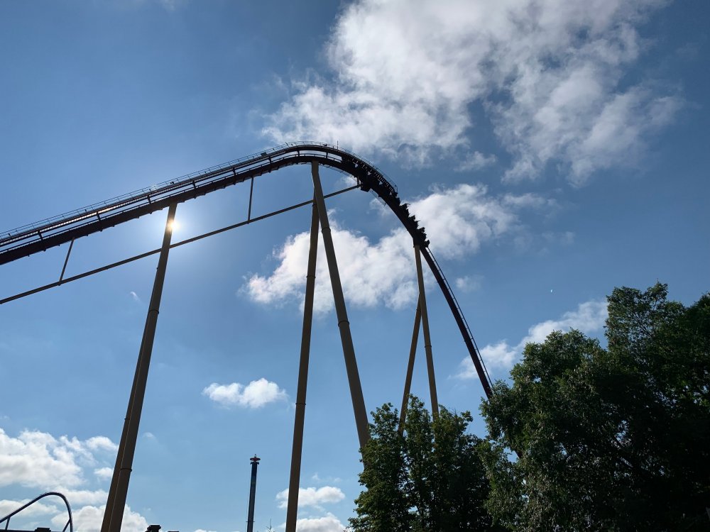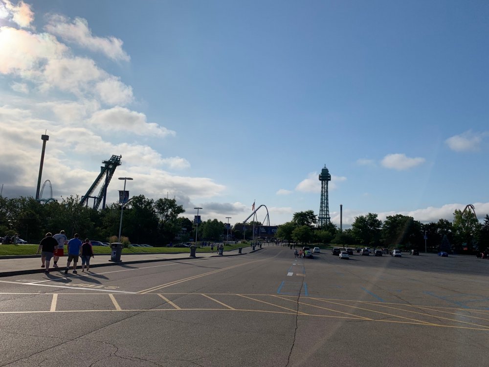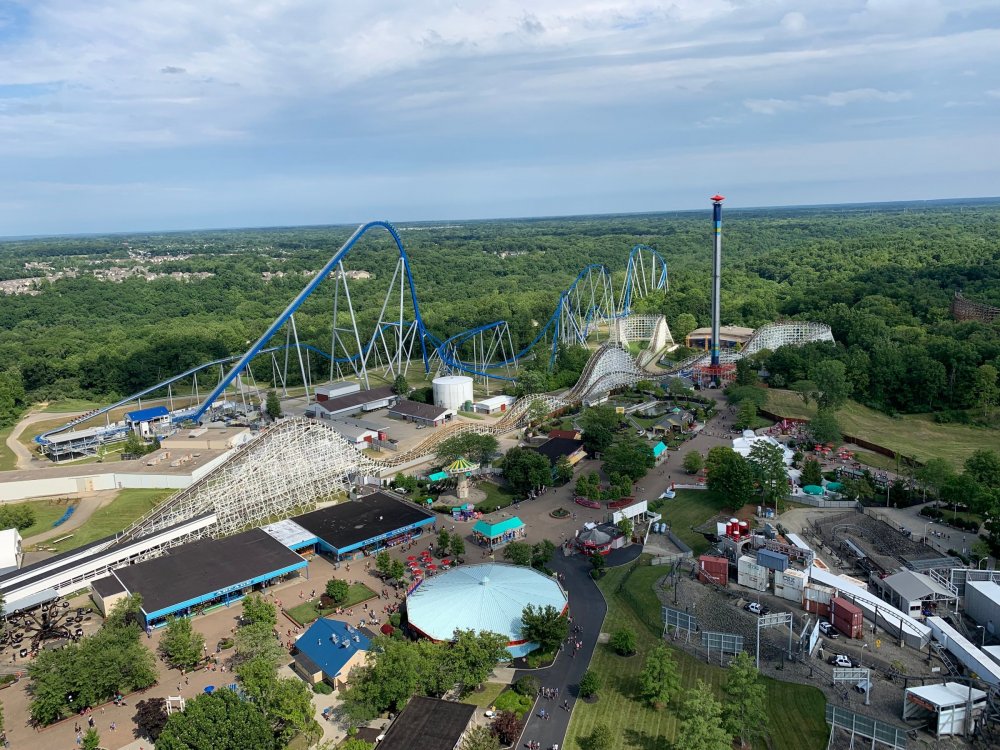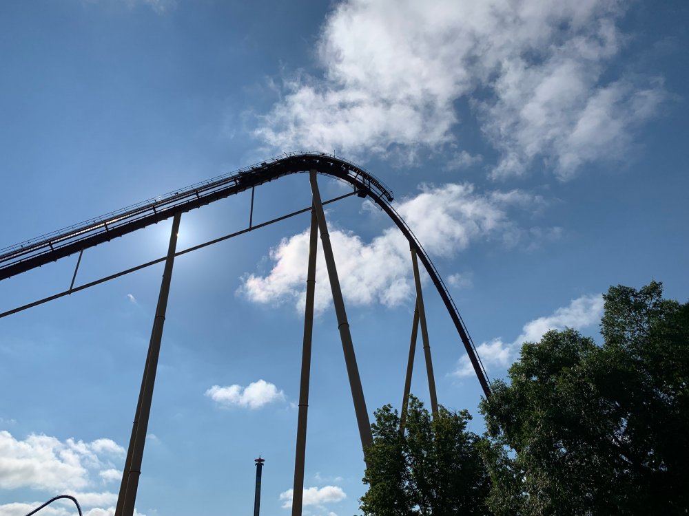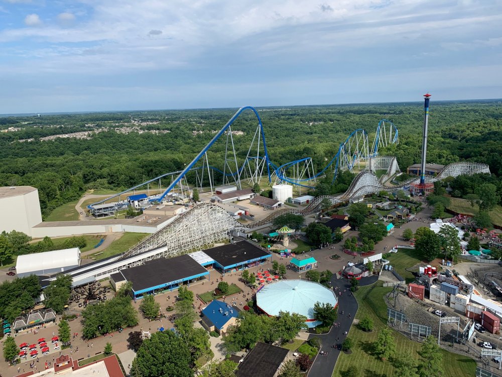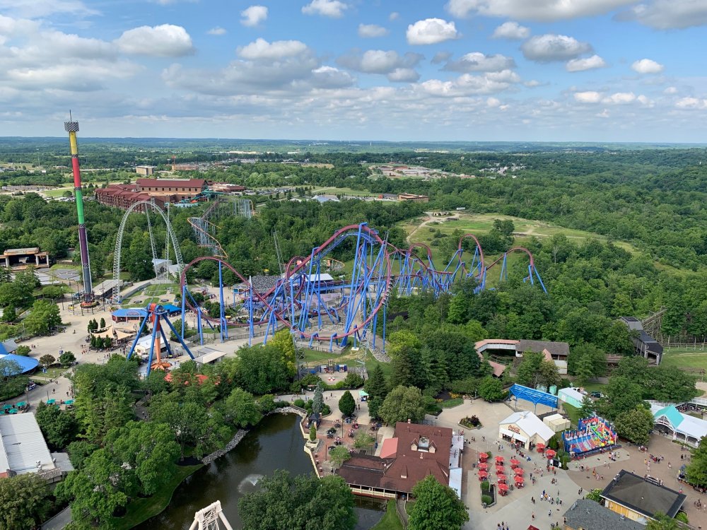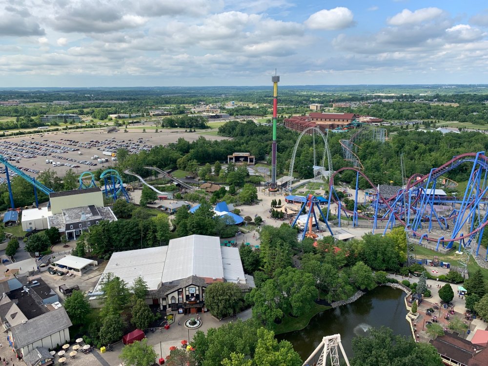 Friday, 7/9 - So I didn't sleep all that great, despite how tired I was, due to a mix of excitement & being in a room directly across from a stairwell. That typically wouldn't be much of an issue, but remember the hotel was sold out *and* one of the two elevators was not working. So that resulted in folks going in and out of that stairwell - and the resulting door slam behind them - up to ~3am. (I didn't complain, but I did, on the next night, put a towel down at the bottom of the door, so it won't slam shut, and that helped a lot. I believe we had planned to meet down in the lobby/breakfast area at 7:45, but I was up and ready by 7:15 anyways, so got ready (got peer pressured into wearing my Coasterstock shirt, even tho I felt like the kid that wears the concert shirt to school the day after the show!), and headed down to the lobby to partake in breakfast offerings. honestly, not bad at all. The Coffee left a LOT to be desired, but the omelettes (pre made, I'm sure) were decent and the hash brown patties and sausages were quite good. Lots of fresh fruit, oatmeal, dry cereal & waffles offered as well, but I didn't want to over-do it, since I tend not to be a breakfast person anyways. And we knew that there would be donuts offered at the ERT this morning by Diamondback anyways in a couple of hours. eventually Kim made her way down, then Joel, and by 8;20 we were in the car for the short trip across the freeway to Kings Island. I was so excited, I missed having my camera out to get the main entrance sign - even tho I was sitting in the back seat (thanks again for driving to the park each day, Kim!). But here's the view from the toll entrances at ~8:35 am. Coasterstock gets you free parking both days, and the parking opens ~2 1/2 hours before the park officially does. we parked pretty far up in the lot, and here's my first view of this wonderful place from the parking lot: yes, I'm a nerd. . even the Kings Island logo on the trash can excited me. . LOL we made our way up to the front gates, stopping for pics along the way (well. . I was stopping, and they kept waiting for me - hey, they'd been there before. . 1st time for me!) and we got thru the security gates eventually, and lined up for the main gates to open up for us right at 9am (during that short wait in line, Don & Chad - who organized the whole shebang went up and down the line saying good morning to everyone, and double-checking that everyone had their coaster club membership card (for whichever club/clubs they are a member of) . . Don and I briefly chatted about Carousels (we had discussed via email how excited I was about the Carousel ERT/anniversary) and then the gates were officially open, and I stepped foot into Kings Island. and who do we meet literally seconds after going thru the turnstiles into the park? Why we bump into Stacy Gretchen - who I last saw at Cedar Point on the TPR 2018 USA tour I introduced her to Kim & Joel, and we ended up seeing her (and her friends Adam & John many times during the event - including sitting with Stacy and John at dinner both nights. TPR representing! the morning's first ERT was at Mystic Timbers and Great Pumpkin Coaster (and then overlapping with Diamondback & Flying Ace Arial Chase), so I / we followed the crowd thru Camp Snoopy, and headed over to Diamondback. Yes, I rode Wilderness Run at Coastermania! at Cedar Point back in 2017, but that was historical as the 1st Intamin. I really had no interest, whatsoever, in riding a roller-skater loop kiddie coaster (tho it did get a bit of a line, as those with no shame lined up to get on it). I didn't *need* the credit tho, so we kept walking towards Diamondback. I'm not familiar with this charity "A Kid Again" but it seems to be a similar organization to "Coasting for Kids" - and I loved that they have a dedicated statue just outside the Camp Snoopy area. .so of course I snapped a pic of it. the design work on this (Boo Blasters, I think it's called) was so great. it wasn't open yet, but we would ride it the next day, and it surprisingly is an Omnimover type ride, that's also a shooting ride) as many of my friends know. . I'm a photo-op whore - it's very difficult to get me to walk past a character photo opportunity (especially at a park i've never been to before). and remember, we were getting to Diamondback THRU Camp Snoopy. . . soooooooo edit: just noticed you can see the line for Great Pumpkin Coaster behind me in this pic LOL but we did eventually make it to Diamondback, and got in line for my first ever ride in Kings Island. and what a great ride to start with. Diamondback is an airtime machine! especially in the front car.. wow, your butt doesn't even touch the seat for the majority of the ride after the 1st drop. for 1st ride, I waited for front row, but it was so good, that we immediately got off and got back in line (something that's rather odd for me. . I usually ride once, move on to next thing, and then go back for rerides on things I liked later. . but this one was so good? twice in a row!) Front Row: and Row 2 (which was a little more rattly, due to wheel I think, but still amazing): after two rides (and a quick hop into the Donut line - which had gotten way shorter by now. . they had lots of varieties too - I had an eclair - and I remembered to pop some Tylenol to prepare myself for the day using the frozen orange juice they were handing out as well), we headed over to Mystic Timbers. it was time to find out what was in the shed! a peek at Race For Your Life, Charlie Brown's flume. . still empty this early in the morning. .but looked like a fun flume ride (and wet, as we would find out the next day) Ok, so "what's in the shed?" is way, way overhyped - even if Kim was disappointed that I didnt' get the full "experience" - although the tape deck lit up, there was no 80's music playing, and it didn't play for the whole time we were there, even tho I got multiple rides (I think 16 total) on MT. But I did get to see all 3 ending 