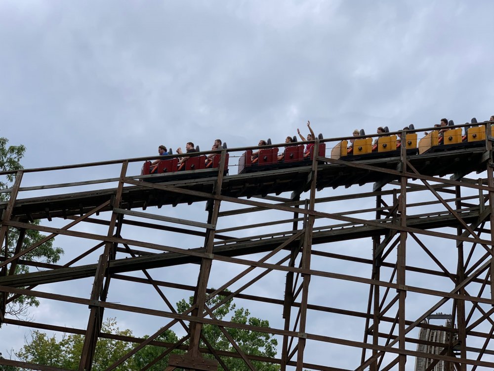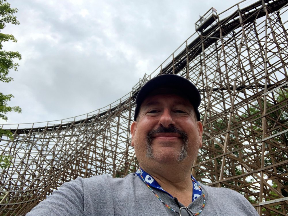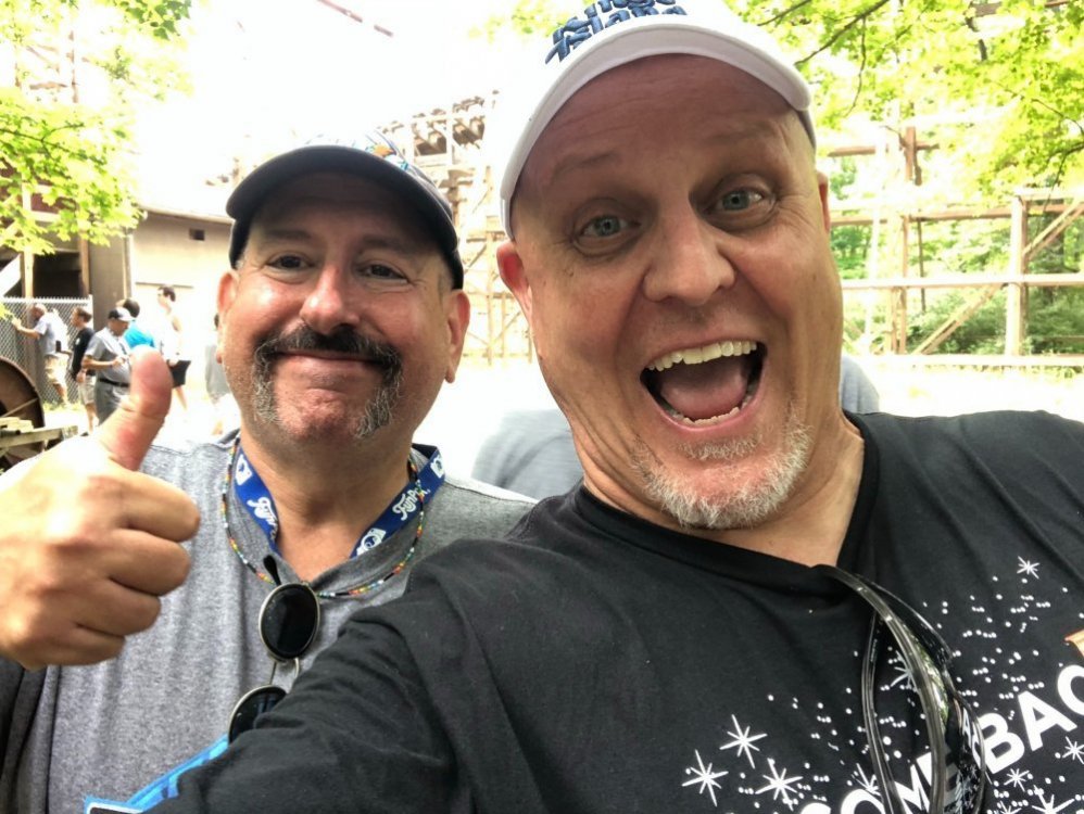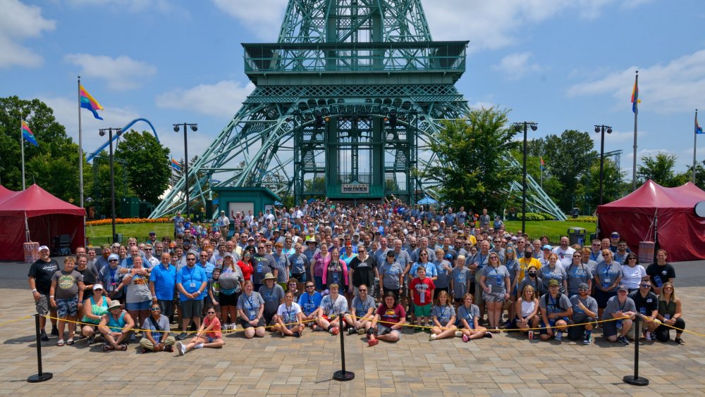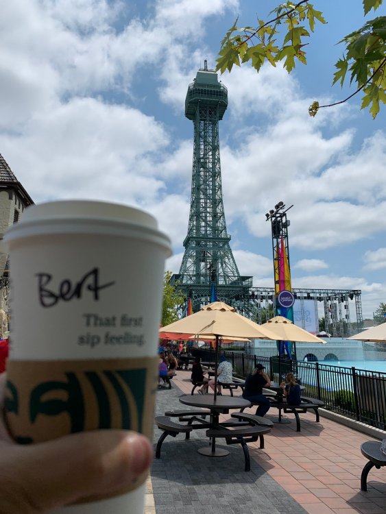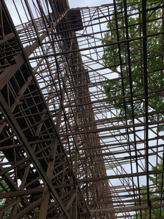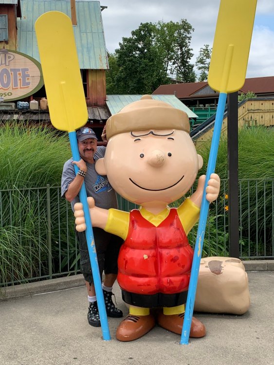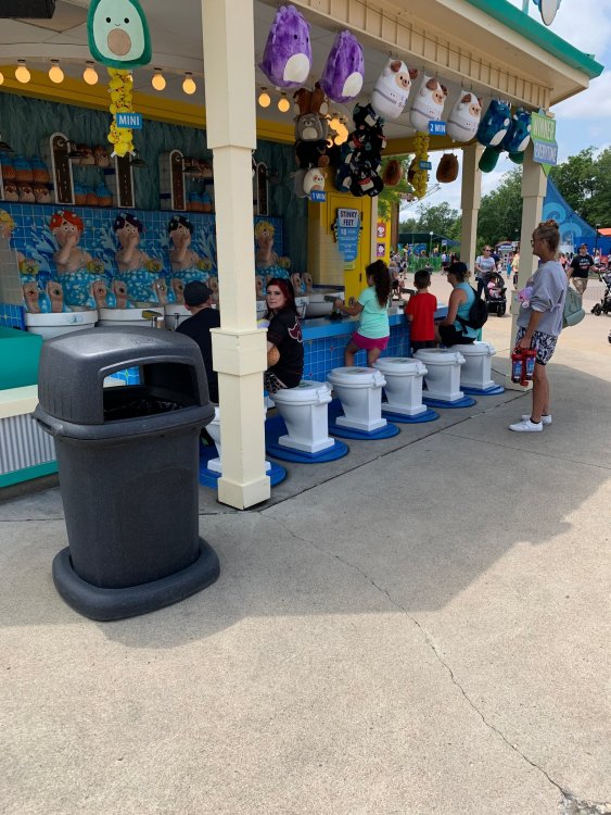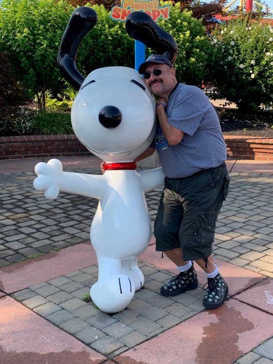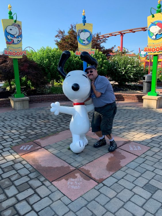 day 1 continued. . . So we headed over to the front of the Eiffel Tower for the group picture at 2:30. to get there from Woodstock Express, we headed back thru Planet Snoopy, and past this bizarre ass game called "Stinky Feet" -- where you sit on a toilet and shoot water at the feet of a guy taking a bath (and there's also a bar of soap in his hand that has a target on it). I have SO Many questions, but really, at the top of that list is: What kind of bathroom is it, where if you're sitting on the toilet, you're facing directly at the bathtub looking at whomever might be in the tub? Seemed a bit kinky for a family park. so of COURSE I had to get a picture (tho hadn't noticed the lady looking at me from her perch on her toilet until just now. . . LOL) we got to the base of the tower tho: and tho there were a lot of us there, still immediately bumped into Stacy and John and chatted with them about the day thus far (and my opinion of what things we'd ridden thus far). here are the group shots they sent out to us - 1st the shot with everyone hands up which I think they quickly realized blocked out most everyone other than the front row, LOL. . so a "hands down" pic then went out to everyone as well: and tho the "vertically challenged" (or "fun sized" as they would say) Stacy & Kim aren't really visible.. you can actually see Joel, John, and myself in the pic: I hadn't officially met him yet - tho would within the next hour - PianoJohn from right here at the TPR forums is very visible in this pic too, far left front row, in the black shirt with white hat Pic taken, everyone split off to fill the ~1 hour until the next Coasterstock official activity - a behind the scenes walking tour/photo op for The Beast. I hadn't even seen the Carousel yet, and since it was right behind the tower, we headed that way to get a look at it and enjoy some other scenery - and I *think* we made a walk over to Diamondback, and rode it as the line wasn't too bad (tho the Mystic Timbers line had gotten long, so wouldn't get another ride on that until tomorrow when we rode the heck out of it with Fast Lane Plus) eventually, it was close to time for the tour, and we all met up by the gates next to Beast - ending up next to Stacy & John again (LOL), but she was able to point out PianoJohn to me and I went and said hello (he's a really nice guy and we chatted quite a bit thruout the tour, and even rode a few rides together thru the remaining of Coasterstock. and then the gates opened, and we got to walk way back into the woods where Beast course runs. It really felt like I was back at camp in my teens. . but so much fun, and thank goodness, no bugs! here are lots of pics of the backstage walking tour, that was ~50 minutes long: and yes, I'm sure all these riders were wondering who the hell all these folks are taking pictures of them! you can get some great shots of one of Orion's turn arounds from back here too. . . .and you can see how some of the light bleed from Orion at night results in a Beast night ride not being COMPLETELY black these days. . but still. . .beautiful coaster (and we hadn't even been near it yet at this point. . it had all been foreplay thus far today). and here he is (I hadn't taken a pic of us together, but John did), PianoJohn and bert, backstage at the Beast! I wasn't interested in heading further down into the woods - tho some did, to get some shots of the final helix, so we headed back towards the Station and remembered that this tour also included a chance to go over by Diamondback's turnaround - which was over here in the Backstage area - just behind the old "the Crypt" ride building, which is still standing, and they told us they use for Haunts these days. so we hung a left at the Beast Station instead of heading back out into the park. and discovered what the Water Dummies do on their downtime if you've ever wondered? Water Dummy Orgy, of course . . .LOL.. KI is way kinkier than I could have imagined I had actually forgotten that I had taken these pics, and was annoyed at myself that I didn't take any pictures of Mystic Timbers incredible 1st diving drop . . . so was so thrilled to see I have these in my photos from the Beast walkback tour: one last pic of Diamondback, before we headed out back into the park. I think we had about 1 1/2 hours until dinner time at this point, and I honestly can't remember what we went to next - but I seem to recall that the lines were pretty long on everything at this point in the day and we were worried that if we tried to get in line for something, we'd miss dinner. I wanted to do some shopping for Tshirts/magnets as well, so I'm pretty sure we decided that we'd head back over to the Eiffel Tower to go to the top if the line was short, and then run to the car to drop off hats, Kim could change shoes, and could drop off anything purchased. walking back thru Planet Snoopy, I stopped to snap a pic of this Carousel. I had to because: 1) it's a carousel 2) it annoyed the hell out of me that it's called "Character Carousel" - but with NO characters on it! I mean, c'mon. . I rode the craptastic carousel at USJ because it was themed to Sesame Street characters, and I rode the even worse one at YomiUriLand because I got to ride on LandDog. But only having the Peanuts characters on the Sign ? LOL.. that annoyed me, even tho I was tempted to ride it anyways, since I liked the Zebras. 1st world Carousel Fan problems. . . . but wait. . now there was an actual walk around Snoopy out? of COURSE I waited for a picture (thanks for taking Kim). tho I left snoopy high and dry, when I started to walk away without realizing he was trying to give me a high-five - I went back and did it once it was pointed out (by many!) that I had left Snoopy hanging. Speaking of High-5 (which makes me think of touching). . I do want to mention how the park is handling Covid these days. well, "handling" might not be the right word, since it's basicially not even being actively addressed. In sev