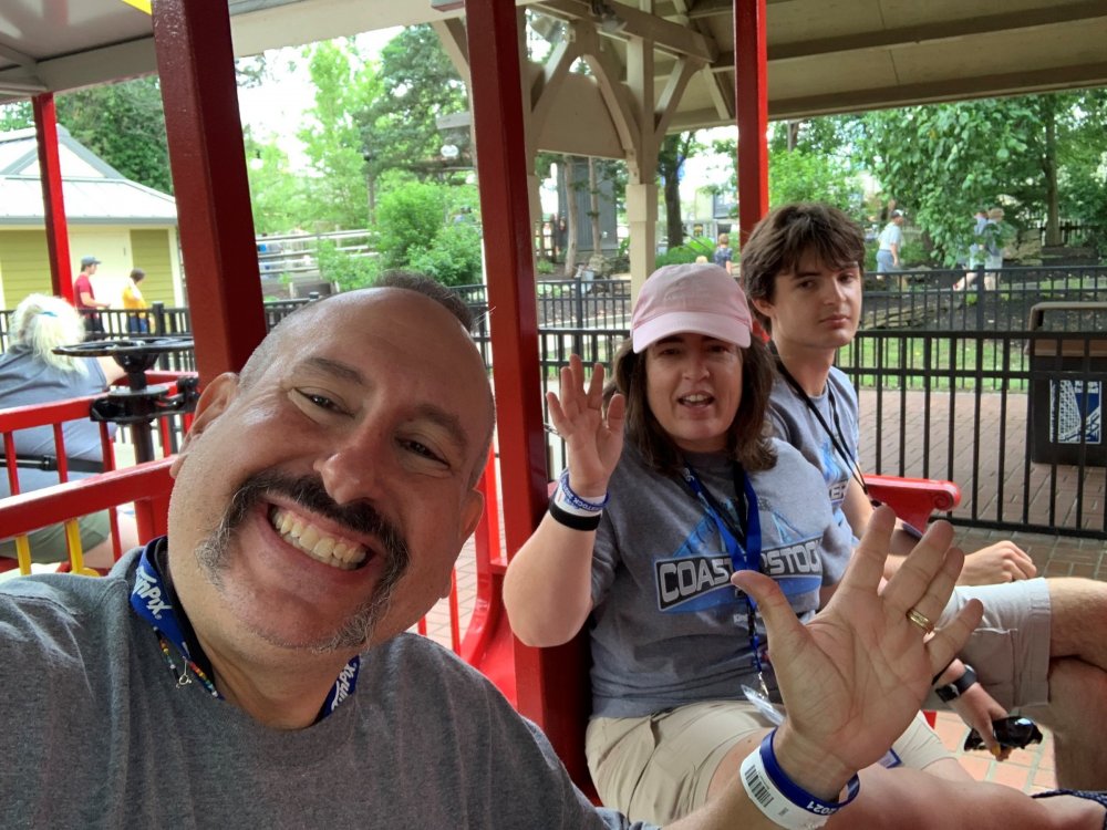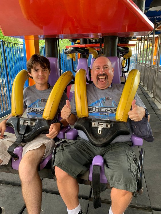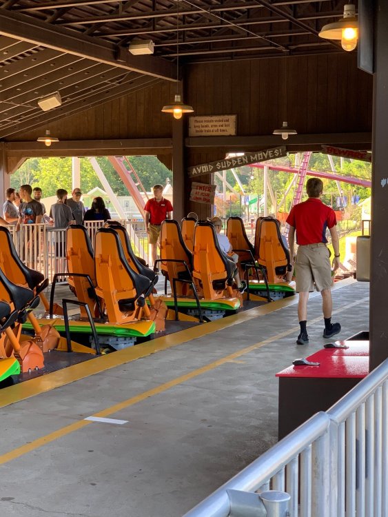 OMG! That kid on Racer! So the whole time we were loading and getting secured he was non stop talking telling me about his past adventures on the coaster, and I was wondering how much snot was gonna fly on me during the ride and I asked him if he was there with someone and Mom or Grandma or somebody was waiting for him, couldn't understand.......none of which freaked me out after all my years teaching. So as we are going up the lift hill I said to him "so are we going hands up?" and he got super agitated, pointed to the sign that said hands and arms inside at all times and was adamant that we hold on to the grab bar. So I humored him and we rode strictly to code. Then as we came into the brake run he put his hands over his ears and expressed his apparently repeated fear that it would not stop. I think the noise in the covered brake run really bothered him. So I told him "it's ok" and I threw out my hand in front of us doing a stop sign and yelled "STOP TRAIN" and got really lucky and it all timed out like I controlled it and he just stared at me the entire time we were unbuckling and getting off. I mean he almost fell over because he was watching me instead of where he was walking as we exited, lol. I do regret not having a picture. The benefit of taking the bullet as Bert phrased it is that while they were stuck on the brake run I was able to see all of the fireworks from the little bridge that overlooks the station.2 points