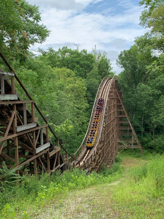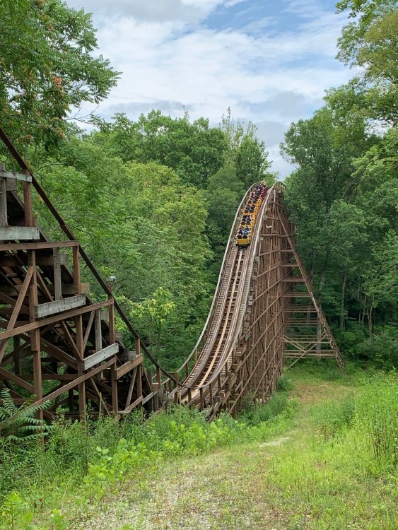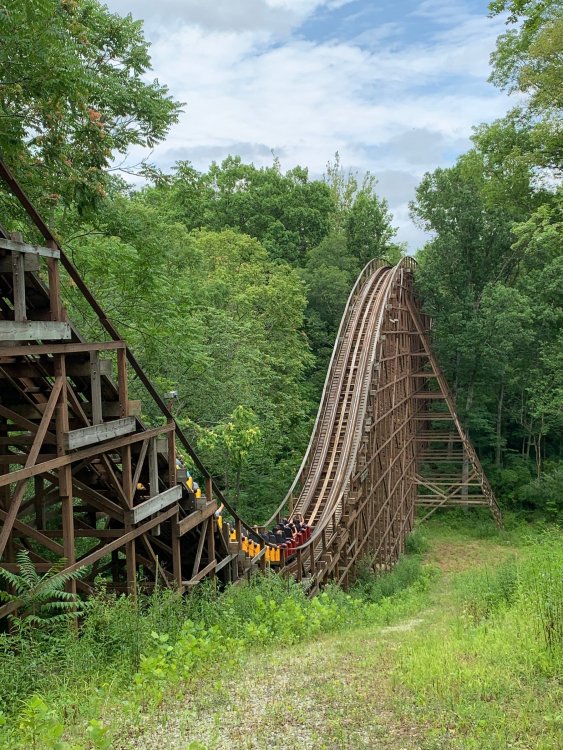 Took a trip to the park today. For all of the “clean up” that went on, the place still looks like a dump. Actually, it looked better back in 2019. Apparently admission plans vary. The girl at the ticket booth asked if I was “just there to walk around”, and I said I’d like to ride the Devil’s Den. She said I can buy 4 tickets for $10 (each ride is one ticket). All day ride pass was $15. Plus the “water park” is an additional charge. I decided to buy the 4 tickets. The park is selling t-shirts and tank tops inside the main gate if you want to show your support Walking in, the first thing you see is that the cables and tubs of the Flying Scooters are missing. A “No Trespassing” sign is posted on the ride’s fence. To the right of the Flying Scooters, the Paratrooper is also down with no signs of life. Also at the front of the park is a new, portable Dizzy Dragons ride and a very old Swing ride which was just plopped down on a muddy piece of land (old Tilt A Whirl site). And finally, a new 3 lane portable slide was set up to the left of the main entrance. As you walk down the midway, the train is closed and the entrance crime scene taped off, the mini golf course is closed with a “No Trespassing” sign attached and that all violators will be prosecuted. The old Tumble Bug cars are just randomly plopped along the midway here, reminding guests of a ride that was just not able to be salvaged. The water slides and lazy river were doing a good business, so that was good to see. As you keep walking, the empty spot where the Bug used to reside is fenced off, as is the former Music Express site. Further back, the “new” Octopus can be seen, but it is not operating. The Blue Streak station is sitting there with peeling paint and obviously no activity. The Carousel was running and looked decent. There was an odd thing about the rides up front as there are no more paths to the rides. Just mulched areas. The Devils Den was probably the most popular ride. It was missing its classic sign, but the inside was in fine working order and all the stunts looked great. Major props to Devils Den Tom for all of his hard work and upkeep of this classic dark ride. Another funny thing was that they had carnival games set up. A ring the bottle game was set up on a picnic table. A dart balloon game was set up across the way, and a “Ninja Warrior” bar hang was randomly set up outside the Carousel. It was truly bizarre. But this is Conneaut Lake, so I guess I shouldn’t have expected any different! On the former site of Witch’s Stew sits what looks like a new portable Tilt A Whirl. It too was not operating. And next door to that was the old Trabant, stripped down with the cars freshly painted and possibly awaiting reinstallation. A very small pony ride was set up across from Kiddieland. I didn’t travel through Kiddieland though, but it looks like a few small rides were thrown up randomly and the old kiddie carousel was removed. Finally, the old midway area was completely leveled and has fencing placed all around it. No Log Cabin Gift Shop, no game buildings, no old Hostile Hostel building… just grass and a lone food stand. This is where it really sunk in that this really may be the final year for Conneaut Lake. Just looking around and taking it all in was surreal. While I will stay positive that the park will survive, I just don’t see it happening. Sorry for the long write up. I’ll try and get some pics up tomorrow.1 point