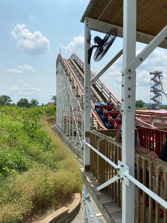 (OK, these pictures are no good but I had zero plans of writing a trip report or anything... but here we are) So we ended up going Monday instead of Saturday. Every Louisville native we met throughout the weekend gave us a puzzled look at best and a flat out stank eye at worst when they found out we were stopping there, but eh... we had fun. I knew the line-up was stacked with airtime, which is all I really enjoy honestly. I'll try and keep this brief but I tend to ramble on these things. FearFALL (X1) - I'd heard Larson drop towers were pretty good and this thing definitely delivered. I'm pretty much desensitized when it comes to 99.9% of rides at this point but this one had me a little on edge with the fairground aesthetic and feel haha. The tower felt taller than it should have and the drop was stomach-wrenching. I'd put this up there with Falcon's Fury and KI's drop tower as one of my favorites honestly. Lightning Run (X3) - Our first ride was in the front seat and my final 2 rides were in the very back (which I preferred overall). This thing was great... and it's hard to believe more of these were not built. Butter smooth but still wild as hell... it felt like a shrunken down Phantom's Revenge / RMC hybrid with legit ejector airtime. The home park is Carowinds and I'd take this coaster over anything there aside from Fury 325. The first drop in the back seat might be my favorite drop anywhere. Super fun ride. Unfortunately the wait took about an hour the first time because they were only running one train. They tried to add the 2nd, and after about 20 minutes of downtime they finally got the transfer track to move 4 inches to the left before they said "nah, it ain't happenin'" and the maintenance guys just gave up and walked off. Kentucky Flyer (X2) - Nice little family coaster with some legit airtime pops. I've had two somewhat recent hip surgeries this year and one of the hops had me in some pain because I flat out wasn't ready for it and my restraint was laughably loose, but we enjoyed it overall for what it was. T3 (X1) - LOL. I mean, I knew what I was getting into... but even then I feel like I wasn't truly prepared. My morbid curiosity got the best of me. Holy shit this thing is terrible. We waited for the front and the pre-recorded operator spiel said something like "the front row is the most extreme seat on this ride. Please make sure to ride with your back against the seat..." along with other defensive-riding instructions. I told the GF just to skip it when we were about to board because I didn't want to ruin her day. The ride op told me they'd been getting broken / bloody noses from people headbutting the metal handlebars on the restraint... and afterwards I was like "well that makes sense". Absurdly intense, and it felt like the wheels suddenly became square about halfway down the drop. My restraint also tightened so badly my legs were starting to go numb on the break run. Just a laughably terrible coaster all-around as expected, but hey... I did it! Thunder Run (X2) - Sleeper hit of the day by far. I'd heard it was underrated and we ended up loving it. Those PTC restraints were about 2-3 inches off my body and holy crap I was EJECTED every time on those first couple of hills. The track was smooth overall with just the right amount of ruggedness. They clearly take care of it. I guess this is sort of what Hurler was supposed to be. A legitimately good coaster I could ride all day. Storm Chaser (X4) - We got 3 rides in the very front and one in the back; I'm definitely more of a back seat guy but the front was better overall IMO. This was only my 2nd RMC and I knew it would be fairly wild but I was still surprised by just how powerful and violent it felt for it's size. I've had an 11 PM, trim-less, lubed-up ride on Steel Vengeance on a warm summer night and the ejector airtime on this was just as good if not better than that insane SV ride. The first half is freaking awesome in every way; unfortunately everything after the double up over the entrance is almost TOO wild and borderline painful with the absurd airtime, but I loved this coaster overall. And because it's in such a weird spot it was a walk-on all day (I'm sure this is usually the case). I know opinions vary all over on this but I could have (and probably should have) rode it all day. Someone on Reddit mentioned it as feeling "crazy broken intense" and that pretty much sums it up. It was absolutely hauling. Overall impressions - We had fun. The park was absolutely slammed and the layout is odd for sure. It truly does feel like a water park with some rides randomly sprinkled about... the general layout and ride placements felt like a poorly planned out Planet Coaster creation haha. The operations weren't great but I've seen worse. I do love how every single major coaster here has the same standard operating procedure... first drop followed by a stupidly powerful airtime hill that tries it's best to yeet you off of the ride. I'm here for it. I'd be shocked if we ever went again, but it's hard to beat that out-of-state 2-day deal for $40 and I'm intrigued to see what Herschend does with the park. We were glad we stopped by.1 point