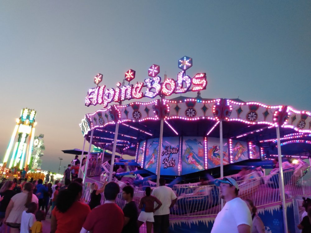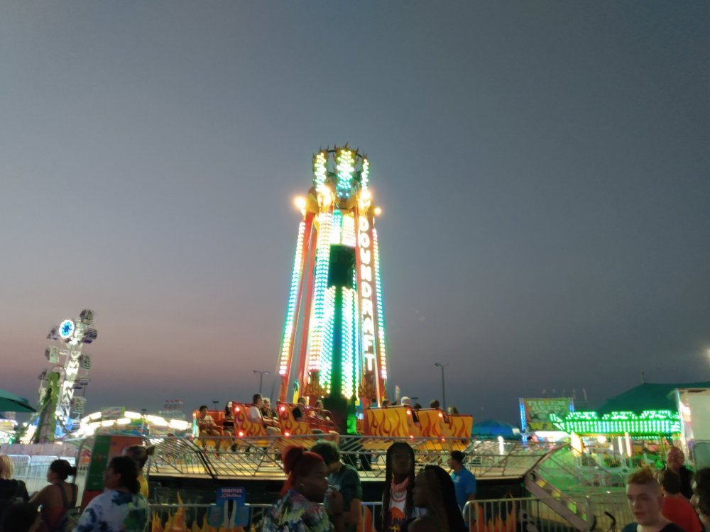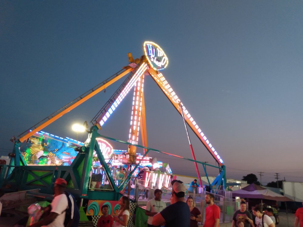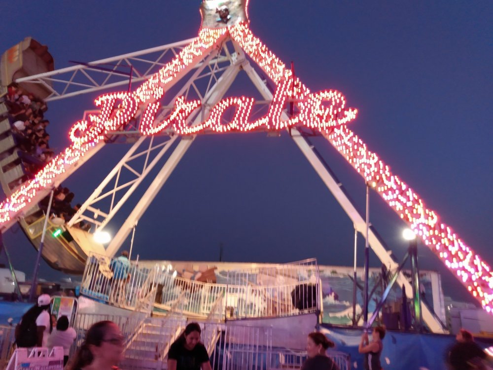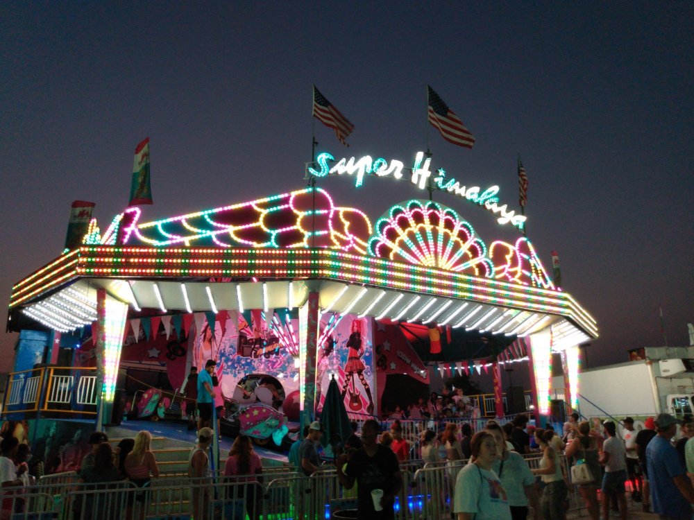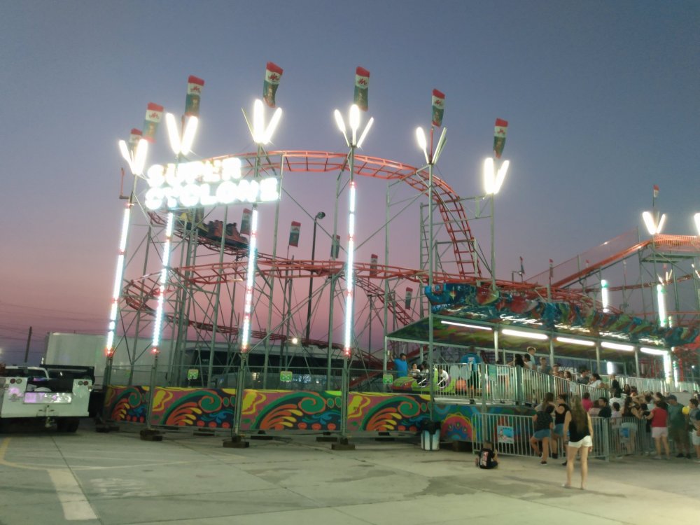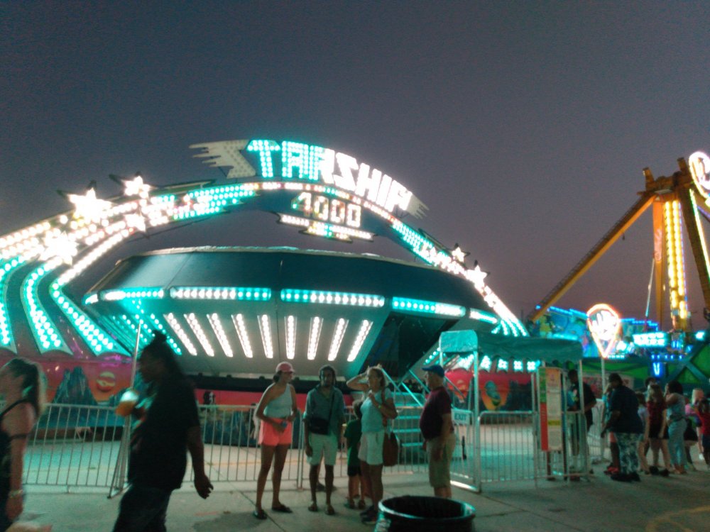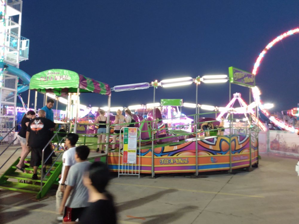 Disclaimer: I promise I'm not @LeJebba in disguise. His fascination with Wade Shows defies all comprehension, and his posts including the stock photos of the rides are legendary. Here, you will find actual photos of the rides! So, my group of co-workers (6 in total) were trying to plan some sort of "camaraderie-building" activity, and me being the trip expert that I am, had initially suggested everyone going to Wildwood. For various reasons, that plan fell apart, so we settled on the Delaware State Fair, which was conveniently occurring around the time we were trying to plan for the trip. With my newfound lack of tolerance for alcohol, I go to to play the role of sober-guy on this trip, which was quite a change. After the hour drive to get there, during which my co-workers were already drinking, we arrived. Various people wanted to check out the pig races and petting zoo for some reason, but I wandered the grounds, checking out the variety of food carts/trucks and the rides, of which there were plenty. Most was your standard carnival fare, but they did have some rarer rides, such as an Enterprise and Zipper. I did grab an awesome mac-and-cheese-grilled-cheese from one of the food trucks, sadly of which I did not take a picture nor remember the name. Sadly, most of the group had zero interest in any going on any rides, so while they drank and did whatever, myself and one other guy decided to hit a few of them. First up was "The Haunted" (according to the sign) or "Zombie Apocalypse" (according to their website) their two-trailer dark ride. It contained neither Haunted things nor Zombies. Nothing could compare us for the hilarity that would ensue. Not only were the cars SO incredibly small (us two adults had to wedge ourselves into a car), 90% of the "scares" didn't light up or move, and the rest were pitiful. A Bill Tracy dark ride this was not. 2/10, solely for the comedy factor. Next up was the Pinfari Zyklon, "Super Cyclone," which was the only adult coaster they brought. Notably, none of the trim/block brakes were activating on our ride, so we got a nice quick trip through the course giving some positive Gs on the helices. It also had the most hilariously pointless seat belt arrangement I'd ever seen on a coaster, where they went from the floor to the lap bar on the same exact axis, making them do absolutely nothing. Coaster #174 under my belt. 5/10. We then moved on to the Enterprise. In the back drop, you may notice a close approximation of the space station from Star Trek: Deep Space Nine, as pointed out to me by my riding buddy, who is a huge Star Trek fan. Other graphics on the backdrop were literal screen captures from other Star Trek shows, I'm told. I guess copyrights don't exist in the carny world? On this ride, they were enforcing two odd rules: One, no single riders...which meant that us two full-grown male-presenting adults were crammed into one car. Two, there was a minimum of 4 riders total (two cars) for them to operate the ride. While you might think this has to do with balancing the wheel, as I did, it clearly was not the case as they loaded us two and the other group into cars with only two empties between us. The cycle was super-short, too - basically as soon as it got to the top angle, it started going back down. Either way, it ran at a good speed, so....6/10? At this point, the rest of the group was drunk/exhausted and wanted to go home, so we called it a night. But, being the good TPRer that I am, I of course snapped pictures of all of the remaining adult rides. Enjoy. And that's all from the fair.1 point