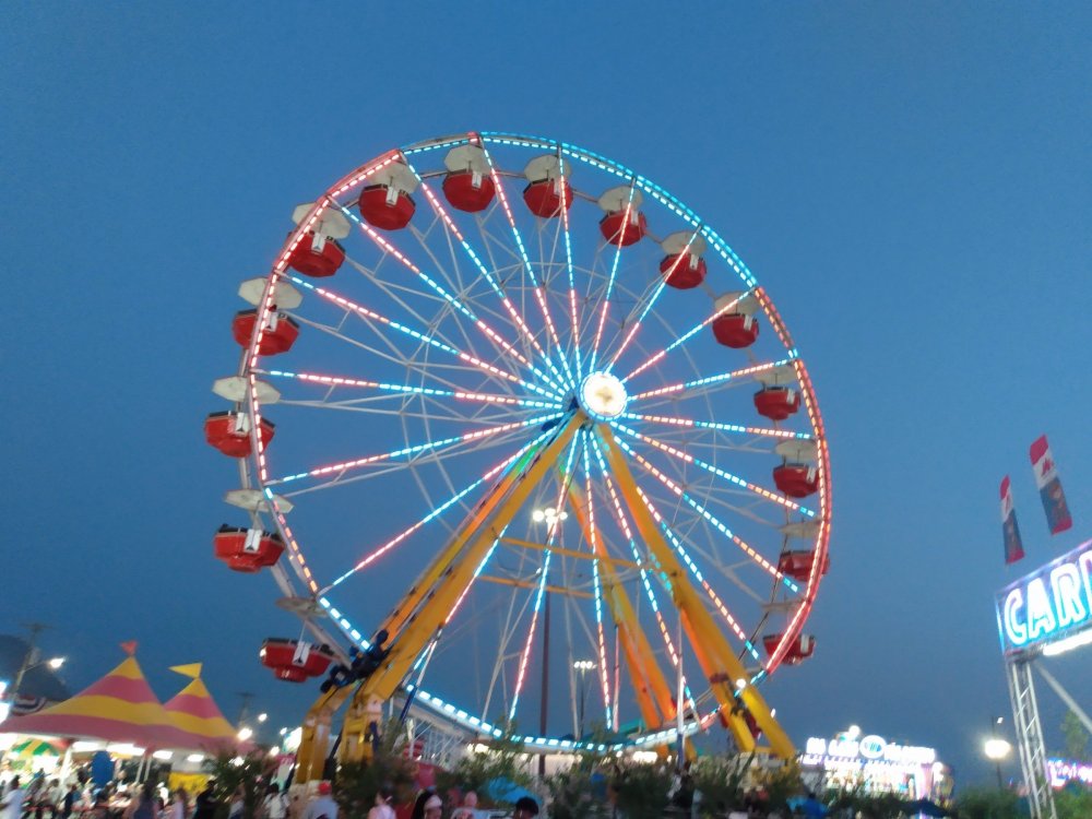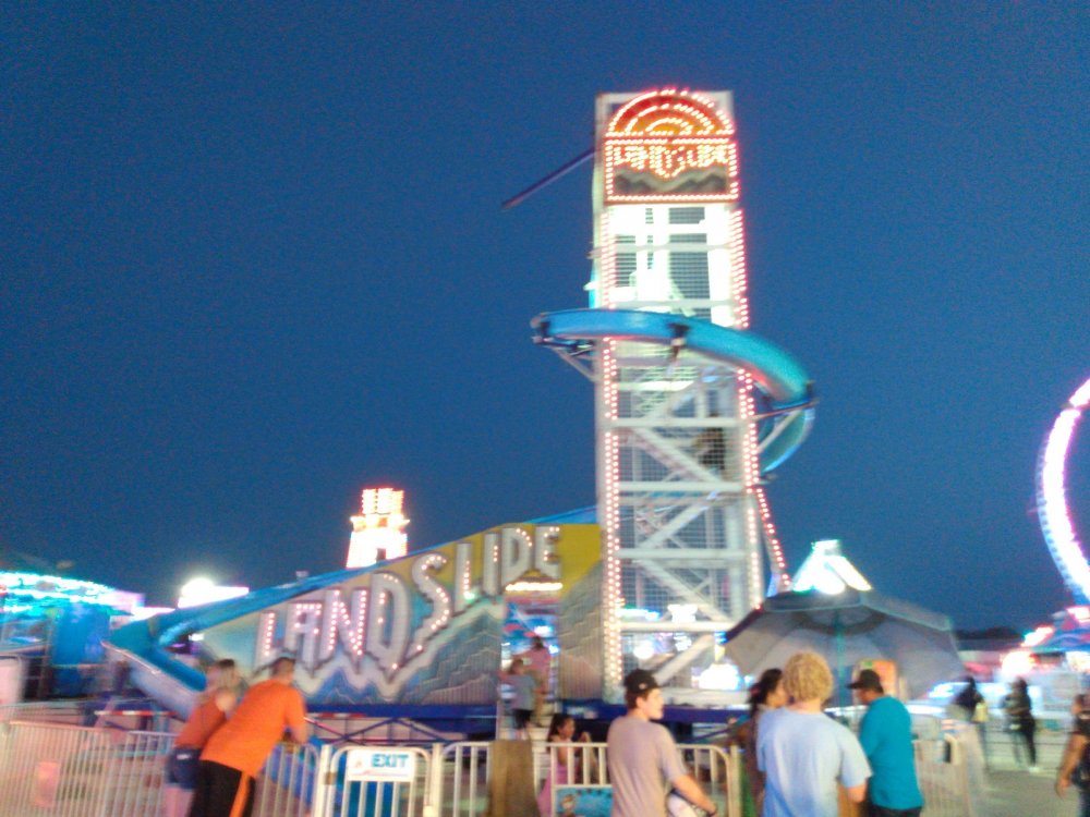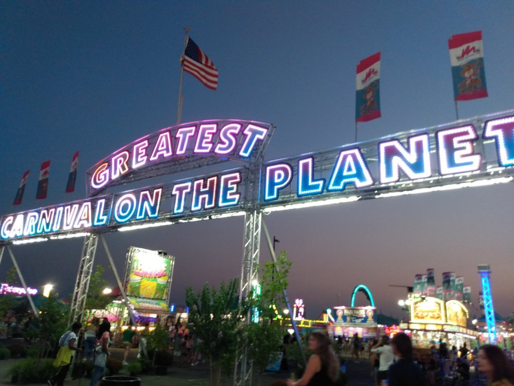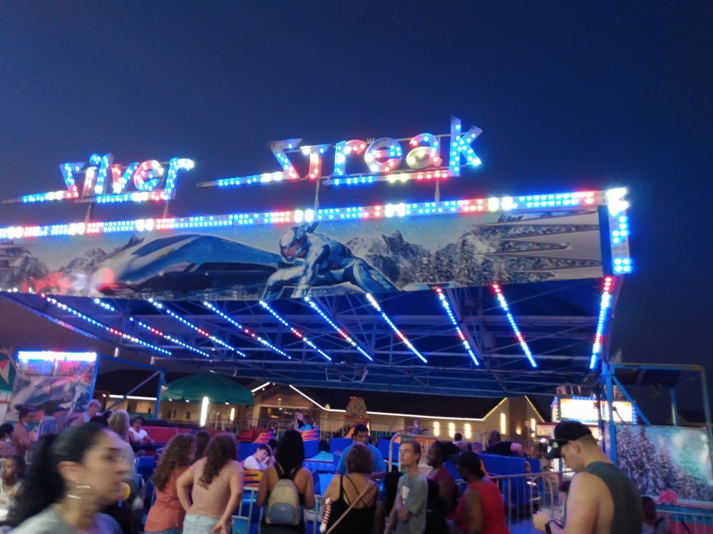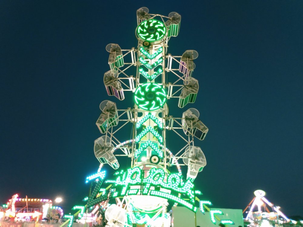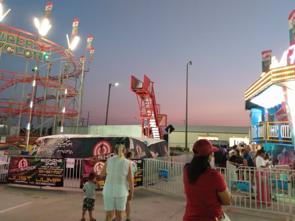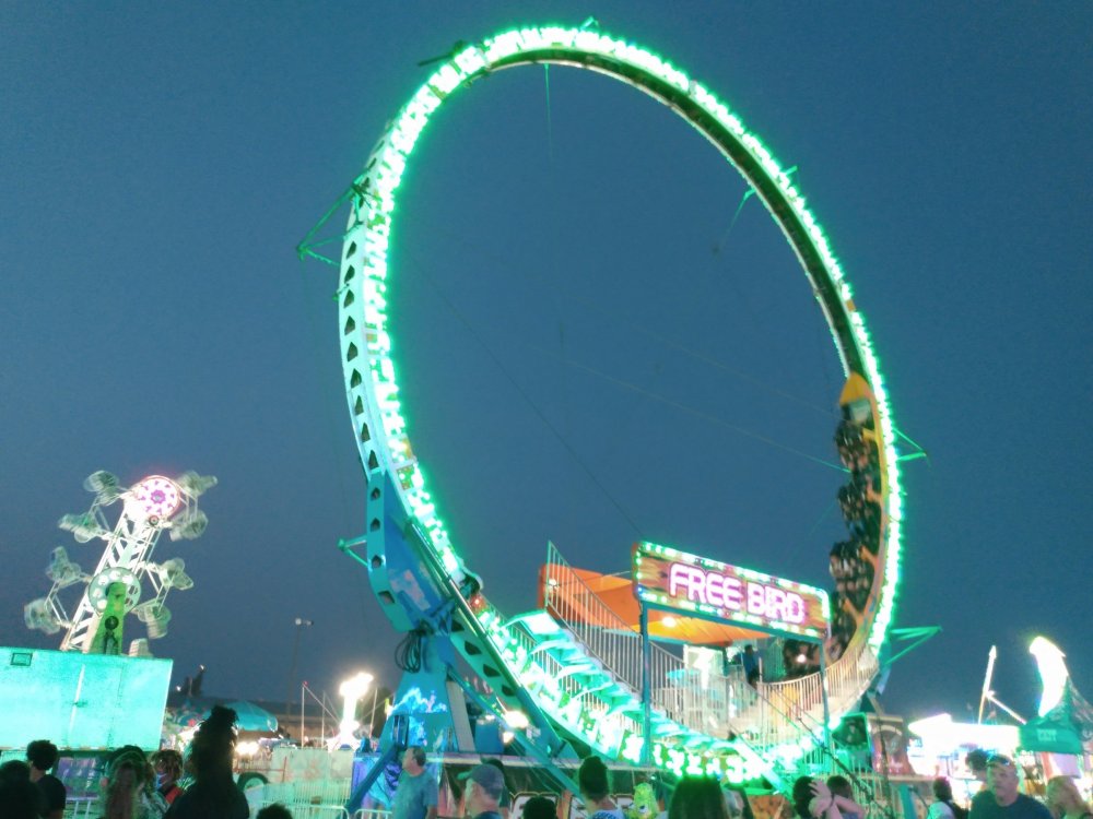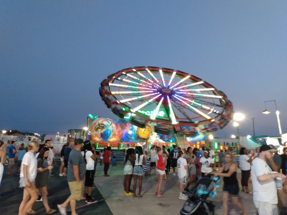 Disclaimer: I promise I'm not @LeJebba in disguise. His fascination with Wade Shows defies all comprehension, and his posts including the stock photos of the rides are legendary. Here, you will find actual photos of the rides! So, my group of co-workers (6 in total) were trying to plan some sort of "camaraderie-building" activity, and me being the trip expert that I am, had initially suggested everyone going to Wildwood. For various reasons, that plan fell apart, so we settled on the Delaware State Fair, which was conveniently occurring around the time we were trying to plan for the trip. With my newfound lack of tolerance for alcohol, I go to to play the role of sober-guy on this trip, which was quite a change. After the hour drive to get there, during which my co-workers were already drinking, we arrived. Various people wanted to check out the pig races and petting zoo for some reason, but I wandered the grounds, checking out the variety of food carts/trucks and the rides, of which there were plenty. Most was your standard carnival fare, but they did have some rarer rides, such as an Enterprise and Zipper. I did grab an awesome mac-and-cheese-grilled-cheese from one of the food trucks, sadly of which I did not take a picture nor remember the name. Sadly, most of the group had zero interest in any going on any rides, so while they drank and did whatever, myself and one other guy decided to hit a few of them. First up was "The Haunted" (according to the sign) or "Zombie Apocalypse" (according to their website) their two-trailer dark ride. It contained neither Haunted things nor Zombies. Nothing could compare us for the hilarity that would ensue. Not only were the cars SO incredibly small (us two adults had to wedge ourselves into a car), 90% of the "scares" didn't light up or move, and the rest were pitiful. A Bill Tracy dark ride this was not. 2/10, solely for the comedy factor. Next up was the Pinfari Zyklon, "Super Cyclone," which was the only adult coaster they brought. Notably, none of the trim/block brakes were activating on our ride, so we got a nice quick trip through the course giving some positive Gs on the helices. It also had the most hilariously pointless seat belt arrangement I'd ever seen on a coaster, where they went from the floor to the lap bar on the same exact axis, making them do absolutely nothing. Coaster #174 under my belt. 5/10. We then moved on to the Enterprise. In the back drop, you may notice a close approximation of the space station from Star Trek: Deep Space Nine, as pointed out to me by my riding buddy, who is a huge Star Trek fan. Other graphics on the backdrop were literal screen captures from other Star Trek shows, I'm told. I guess copyrights don't exist in the carny world? On this ride, they were enforcing two odd rules: One, no single riders...which meant that us two full-grown male-presenting adults were crammed into one car. Two, there was a minimum of 4 riders total (two cars) for them to operate the ride. While you might think this has to do with balancing the wheel, as I did, it clearly was not the case as they loaded us two and the other group into cars with only two empties between us. The cycle was super-short, too - basically as soon as it got to the top angle, it started going back down. Either way, it ran at a good speed, so....6/10? At this point, the rest of the group was drunk/exhausted and wanted to go home, so we called it a night. But, being the good TPRer that I am, I of course snapped pictures of all of the remaining adult rides. Enjoy. And that's all from the fair.1 point