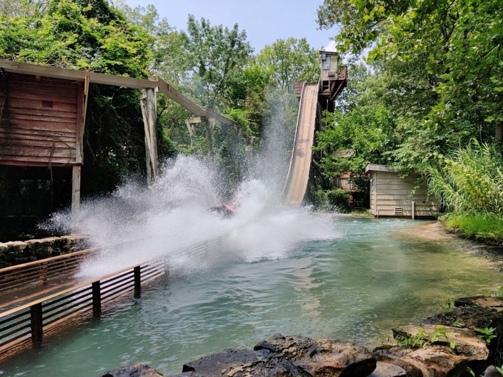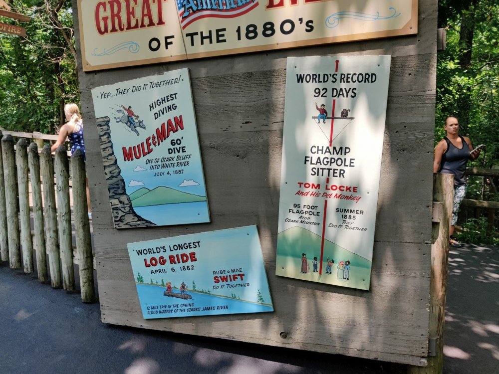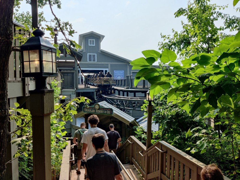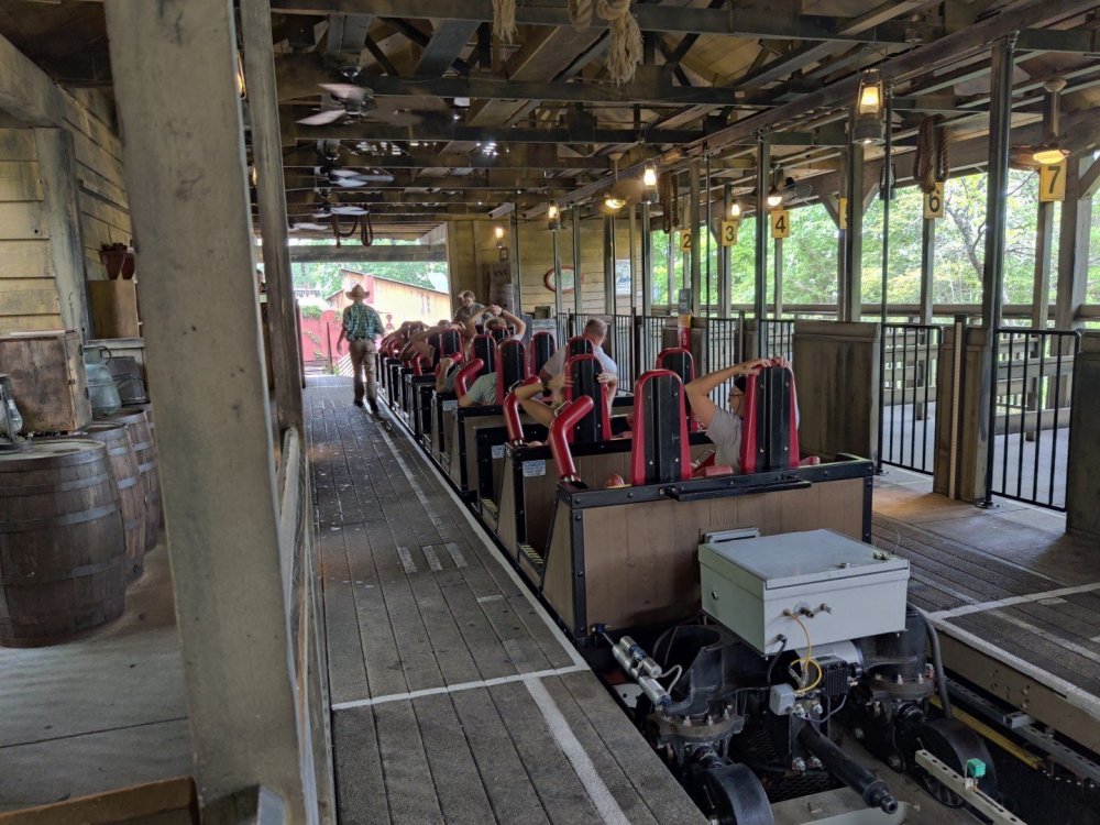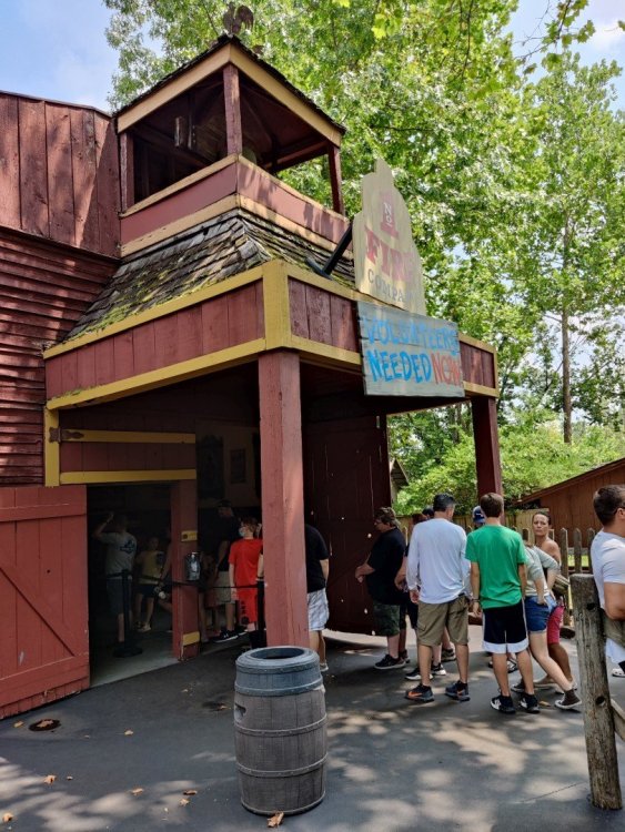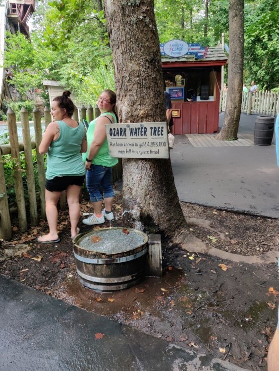 Day 2 - Silver Dollar City While I ended up enjoying Worlds of Fun so much more than I expected, it hadn't been one of the parks that I'd desperately wanted to get to from the start. Silver Dollar City was; it was Time Traveler that really started me thinking about this trip. I really could not wait to get here, though if anything I was a little worried that putting it so early in the trip might ruin the rest of it, setting too high a bar for other parks to live up to. Part of me was a little worried, too, that after WoF subverted my expectations, SDC might too, in a less positive direction. This....did not turn out to be the case. Silver Dollar City is incredible. Starting from the beginning though... SDC is a sizeable park, with a lot of parking, way out behind the park. Just look at Wildfire way out there on the horizon. Fortunately they do have trams to bring you to the park entrance. I hadn't particularly cared enough about Wildfire to be all that excited to see it from back here; that would change enough later on. Right from the entrance, Silver Dollar City is a beautiful park. You can tell what sort of place you've found right from the start. If you haven't been here, Silver Dollar City is sort of a Busch Gardens part, with the very heavy theming and equal focus on shops and food, not just rides, only themed to America, so with a much less "fake" atmosphere. It's sort of what would happen if Knoebels had a Disney budget. It also has an amazing, if tiring, setting up on the mountainside. I've never been to another park quite like it (I assume Dollywood is close, but that's on my list for next year.) With the number of pictures I took here I'm going to run out of captions quickly. There's only so many ways I can say "Silver Dollar City is beautiful." Silver Dollar City IS beautiful though. I stopped on my way in to get a Trailblazer pass; I'd been given the suggestion not to get one ahead of time but to consider it if the weather was nice and I expected crowds. The weather was absolutely perfect and there seemed to be quite a bit of traffic following me into the park, so it seemed wise to pick one up. I didn't regret buying it, though I probably could have made do without it as most of the lines never got too bad. It did turn out to be convenient a couple times though, especially later on. The implementation of the Trailblazer pass is a little bit frustrating though, one of the few things that SDC that seemed anything less than perfect. To start with, instead of getting a wristband, or the fastpass watch type device, or anything along those lines, you get a literal pass card on a lanyard; one you're expected to wear and hold on to at all times, that can not be replaced. This is not the greatest of all solutions when you're doing to be riding things like Outlaw Run. I can only imagine how many of the expensive, non-replaceable passes get lost. I ended up tying mine around my wrist for most of the day but it was not the most comfortable solution. It's clear that the Trailblazer passes are a newer system as well, too; only the newest few rides look to have been designed to support them. Almost everything else just has Trailblazer entrances going in the exit, or what looks like an emergency exit, or just entirely out of the way. They're generally marked by very small signs as well and some are not at all easy to find. Scavenger hunts are fun and all but the pass is supposed to save time. Relatively minor nitpick but definitely something I think the park could improve on. Pass in hand, I headed straight for Time Traveler. This was why I was here, at Silver Dollar City, in the midwest to start with, and I was not giving it a chance to break down or anything before I got on it. One thing that very quickly became clear; Silver Dollar City does not hold back or spare a cent when it comes to their stations and the staff in them. There isn't a plain looking ride anywhere and every ride crew has their own uniform. Staff was almost universally great too, as friendly and helpful as I've seen anywhere, and all very efficient. After I got off Time Traveler the first time, this guy took a look at my Kings Island shirt and pulled me aside to tell me that since I was obviously an enthusiast, I had to go back around and try row 7 this time. Sound advice; Row 7 gets you hauled backwards over the first drop in spectacular fashion and is definitely the row of choice for TT. You don't get to see much of the ride from within the park, buried in a valley as it is, but this window from the queue does give you a look at the tangled mess of track here. Promising! One more look at the impressive cars. Not a missed detail on them. The actual ride starts with a vertical drop straight into the canyon, and after that it's hard to even keep up what happens. There's not much more disorienting than a good spin right through a corkscrew. There are a couple of brief moments to catch your breath before the two launches, the first of which brings the train to a complete stop before sending you back into the tangles of track, but beyond that it's just craziness. Not one I'd recommend for anyone who suffers from motion sickness though... Between the ride itself and the theming, Time Traveler absolutely lives up to all I'd heard. I went around for a few rides hers, but there was a lot more of SDC to see. Thunderation next, since it was right there, and a good park can do a lot with a mine train! Not sure if the 1880s Steam Train was supposed to be this one or the actual train nearby in the park, but no matter. Like a lot of coasters here, it's hard to get a lot of pictures of Thunderation, since it drops over the side of the valley and disappears from the park for most of the ride. It's quite big for a family mine train though, and gets moving faster than I'd expected through some respectable drops and tight helixes. It might not have the theming of Thunder Mountain for just the ride itself it might be the best mine train out