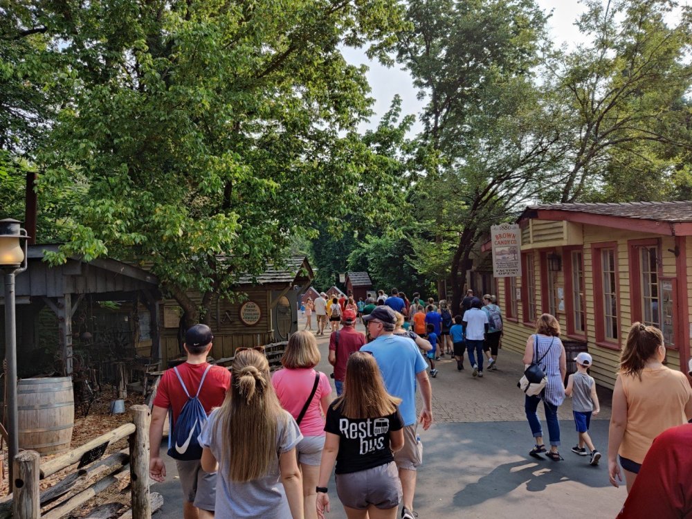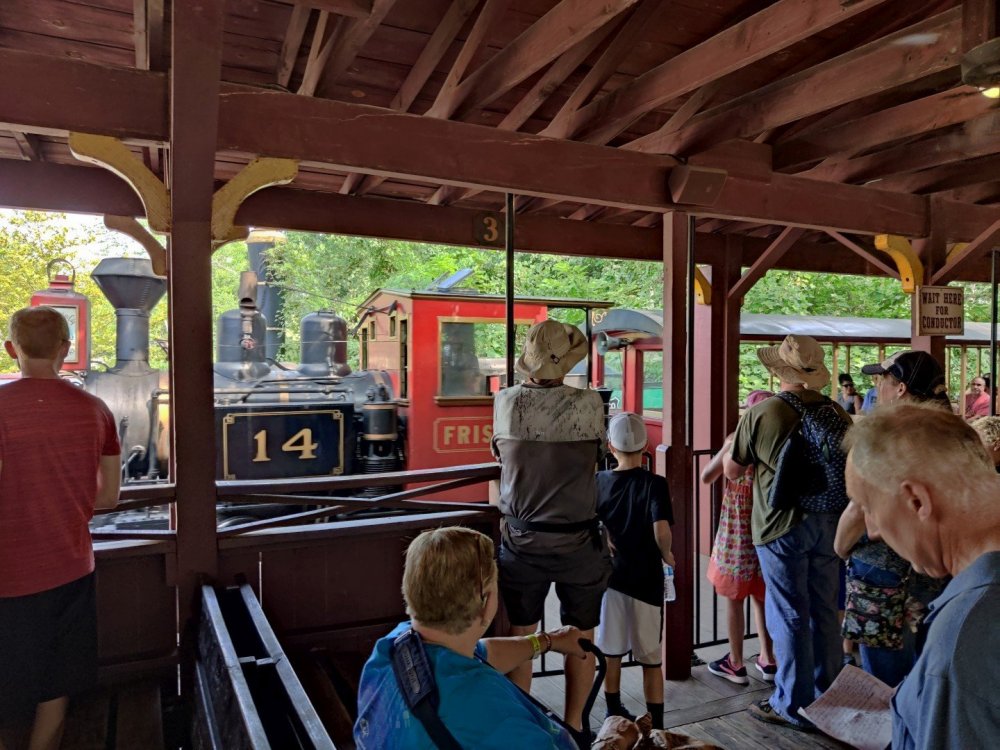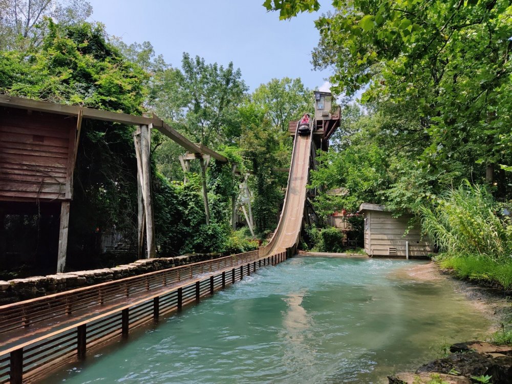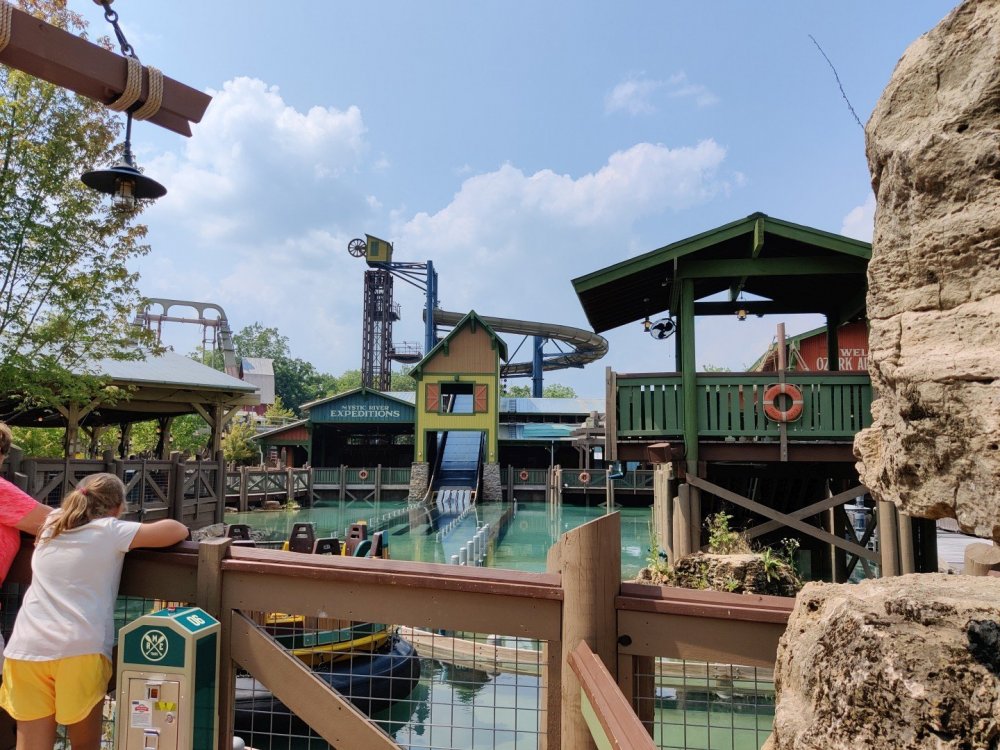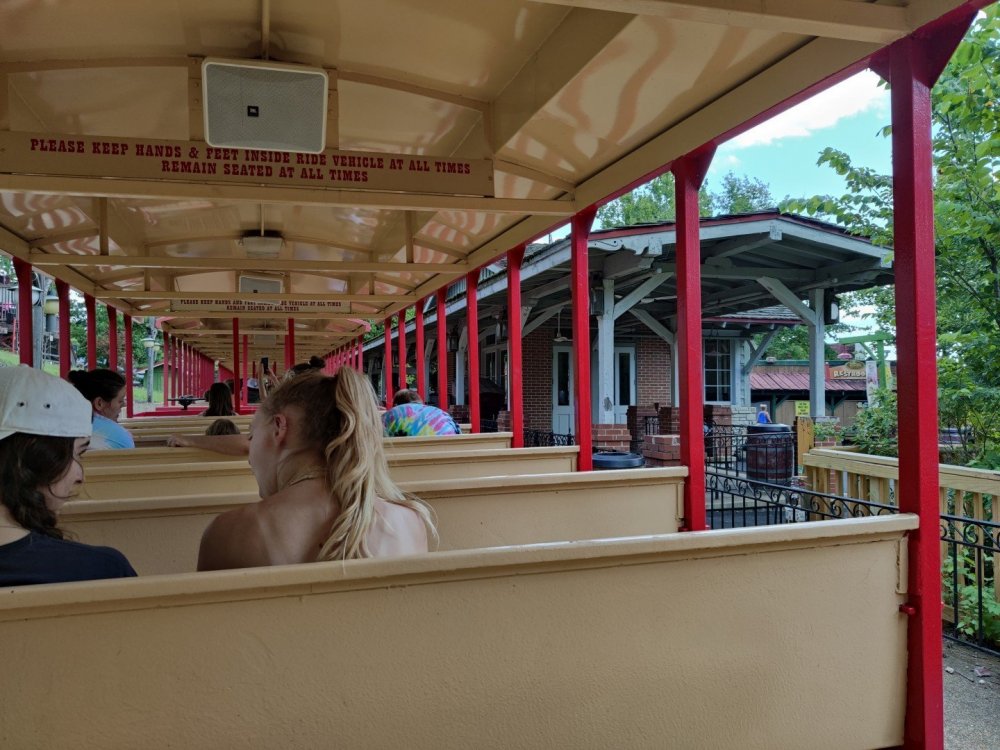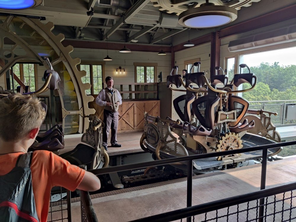 Day 2 - Silver Dollar City While I ended up enjoying Worlds of Fun so much more than I expected, it hadn't been one of the parks that I'd desperately wanted to get to from the start. Silver Dollar City was; it was Time Traveler that really started me thinking about this trip. I really could not wait to get here, though if anything I was a little worried that putting it so early in the trip might ruin the rest of it, setting too high a bar for other parks to live up to. Part of me was a little worried, too, that after WoF subverted my expectations, SDC might too, in a less positive direction. This....did not turn out to be the case. Silver Dollar City is incredible. Starting from the beginning though... SDC is a sizeable park, with a lot of parking, way out behind the park. Just look at Wildfire way out there on the horizon. Fortunately they do have trams to bring you to the park entrance. I hadn't particularly cared enough about Wildfire to be all that excited to see it from back here; that would change enough later on. Right from the entrance, Silver Dollar City is a beautiful park. You can tell what sort of place you've found right from the start. If you haven't been here, Silver Dollar City is sort of a Busch Gardens part, with the very heavy theming and equal focus on shops and food, not just rides, only themed to America, so with a much less "fake" atmosphere. It's sort of what would happen if Knoebels had a Disney budget. It also has an amazing, if tiring, setting up on the mountainside. I've never been to another park quite like it (I assume Dollywood is close, but that's on my list for next year.) With the number of pictures I took here I'm going to run out of captions quickly. There's only so many ways I can say "Silver Dollar City is beautiful." Silver Dollar City IS beautiful though. I stopped on my way in to get a Trailblazer pass; I'd been given the suggestion not to get one ahead of time but to consider it if the weather was nice and I expected crowds. The weather was absolutely perfect and there seemed to be quite a bit of traffic following me into the park, so it seemed wise to pick one up. I didn't regret buying it, though I probably could have made do without it as most of the lines never got too bad. It did turn out to be convenient a couple times though, especially later on. The implementation of the Trailblazer pass is a little bit frustrating though, one of the few things that SDC that seemed anything less than perfect. To start with, instead of getting a wristband, or the fastpass watch type device, or anything along those lines, you get a literal pass card on a lanyard; one you're expected to wear and hold on to at all times, that can not be replaced. This is not the greatest of all solutions when you're doing to be riding things like Outlaw Run. I can only imagine how many of the expensive, non-replaceable passes get lost. I ended up tying mine around my wrist for most of the day but it was not the most comfortable solution. It's clear that the Trailblazer passes are a newer system as well, too; only the newest few rides look to have been designed to support them. Almost everything else just has Trailblazer entrances going in the exit, or what looks like an emergency exit, or just entirely out of the way. They're generally marked by very small signs as well and some are not at all easy to find. Scavenger hunts are fun and all but the pass is supposed to save time. Relatively minor nitpick but definitely something I think the park could improve on. Pass in hand, I headed straight for Time Traveler. This was why I was here, at Silver Dollar City, in the midwest to start with, and I was not giving it a chance to break down or anything before I got on it. One thing that very quickly became clear; Silver Dollar City does not hold back or spare a cent when it comes to their stations and the staff in them. There isn't a plain looking ride anywhere and every ride crew has their own uniform. Staff was almost universally great too, as friendly and helpful as I've seen anywhere, and all very efficient. After I got off Time Traveler the first time, this guy took a look at my Kings Island shirt and pulled me aside to tell me that since I was obviously an enthusiast, I had to go back around and try row 7 this time. Sound advice; Row 7 gets you hauled backwards over the first drop in spectacular fashion and is definitely the row of choice for TT. You don't get to see much of the ride from within the park, buried in a valley as it is, but this window from the queue does give you a look at the tangled mess of track here. Promising! One more look at the impressive cars. Not a missed detail on them. The actual ride starts with a vertical drop straight into the canyon, and after that it's hard to even keep up what happens. There's not much more disorienting than a good spin right through a corkscrew. There are a couple of brief moments to catch your breath before the two launches, the first of which brings the train to a complete stop before sending you back into the tangles of track, but beyond that it's just craziness. Not one I'd recommend for anyone who suffers from motion sickness though... Between the ride itself and the theming, Time Traveler absolutely lives up to all I'd heard. I went around for a few rides hers, but there was a lot more of SDC to see. Thunderation next, since it was right there, and a good park can do a lot with a mine train! Not sure if the 1880s Steam Train was supposed to be this one or the actual train nearby in the park, but no matter. Like a lot of coasters here, it's hard to get a lot of pictures of Thunderation, since it drops over the side of the valley and disappears from the park for most of the ride. It's quite big for a family mine train though, and gets moving faster than I'd expected through some respectable drops and tight helixes. It might not have the theming of Thunder Mountain for just the ride itself it might be the best mine train out