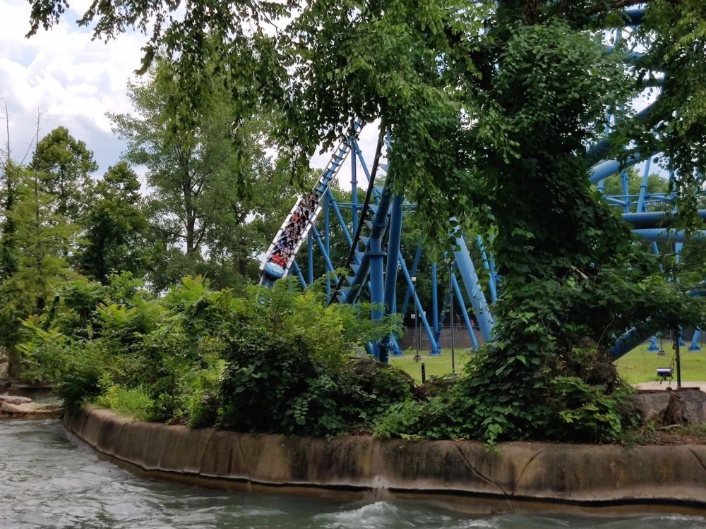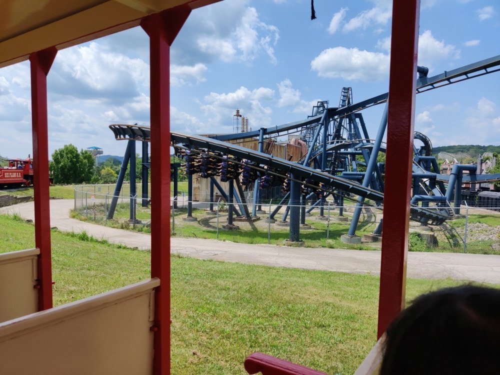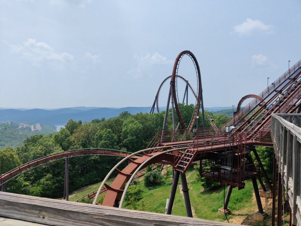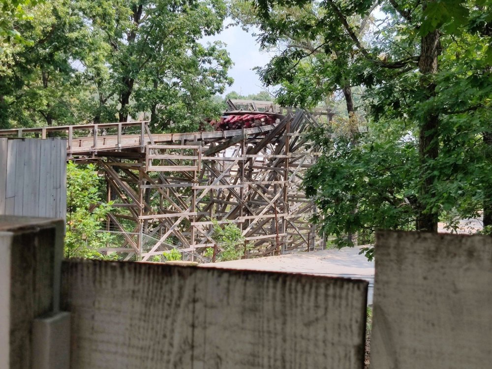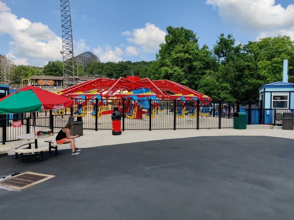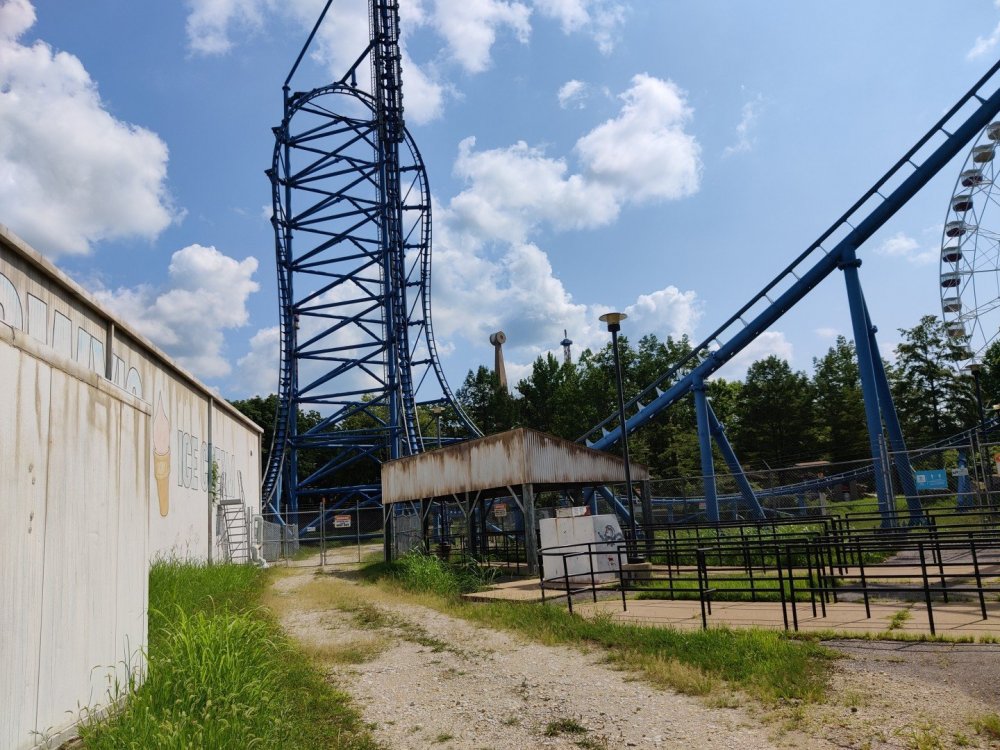 Day three was an early start and off to Six Flags St Louis. This was not among my must-do parks, but not only was I driving through the area but I have a couple local friends there, one of whom hasn't had a chance to get to an amusement park in many years, so I arranged to meet up with them and head for the park. Neither really wanted to spend a full day at a park, but I was generally fine with that; I could hit the important stuff here and then rest up a bit since SDC had been so tiring, and I still had most of a week of walking left. There was at least one thing I was looking forward to there, though not one of the coasters at all. When I was much younger, in my high school junior year, my school took us to Six Flags Great Adventure, where I really wanted to get on their giant Evolution. Of course, I walked up to the ride, took one look at it, and decided that maaaaaybe I'd try it later on after I worked up some nerve. Unfortunately, when I came back later, the ride was broken down for the day...as, apparently, was frequently the case. Two years later I returned to the park, and...it was down all day again. Shortly after that it was removed from the park, but was moved to Six Flags St Louis and renamed Excalibur, where it's now the only Bussink giant Evolution running anywhere in the world. I'd chased it halfway across the country and now I really wanted to finally get on it. Of course there was a lot of park between the gates and that ride. The entrance area is cute enough; pretty typical Six Flags but not bad! It quickly starts to look...a bit more early 2000s Six Flags again though. ...alright, not ever Six Flags is doing great with the landscaping, I guess. We skipped past American Thunder and the flume since everyone else was heading that way, and planned to start right at the back, but turned the corner to find Justice League open with absolutely no one in the queue. ...which...was good because the queue was not a particularly attractive place to hang out in the direct sunlight. A little nicer indoors, but still empty. Six Flags actually made some effort with theming on Justice League. Disney it's not, but not bad! The ride itself is definitely a budget version of some of the bigger interactive dark rides; the vast majority of the action takes place on screens with only limited physical sets, and only the screens are interactive. Two of the guns in our car didn't seem to work either. Still, it's worth a ride through, and it does make good use of the cars' movement. Not Spider-Man or even DarKastle (RIP) but amusing, especially with no wait. Heading out of that ride left me with a towering blue spire right in front of me. Well, I wasn't missing this one! Both of my friends were...not up to starting out with that kind of coaster, but there was nearly no line, so I let them find some shade while I headed over to Mr Freeze. Six Flags really could do something with the central area here and make the ride look a bit more attractive though. ...and...they could do a LOT with the area closer to the station building. Noooot the chain's best effort here. Inside, though, the station looks pretty good. It's a pretty nice setup two, with two loading areas to load and unload one train while the other is carried to the center on a transfer track and launched...backwards...out to the spire. It rides pretty much like the other older Premier launch coasters I've been on, Flight of Fear, Poltergeist etc, which is to say it's not the smoothest ride out there, but not too unbearable. The launch, especially backwards, is pretty intense. After that you've got a reasonably tall top hat, a fast overbanked turn, and then a climb up the spire before doing it all backwards. Er, front-wards. It could be a better ride with some attention to theming instead of just plopping it in a messy field, but still a fun coaster. There was absolutely no one in the station except waiting for the front row when my train returned, so I got another ride out of it, and could have stayed for more but felt a bit bad leaving my friends, so headed back to meet them, so we could finish heading to the back of the park. About the greenest part of the park... REALLY? Halfway across the country, and for the third time... I was not thrilled...but not particularly surprised either. Didn't see much need to prioritize this after just riding Spinning Dragons the other day. Supergirl...great ride, still not as good as a classic Enterprise. One of my friends said they were at least up to doing a classic wood coaster, so we both looked up at the treeline behind Supergirl and I tried not to cringe. I'd heard enough about the Boss... I was nice enough to warn my friend, but...they were not dissuaded and I was going to want to get on it eventually anyway. It...looks pretty good! I love the layout. The BANG THUNK BANG noises the train made tearing past were not promising though. There used to be a helix back there. It was apparently removed because it was too rough? ...What about the rest of the coaster? When the train comes back into the station, the op asks how the ride was, and everyone on it groans, you know what you're in for. The Boss was not the worst coaster I've ever ridden. Hercules at Dorney still takes that spot, especially the last year before it was torn down. The most painful that's still standing though? Easily. I really wish this wasn't the case; the coaster's size, speed, and layout really should make it a great one, but I barely remember what it actually did after the first drop; I was trying to brace myself to avoid major trauma, and trying to reassure my friend that no, coasters aren't usually like this. I'd love to know what The Boss is like when it's running well, if it ever runs well, but what a disaster. Needing something less likely to result in spinal fractures, and wanting to let my second friend who was not feeling up to major rides come along, we decided it was worth waiting a bit for the River King mine train. For a 