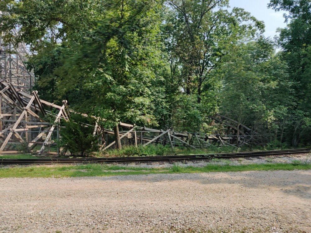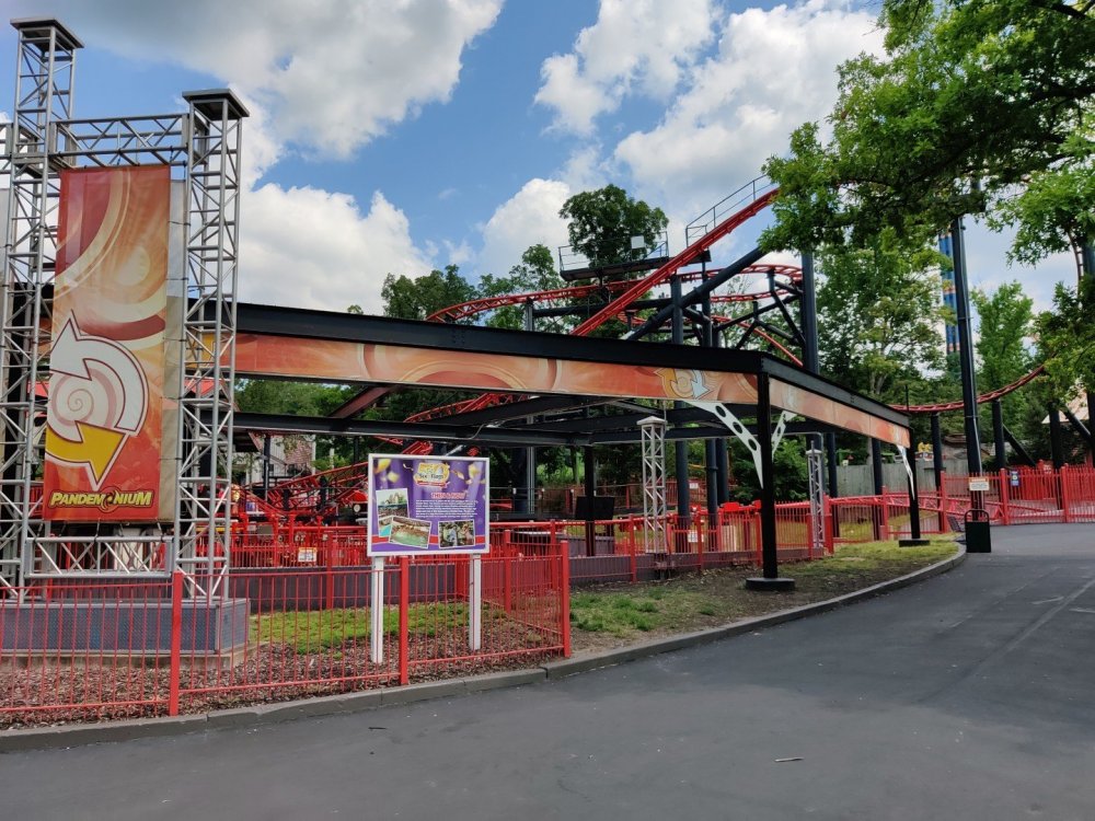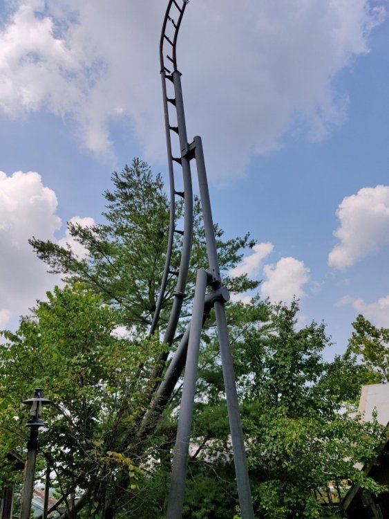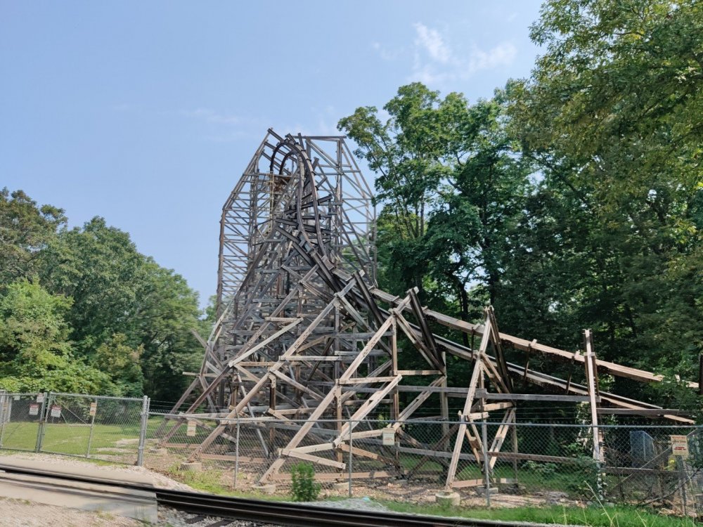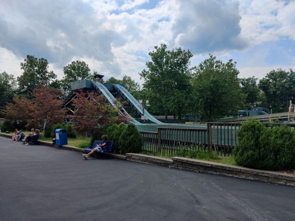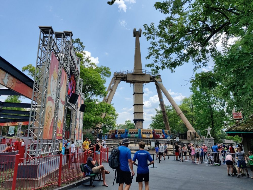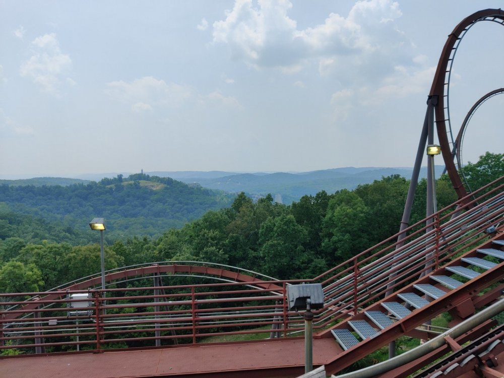 Day three was an early start and off to Six Flags St Louis. This was not among my must-do parks, but not only was I driving through the area but I have a couple local friends there, one of whom hasn't had a chance to get to an amusement park in many years, so I arranged to meet up with them and head for the park. Neither really wanted to spend a full day at a park, but I was generally fine with that; I could hit the important stuff here and then rest up a bit since SDC had been so tiring, and I still had most of a week of walking left. There was at least one thing I was looking forward to there, though not one of the coasters at all. When I was much younger, in my high school junior year, my school took us to Six Flags Great Adventure, where I really wanted to get on their giant Evolution. Of course, I walked up to the ride, took one look at it, and decided that maaaaaybe I'd try it later on after I worked up some nerve. Unfortunately, when I came back later, the ride was broken down for the day...as, apparently, was frequently the case. Two years later I returned to the park, and...it was down all day again. Shortly after that it was removed from the park, but was moved to Six Flags St Louis and renamed Excalibur, where it's now the only Bussink giant Evolution running anywhere in the world. I'd chased it halfway across the country and now I really wanted to finally get on it. Of course there was a lot of park between the gates and that ride. The entrance area is cute enough; pretty typical Six Flags but not bad! It quickly starts to look...a bit more early 2000s Six Flags again though. ...alright, not ever Six Flags is doing great with the landscaping, I guess. We skipped past American Thunder and the flume since everyone else was heading that way, and planned to start right at the back, but turned the corner to find Justice League open with absolutely no one in the queue. ...which...was good because the queue was not a particularly attractive place to hang out in the direct sunlight. A little nicer indoors, but still empty. Six Flags actually made some effort with theming on Justice League. Disney it's not, but not bad! The ride itself is definitely a budget version of some of the bigger interactive dark rides; the vast majority of the action takes place on screens with only limited physical sets, and only the screens are interactive. Two of the guns in our car didn't seem to work either. Still, it's worth a ride through, and it does make good use of the cars' movement. Not Spider-Man or even DarKastle (RIP) but amusing, especially with no wait. Heading out of that ride left me with a towering blue spire right in front of me. Well, I wasn't missing this one! Both of my friends were...not up to starting out with that kind of coaster, but there was nearly no line, so I let them find some shade while I headed over to Mr Freeze. Six Flags really could do something with the central area here and make the ride look a bit more attractive though. ...and...they could do a LOT with the area closer to the station building. Noooot the chain's best effort here. Inside, though, the station looks pretty good. It's a pretty nice setup two, with two loading areas to load and unload one train while the other is carried to the center on a transfer track and launched...backwards...out to the spire. It rides pretty much like the other older Premier launch coasters I've been on, Flight of Fear, Poltergeist etc, which is to say it's not the smoothest ride out there, but not too unbearable. The launch, especially backwards, is pretty intense. After that you've got a reasonably tall top hat, a fast overbanked turn, and then a climb up the spire before doing it all backwards. Er, front-wards. It could be a better ride with some attention to theming instead of just plopping it in a messy field, but still a fun coaster. There was absolutely no one in the station except waiting for the front row when my train returned, so I got another ride out of it, and could have stayed for more but felt a bit bad leaving my friends, so headed back to meet them, so we could finish heading to the back of the park. About the greenest part of the park... REALLY? Halfway across the country, and for the third time... I was not thrilled...but not particularly surprised either. Didn't see much need to prioritize this after just riding Spinning Dragons the other day. Supergirl...great ride, still not as good as a classic Enterprise. One of my friends said they were at least up to doing a classic wood coaster, so we both looked up at the treeline behind Supergirl and I tried not to cringe. I'd heard enough about the Boss... I was nice enough to warn my friend, but...they were not dissuaded and I was going to want to get on it eventually anyway. It...looks pretty good! I love the layout. The BANG THUNK BANG noises the train made tearing past were not promising though. There used to be a helix back there. It was apparently removed because it was too rough? ...What about the rest of the coaster? When the train comes back into the station, the op asks how the ride was, and everyone on it groans, you know what you're in for. The Boss was not the worst coaster I've ever ridden. Hercules at Dorney still takes that spot, especially the last year before it was torn down. The most painful that's still standing though? Easily. I really wish this wasn't the case; the coaster's size, speed, and layout really should make it a great one, but I barely remember what it actually did after the first drop; I was trying to brace myself to avoid major trauma, and trying to reassure my friend that no, coasters aren't usually like this. I'd love to know what The Boss is like when it's running well, if it ever runs well, but what a disaster. Needing something less likely to result in spinal fractures, and wanting to let my second friend who was not feeling up to major rides come along, we decided it was worth waiting a bit for the River King mine train. For a 