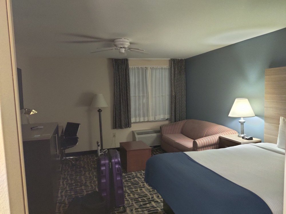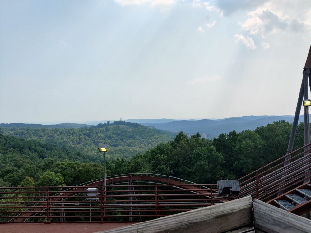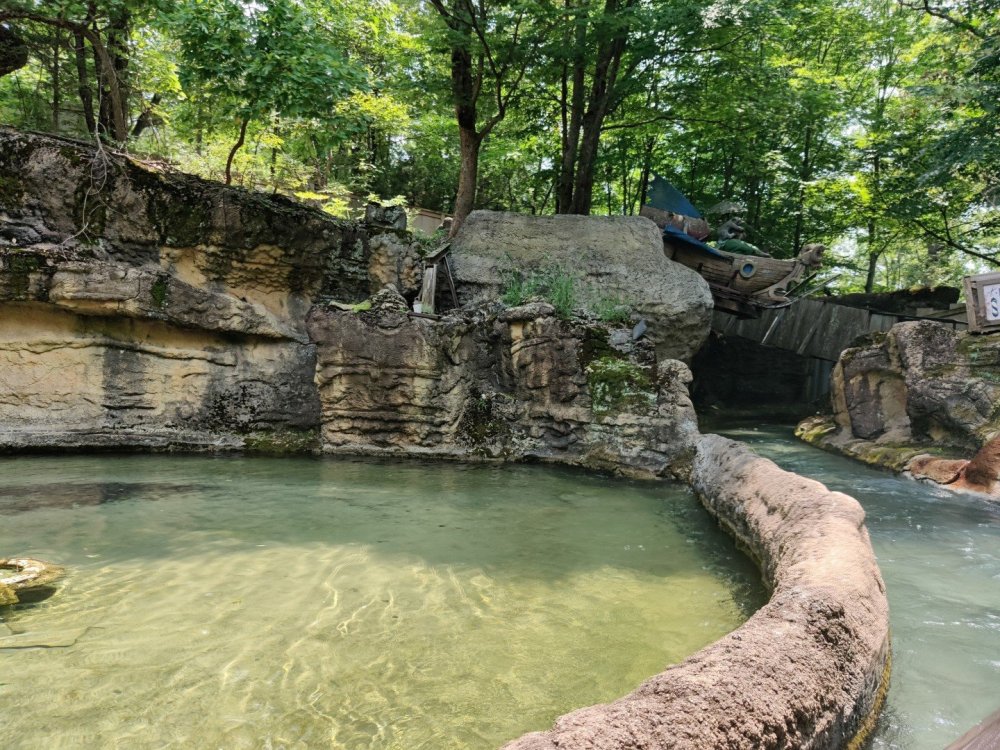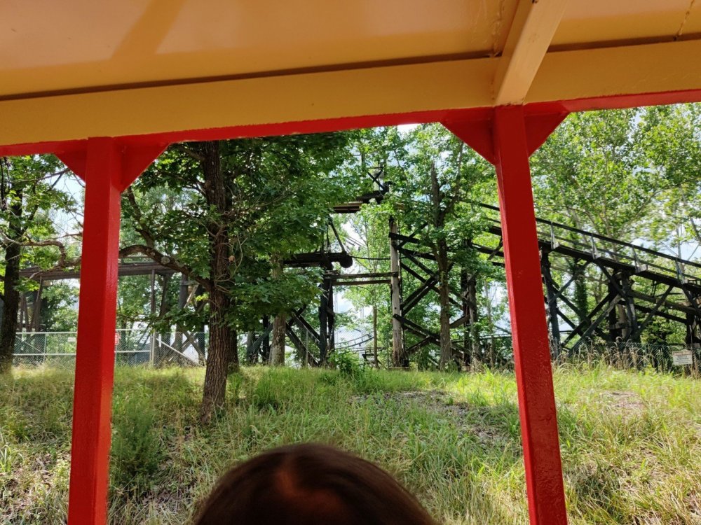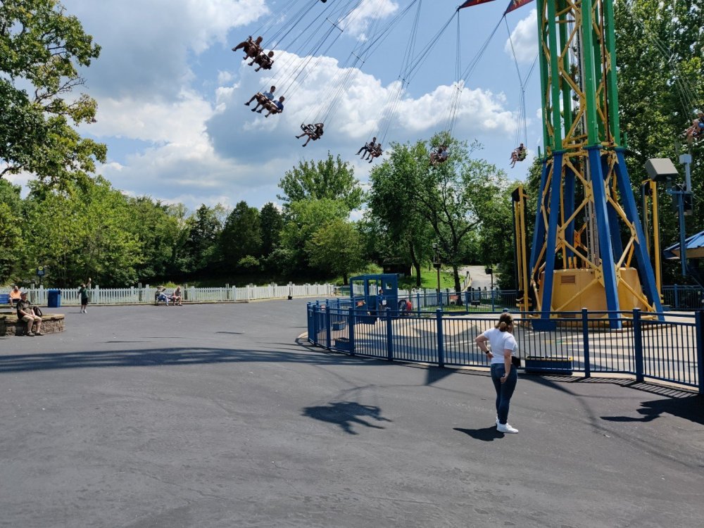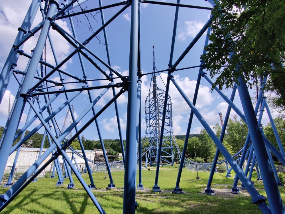 Day three was an early start and off to Six Flags St Louis. This was not among my must-do parks, but not only was I driving through the area but I have a couple local friends there, one of whom hasn't had a chance to get to an amusement park in many years, so I arranged to meet up with them and head for the park. Neither really wanted to spend a full day at a park, but I was generally fine with that; I could hit the important stuff here and then rest up a bit since SDC had been so tiring, and I still had most of a week of walking left. There was at least one thing I was looking forward to there, though not one of the coasters at all. When I was much younger, in my high school junior year, my school took us to Six Flags Great Adventure, where I really wanted to get on their giant Evolution. Of course, I walked up to the ride, took one look at it, and decided that maaaaaybe I'd try it later on after I worked up some nerve. Unfortunately, when I came back later, the ride was broken down for the day...as, apparently, was frequently the case. Two years later I returned to the park, and...it was down all day again. Shortly after that it was removed from the park, but was moved to Six Flags St Louis and renamed Excalibur, where it's now the only Bussink giant Evolution running anywhere in the world. I'd chased it halfway across the country and now I really wanted to finally get on it. Of course there was a lot of park between the gates and that ride. The entrance area is cute enough; pretty typical Six Flags but not bad! It quickly starts to look...a bit more early 2000s Six Flags again though. ...alright, not ever Six Flags is doing great with the landscaping, I guess. We skipped past American Thunder and the flume since everyone else was heading that way, and planned to start right at the back, but turned the corner to find Justice League open with absolutely no one in the queue. ...which...was good because the queue was not a particularly attractive place to hang out in the direct sunlight. A little nicer indoors, but still empty. Six Flags actually made some effort with theming on Justice League. Disney it's not, but not bad! The ride itself is definitely a budget version of some of the bigger interactive dark rides; the vast majority of the action takes place on screens with only limited physical sets, and only the screens are interactive. Two of the guns in our car didn't seem to work either. Still, it's worth a ride through, and it does make good use of the cars' movement. Not Spider-Man or even DarKastle (RIP) but amusing, especially with no wait. Heading out of that ride left me with a towering blue spire right in front of me. Well, I wasn't missing this one! Both of my friends were...not up to starting out with that kind of coaster, but there was nearly no line, so I let them find some shade while I headed over to Mr Freeze. Six Flags really could do something with the central area here and make the ride look a bit more attractive though. ...and...they could do a LOT with the area closer to the station building. Noooot the chain's best effort here. Inside, though, the station looks pretty good. It's a pretty nice setup two, with two loading areas to load and unload one train while the other is carried to the center on a transfer track and launched...backwards...out to the spire. It rides pretty much like the other older Premier launch coasters I've been on, Flight of Fear, Poltergeist etc, which is to say it's not the smoothest ride out there, but not too unbearable. The launch, especially backwards, is pretty intense. After that you've got a reasonably tall top hat, a fast overbanked turn, and then a climb up the spire before doing it all backwards. Er, front-wards. It could be a better ride with some attention to theming instead of just plopping it in a messy field, but still a fun coaster. There was absolutely no one in the station except waiting for the front row when my train returned, so I got another ride out of it, and could have stayed for more but felt a bit bad leaving my friends, so headed back to meet them, so we could finish heading to the back of the park. About the greenest part of the park... REALLY? Halfway across the country, and for the third time... I was not thrilled...but not particularly surprised either. Didn't see much need to prioritize this after just riding Spinning Dragons the other day. Supergirl...great ride, still not as good as a classic Enterprise. One of my friends said they were at least up to doing a classic wood coaster, so we both looked up at the treeline behind Supergirl and I tried not to cringe. I'd heard enough about the Boss... I was nice enough to warn my friend, but...they were not dissuaded and I was going to want to get on it eventually anyway. It...looks pretty good! I love the layout. The BANG THUNK BANG noises the train made tearing past were not promising though. There used to be a helix back there. It was apparently removed because it was too rough? ...What about the rest of the coaster? When the train comes back into the station, the op asks how the ride was, and everyone on it groans, you know what you're in for. The Boss was not the worst coaster I've ever ridden. Hercules at Dorney still takes that spot, especially the last year before it was torn down. The most painful that's still standing though? Easily. I really wish this wasn't the case; the coaster's size, speed, and layout really should make it a great one, but I barely remember what it actually did after the first drop; I was trying to brace myself to avoid major trauma, and trying to reassure my friend that no, coasters aren't usually like this. I'd love to know what The Boss is like when it's running well, if it ever runs well, but what a disaster. Needing something less likely to result in spinal fractures, and wanting to let my second friend who was not feeling up to major rides come along, we decided it was worth waiting a bit for the River King mine train. For a 