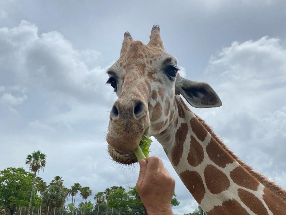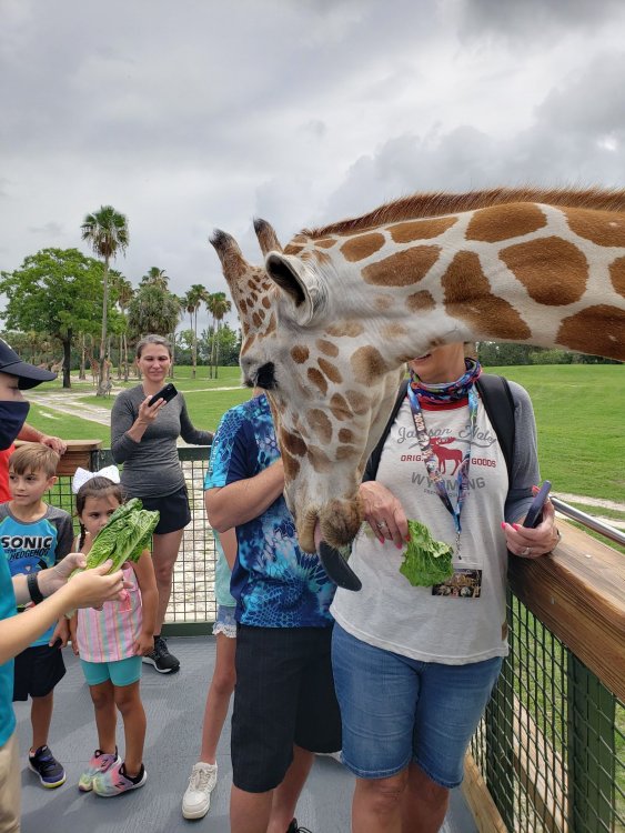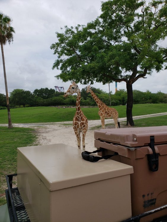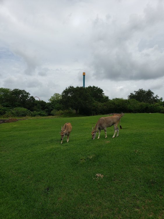 Day 2 at Busch Gardens! We planned on doing the safari where you can feed giraffes, get close to rhinos/nyala/many other African animals! With Alex's pass discount I think we paid like, $40? We weren't able to reserve our spot online, you had to show up when the park opened and get a spot (if it wasn't sold out already). I can't recommend this tour enough, it was so much! Our guides were really friendly, informative, and helped give us tips on how best to feed the giraffes. You get a great view of Cheetah Hunt, Cobra's Curse, and Montu as well. We were able to get on the first tour of the day around 1030am and there were only 6 other people with us so it felt private! Oh good, Cheetah Hunt is working today! Spoiler, it still had a 2.5 hour wait for the general queue. Let's get this tour started! I love this hidden barrel roll, I really wonder how many people would skip Cheetah Hunt if that inversion was front and center, it's like a little surprise for those who don't know it's coming! The supports are pretty unique too. Maverick-lite hill produces some solid airtime! Mr. Nyala is on the left and 2 of his 8 girl friends are on the right. They said he's very happy and keeping their population up! They had a newborn a few weeks ago. This rhino is very emo and likes to be alone. Also poops a lot. Pretty sure these are real animals. There are 2 baby giraffes on property and on the day of our tour it was one's birthday! There's the 2 babies in the background. I think they know we've got the good green stuff. Yoohooo over here! Some sort of largest deer typa animal, very cute 7/10. Eventually, we had this 'ol gal come over. Sometimes you will get more than 1 giraffe, but this girl doesn't like competition since she's older and the other giraffes know to let her do her thing and they'll get a snack later. Giraffes are cute. Giraffes have long tongues to pick leaves. Cute! Not cute. They're really textured and super slimy so imagine you're getting a crusty yet slimy handshake hahaha Make your arm like a branch and hold it high for her! It's amazing to see them so close. Look at those big eyes "I want one" Alex. Video_1.movVideo.mov And there's a nice view of the 'closed' corner of the park. Cobra's Curse never opened, and went on to be down for over a month in June/July. Montu was closed almost the entire day and thankfully re-opened. Whew. Cmon BGT, do better! More to come shortly, I had never added videos so wanted to get those uploaded. Video_1.mov1 point