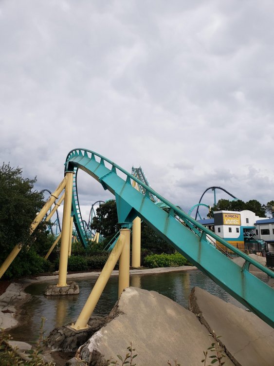 Okay with Busch Gardens complete, it was time to head to Orlando! Alex and I had looked into a rental car since some of the Universal Resorts have a rental car company built into them, but that idea was quickly dismissed when I realized at Lyft hotel-to-hotel Tampa-Universal was only $80. Easiest decision ever. Turns out it works well for the drivers as they'll take people to Orlando, make bank at Disney/Universal then head home. I scheduled the Lyft a week out, locked in the rate, and it was an easy ride to the Royal Pacific. Even at NOON we were able to check in and get settled, that was fantastic. It also was a Meat Monday, and we were able to meet up with the Alveys + Reed and Stacey (nice meeting you two). It was so great to see familiar faces after 2 years!!! Of course Gyu Kaku is amazing and delicious and their lunch specials are great. Robb & Elissa were kind enough to drop us off at Sea World for our second park of the trip! SeaWorld Orlando The entry is cool with the lighthouse + oceanic waves. I think the day we arrived in Orlando was when Orlando decided to go into full shitstorm summer mode. We probably arrived around 3pm and 90 minutes later we could tell the clouds were brewing and the wind picked up. We got 2 rides on Mako, went over to check out Infinity Falls, which was having some sort of issue. So nope, not getting on the new hotness. We got a bit lost back by Ice Breaker and ended up going into the Wild Arctic, which was a bit spooky to be honest, haha. We had no idea what exhibits were within and it was dark, themed to a shipwreck of sorts, but there were some different sea mammals in there. Upon exiting the building we could hear loud metallic slaps toward the front of the park. The incoming storm was making the cables on the Sky Tower violently shake and hit the tower's structure, which is incredibly ominous We booked it across that wooden bridge that goes over the water in the center of the park and before I could even begin to search for that Shark Bar and Grill we ended up ducking into the Seafire Grill/Flamecraft Bar where we had an incredible view of the storm coming in. We got absolutely shitstormed on for 2 hours, yet people took their time in the lightning and thunder walking over that bridge to the front of the park. How did these people survive 2020 to make it to 2021?! A bit tipsy after sampling some Florida beer, rides were slowly starting to reopen and we made our way to Atlantis, Kraken, Mako, and then the storms came back in, but with no lightning this time. We were already wet, kinda drink, so just kept riding Mako in the rain and Manta had finally re-opened and we got on that before heading out. I wanted to get on that Penguin/Antarctic dark ride everyone dunks on but it's not even operating? Again like the other exhibits we went through, it was just really dark and ominous. We walked through seeing no one then ended up in the station and where the penguins are? It was just really odd and creepy. Manta: I need to get back on this. By the time it had opened, we were soaked, cold, kinda drunk, and it was pouring our entire ride. I really really loved Acrobat/Japanese Manta, but a rainy night ride on Manta just didn't really let me appreciate the beautiful themeing and floral surroundings and water finale. I know this ride is good. Atlantis: I don't know much about the ride's history other than it's not as well themed as it used to be. Regardless, it was a pretty awesome flume/coaster combo. I would love for more of these to be built if they did different layouts and surprises. The first big drop was better than I expected. Kraken: Kinda the ride I was expecting to like the most. A 2000 B&M that dives in and out of the ground, bonus inversions, a classic floorless. Sadly it just didn't offer much intensity, the drop didn't give airtime, and the whole area seems neglected. It's kinda built in between mechanical/support for the surrounding aquatic experiences so it felt like a parking lot coaster. Bummer. Mako: Kraken was my anticipated coaster because I didn't buy into the Mako hype. It's just a new B&M hyper right? Yes, but it hits. This is the best B&M hyper in America, in my opinion. An excellent first drop that rivals the intensity of the gigas, it's just not as tall. The second twisted hill is more memorable than Orion's wave turn as it's almost like an inversion fake out. Then you've got 2 awesome airtime hills with a tight hammerhead in between before the coaster snakes around giving you some more air and twists. It's so good it's worth marathoning in the rain. Alright, I get the hype. Mako is so much fun it deserves to be talked about as one of the best hypers. Next door Kraken needs some love. It's essentially a parking lot coaster with all of that gray mechanical stuff it's tucked in. No wonder they put VR on it! (No, that's still not cool). Looks like a weird steel version of Mystic Timber's layout. Can't wait for this to open and see how it is. (Then huge shitstorm for 2 hours) I was so stoked to ride Kraken, but sadly this coaster isn't running as well as the other B&M's in the park. Can we just turn up the intensity here please? It's got all the classic B&M inversions + some extra twistyness. I was surprised by this one, even if it's not as good as it once was. More of these type of rides, please! Why even have this thing 'open' to walk through, there's nothing going on here. Ya'll see how creepy/ominous this is? This is what most of the indoor experiences were like. No signage about things being closed, they just let you walk through what feels like an abandoned attraction but there's actually real animals in some of them. I was really weirded out. Absolutely soaked, but who cares. Mako is amazing and they just kept cycling us through until we had enough. What a strange SWO visit but I think Meat Monday was the highlight of the day2 points