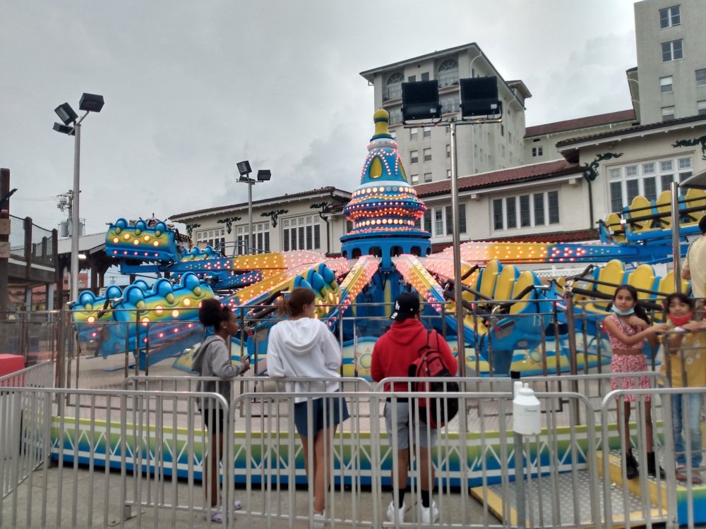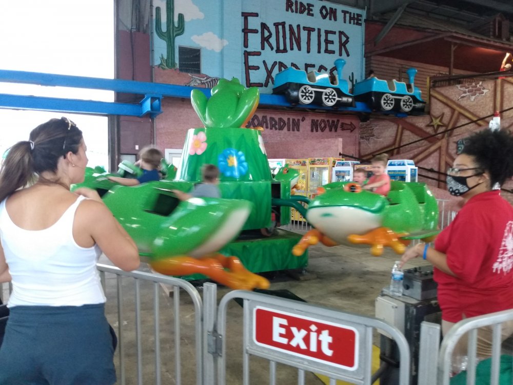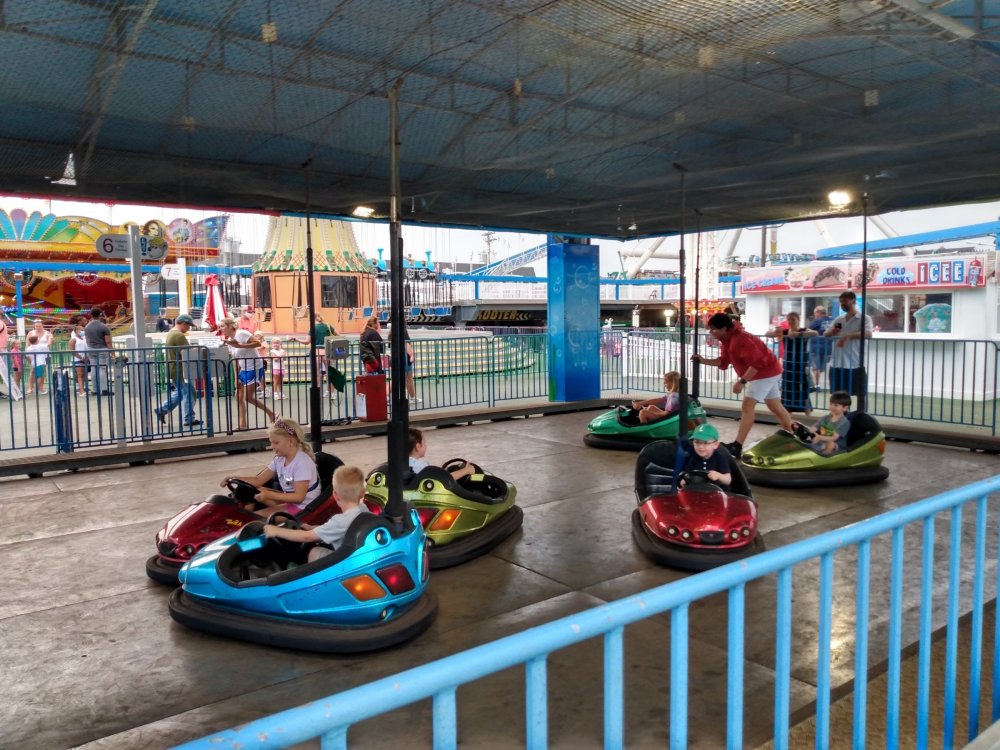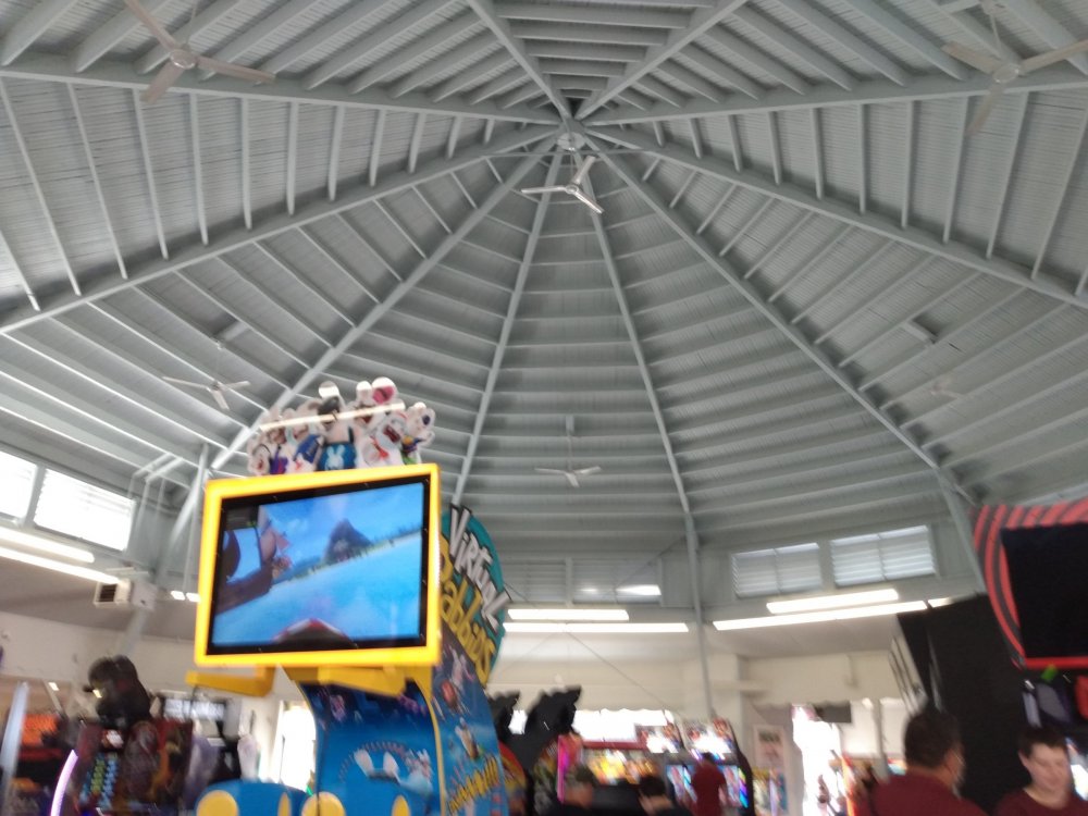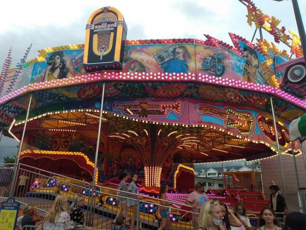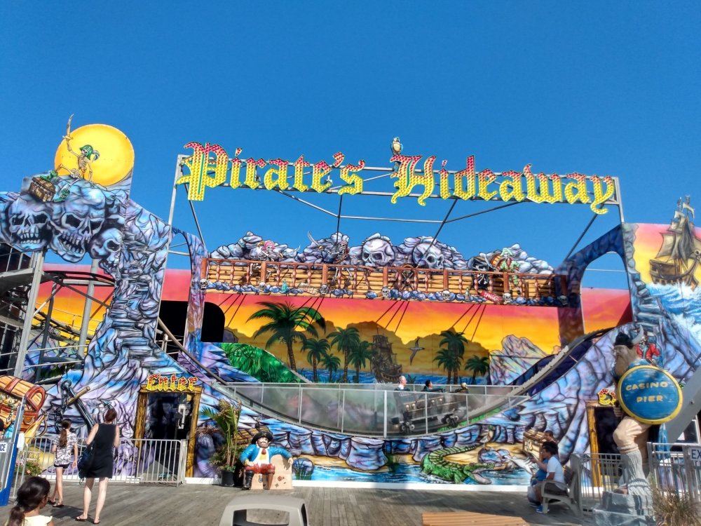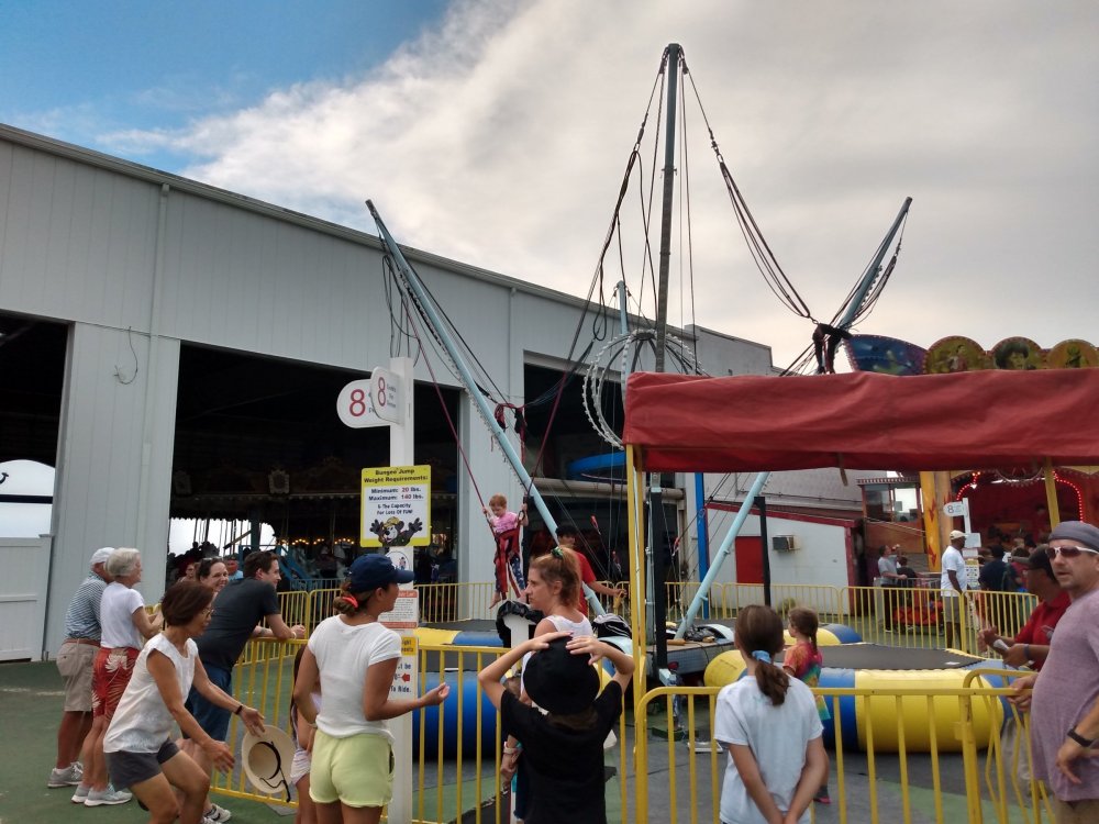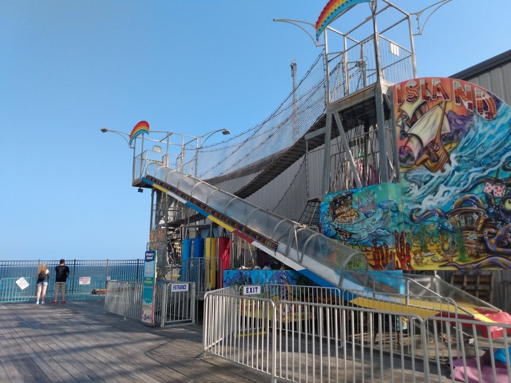 A town that I haven't been to for probably 30 years... Ocean City, NJ Yes, I know I skipped Atlantic City and Beach Haven (for now) - that's because, as you can see in the photos, a wicked storm was approaching and I was desperately trying to get Gale Force before it hit. Did I make it? Read on to find out! So, Ocean City is unique amongst NJ beach towns that have boardwalks in that it's the only one that's dry. Yes, no alcohol - no bars, no liquor stores, no beer stores, no nothing. You can bring in your own, and recently some BYOB restaurants have popped up, but yeah. Needless to say, this town is focused on attracting families. That's why I find it so odd that one of the parks built perhaps the most insane coaster I've ever been on. But I'll get to that later. First, some pictures from the boardwalk itself. They have designated lanes for bikes, walkers, and trams. A pretty sizeable water park. Did not go in. Partially-under-the-boardwalk go-karts. See, Morey's, you can still have this! Bring 'em back! This arcade featured nothing but real video games, no redemption whatsoever! Lots of classics as well as some modern games. Anyway, on to park #1: Gillian's Wonderland This park is partially indoors and partially outdoors, and features a cool castle-motif entrance. Each of the letters that spell out "Gillian's Wonderland" spin; it's quite a cool retro thing to keep around. And first, the indoor rides, which are all kid-targeting. Carousel Boats-go-round Crazy Bus themed to a submarine; first time I'd seen one of these. Balloons-go-round Fire trucks-go-round. Amusingly, some of them have trailers, which I'd never seen before. Kiddie Whip Dumbo-go-round A variant on the Zamperla buggy bouncer that I hadn't seen before. Cars-go-round Moving outside, we start with a standard climbing structure. Glass maze Zamperla spinning flyer Kiddie bumper cars A variant of the Dizzy Dragons, themed to the park's mascot. Wave Swinger Bungie Bounce. Been a while since I've seen one of these at a park. Musk Express Larson drop tower A train ride themed to chopper motor-tricyles. First time I've seen one of these. Standard burlap-sack slide. Big spinny-swingy-thingy that is not for me. An elevated monorail train ride, also goes around the inside part. Adult bumper cars Log flume that is also a dark ride. I really wanted to go on this, but I also really did not want to get wet with a lot of trip left to go, so I passed after seeing some people coming off it considerably dampened. Decently sized Ferris Wheel Standard Moby Dick, without the full backdrop. And a Ring of Fire. Waiting to be assembled, or waiting to be shipped off? I don't know. And now, the rides I did ride: Yep, that's right, I rode a Wacky Worm. Probably the low point of my coaster-riding career. But hey, I really wanted to get to 200, and a credit is a credit, right? Right...?! Anyway, it sucked. Two laps, and one little tiny barely perceivable pop of airtime on the one actual drop on the course in the back row. You know what else kinda sucked? Their dark ride, literally named "Dark Ride." Despite the name, it was full of large rooms and neon-painted decorations. Very little animatronics. Only one story despite the two-story building. I mean, I've been on *worse* dark rides (see my report from the Delaware State Fair), but yeah this was not that good. After those two at Gillian's, I headed down to Playland's Castaway Cove, definitely the more balanced park of the two, grabbing a small cup of Kohr's Brothers orange custand (with rainbow sprinkles), my staple, on the way. No NJ boardwalk trip is complete with out it. This place is cool in that everything is right on top of each other, sometimes literally on an upper deck. First, I'll showcase the rides I didn't ride: Wave Swinger Kiddie swing Kinda a jumbo-sized Kanga-Bounce from Morey's. Drive-'em cars. Tank-control bumper cars!!! I would have ridden these if I weren't alone...bumper cars with strangers is always kinda weird. But, I LOVED the gas-powered ones that were at Dorney Park before Demon Drop got installed. These were electric, but probably still tons of fun. Pirate's Gold Rush, their kiddie coaster. Would have ridden it (adults-sans-kids were allowed), but....you'll see. Burlap-sack slide. Cars-go-round Kiddie whip Kiddie drop tower Helicopters-go-round Standard climbing structure Zamperla spinning flyer Two-drop log flume Tilt-a-Whirl, with the new style cars. A Musik Express called "Rock-n-Roll." Guys, that name is already taken for a different type of ride... Gravitron Moby Dick themed to a Hurricane. Seriously guys, too soon. KMG claw ride Bumper cars Train ride, pretty sure it's the same model as is in Jenkinson's. S&S tower. Nope, still not the smallest one I saw on this trip. Pirate ship Carousel Balloons-go-round Okay, so what did I ride? I first tried to ride Gale Force, but upon arrival at the station, was promptly informed that it was shut down due to impending lightning. Here's some pictures anyway: Bummer. I figured Wild Waves was the same way, so I went to this: I had never seen something like this before. Apparently, it's a Technical Park brand ride model called "Aerobat" (click here for their website and better pictures/video). Castaway Cove calls it "Squadron 33". The wheel spins, and raises like a Zamperla Endeavor, but at a point the longitudinal rotation of the cars unlocks, and the rider controls it by angling the wings to divert airflow. My god was this thing nuts. At first, I was having trouble getting the car to flip, but once I did I could barely get the thing to stop. I must have flipped a half-dozen times before I got it to stop doing full rotations, and this is all while spinning around, coming what felt to be dangerously close to the platform while upside down. It felt like a super-long cycle, and once I got the hang of it I was able to do one or two flips and then recover. Insane, great ride. Why more of these don't exist, I can't fathom. 11/10, 6-stars, 