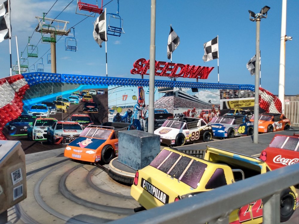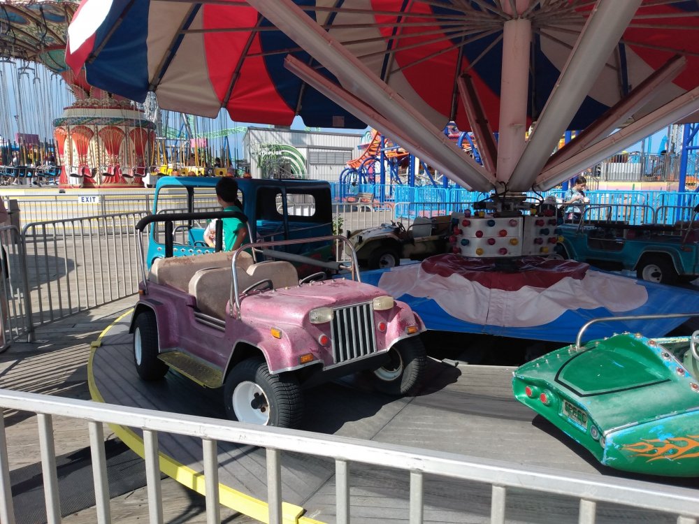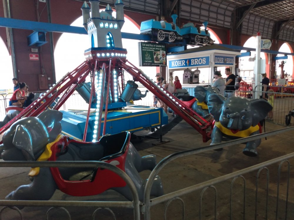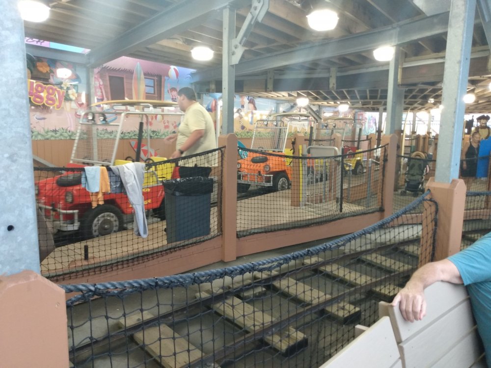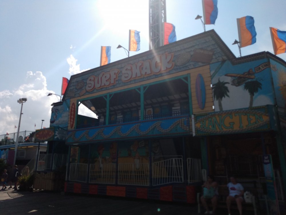 It's T-shirt time! Cabs ah here! Come at me bro! Casino Pier, Seaside Heights Ah, Seaside. The place where I spent most Fridays back in high school, with the same group of friends, only two of which I still actually periodically talk to. A place where I've dropped hundreds of dollars in to Dance Dance Revolution and the retro-arcade in the now-destroyed Fun Town Pier. A place where I rode my first ever looping roller coaster, Fun Town's aptly-named "Looping Coaster" (a Pinfari looper). A place where I worked the two summers between my junior and senior year and the one after I graduated college. Doing what, you might ask? That's right....games carny, just like my father did in his youth. Some things come full circle. I've gotta talk about that though. I'm not going to mention which company's games I worked for specifically, to protect the owner who is an awesome guy, but let me tell you about this job. Here was a typical day for me: Get into town around 9:00 AM and lay out on the beach for an hour, before they started charging (yes, Seaside is one of NJ's many pay-to-go-on-the-beach towns), then start my shift at 10. Every three hours, get a 15 minute break, in which I'd stroll down the boardwalk to the Beachcomber Bar & Grille (famously where Snooki was punched*), pound a shot or two, and come back to work. Did the bosses mind? Nope, not at all! Alcohol made me more animated in my spiels, which got more customers to play, which made the bosses more money. At the end of the day (typically midnight on a weekday, 1 or 2 AM on a Friday or Saturday), I'd go to the bars or a house party with people I hit on during the workday, or play poker with the guys, or shoot down to Atlantic City for an all-night blackjack session, just to come back and do it again the next day. This happened 6 days a week. Honestly, it was the greatest job I ever had - very laid back, could smoke whenever I wanted, met tons and tons of people...if I could do that for what I get paid now, with benefits, I would in a heartbeat. *Fun Fact: I was there the night it happened, but not actually in the bar when it happened. When their "advance team" rolled into the bar to tell the owners they were coming, I promptly ske-daddled my way right on out. I wanted nothing to do with them. Anyway, you guys don't care about that. On to the park! Casino Pier is the only remaining amusement pier in town. The other park, Fun Town Pier in neighboring Seaside Park, got absolutely wrecked by Hurricane Sandy in 2012, and then completely destroyed by a massive fire in 2013. Though investigators deemed the cause to be an electrical short under an ice cream stand, I'm thoroughly convinced that the owners didn't have Hurricane coverage and burned it down on purpose for the insurance money. You can't convince me otherwise. Anyway, yeah, Casino Pier. A nice collection of both thrill rides and kiddie stuff here, along with an awesome roof-top mini-golf that I sadly didn't have time to get pictures of here. Needless to say, it hasn't changed much since I played it weekly back in high school (the player with the worst score amongst my friends always had to buy everyone's Kohr Brother's frozen custard), and it's a nice classic course with all of the standard mini-golf gags (loops, windmills, etc). This park has four coasters: -Hydrus, which we all know about -Pirate's Hideaway, famous for appearing like a well-themed dark ride but actually just being a coaster-in-a-box -Hot Tamales, a kiddie coaster -Xolo Loca, a variant on the SBF Visa spinner with the flipping seats. Unfortunately, Hyrdus and Xolo Loca were both closed during this trip. I had ridden Hydrus on a previous trip, so no big loss there, but I was eager to try out the flipping seats on Xolo Loca. But I'll get to the two coasters I did ride at the end of this post. First, the ride collection: So this is what the Zamperla buggy-go-round is supposed to look like, huh? Wave Swinger Motorcycles-go-round (I promise there won't be so many this time!) Disk-o Various-vehicles-go-round Claw ride, Super Storm. I think it's a KMG model. Either way, sideways spinning and swinging does not agree with my stomach. Standard Moby Dick. Skycoaster. Hard to tell here, but the cable running from the other tower was not attached, and the ride was obviously not operating. Also, note the knockoff Mighty Mouse. Musik Express. Tilt-a-Whirl with the new style cars Pretty sizeable Ferris Wheel, one of their newer additions. Centrifuge, an indoor Scrambler. Think like Cosmotron at Knoebel's - light and sound show to blasting music. Yes, in retrospect I realize I should have grabbed a shot of the actual ride. Kiddie carousel Standard burlap sack slide Standard climby structure Boats-go-round Another Dizzy Dragons. Zamperla must be making a fortune on these things and the buggy-bouncers. Horse-and-carriage-go-round Dumbo-go-round Kiddie whip themed to NASCAR Bumper cars Standard wacky-house Another Crazy Cabs. A well-themed example of the most pathetic log flume ever An actually-sizeable S&S drop tower, set on the double-shot program. And wrapping out the non-coasters, a Sky Screamer. Here's a shot of Hydus, not running, just because. And a few of Xolo Loca and Hot Tamales; the former is the orange track in these pictures. I think it's kinda cool that one coaster wraps completely around the other. And finally, Pirate's Hideaway. So I'll talk about that one first. The outside looks really cool, right? Awesome airbrush paint job, you'd think you're in for a treat of a pirate-themed dark ride, right? Nope. You get nothing inside. Just a big open box, complete with various tools at the ground level. Check out TPR's POV to see what I'm talking about. What did I think of the actual ride, though? Not terrible....until the second to final brakes, which slam you to a complete stop and drive your gut directly into the lap bar. Pass if you don't need the humorous credit. And Hot Tamales...it's a kiddie coaster, there's not much to 