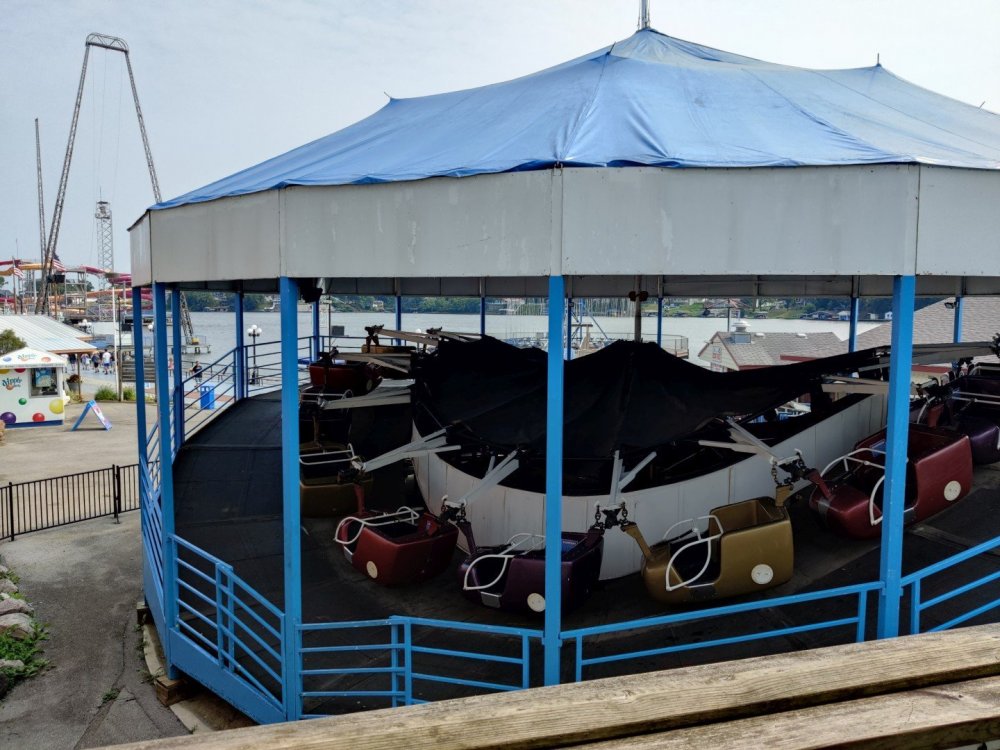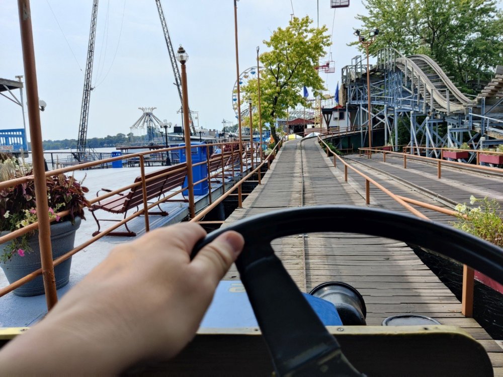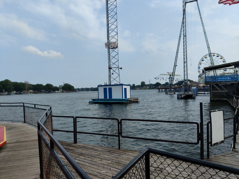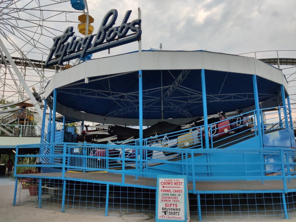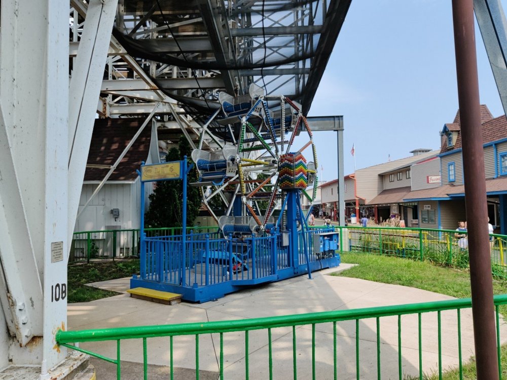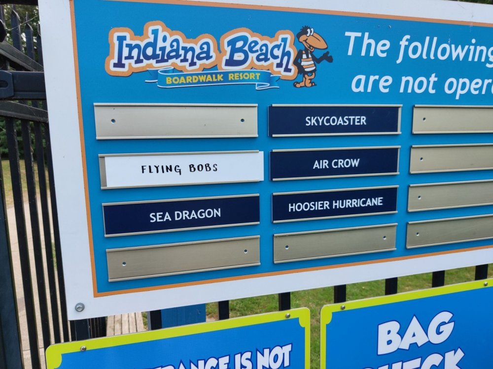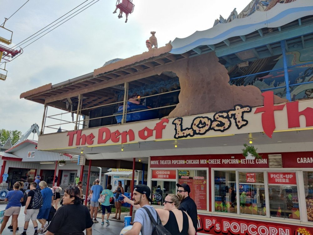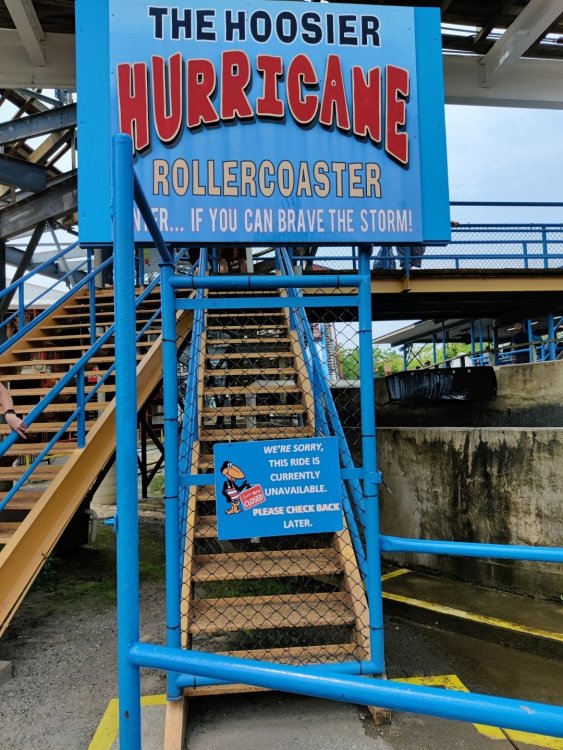 13. Alright, Indiana Beach! So, I'm looking past the flying bobs out over the water, at the jetskis darting around the bigger boats. To one side, there's the bang of an old dark ride car coming through the crash doors, next to the skull that leers down at the midway, just beneath the multicolored chairlift... Wait, I'm supposed to be doing a TR on Indiana Beach, not going on about childhood memories of Rocky Point. I don't know how many people, if anyone, around this place remember Rocky Point Park, and given that they're both small parks, there probably isn't a big cross section of people who've been to both it and Indiana Beach, but Rocky Point was a small park in Warwick RI, the second oldest running amusement park in the US, until it closed in 1996 after the board of directors embezzled all of its money away. Rocky Point was one of the best parts of my childhood, it's almost solely responsible for my being such a fan of amusement parks, and I have so many memories of it. Indiana Beach ended up being something unexpectedly special for me because of how much it brought those memories back, more than any park I've been to since Rocky Point closed down. It looks so much the same, right on the water even if it's a lake instead of the ocean, they use the same simple old style park decor, even the same colors, it shares so many of the same rides, they run the rides the same way...Indiana Beach was like going back in a time a quarter of a century for me. But you're here for the photos and all. So, the day didn't start off looking like it was going to be particularly good that morning. In fact, the day didn't start out looking like I was going to even make it to an amusement park at all. I was seriously doubting my GPS right up until I saw the entrance to the park. If you've been to Indiana Beach, you probably know what I mean; if not, well... Thiiiiiis is what it looks like 30 miles from the park. Oh look, corn. ...And 20 miles from the park... ...and ten miles from the park... ...Five miles from the park, and we still have corn... And this is less than a mile from the park. I don't know about you but I was growing a bit concerned at this point. Just beyond those trees in the distance though, it turns out Indiana is hiding a lovely lakeside resort area. Huh. Unfortunately a fair number of rides weren't running that day, including the park's biggest coaster, and their flyers. A bit disappointing. The entrance to the park is picturesque, though, nearly cinematic with how it appears from nowhere, in the middle of these fields... ...and over a big, swinging and bouncing suspension bridge. The park isn't quite on an island, connected to the rest of the shore at the far end, but you could be forgiven for missing that from here, and this is quite a way to head to the main gate. I'd gotten an early start and got through the gate while most of the park was still waking up; the skyride wasn't running yet. It might have been nice to get the layout of the park from the air before anything else, but there would be time for this later. Like so much else at this park, the multicolored, open air chairlift style ride across the midway immediately brought back memories for me. As did the Flying Bobs down near the water. I always love these rides but this was on the "not running" list for the day. Too bad. The ferris wheel did run, but not quite yet. I forgot to get back to it later, and wish I had; it probably would have been a nice view down by the water. Not even down the entrance ramp into the park itself and they're already trying to make me hungry. Apparently these "pronto pups" aren't actually corn dogs but a sort of pancake battered dog that predates normal corn dogs? Meant to try them but didn't. Only a few people in the park so far, and the first rides just starting up along the midway. I've never seen a view quite like this at a park before; it's not quite like any boardwalk I've been to; halfway between the craziness of most of them and the more laid back classic feel of, dare I go as far as say Knoebels? I noticed a few little projects like this, with new bricks and materials going in, scattered around the park. From what I've heard the park's previous owners didn't take particularly good care of it, but the current one seems to be putting some work into getting things back in shape. Some parts of it still look a little dingy now, though not terribly so, but I'm curious to see how it'll look in a year or two now. No Wave Swinger at this park, but a classic Chance Yo-Yo instead. I don't know if I can really say I like the Yo-Yo better, but it's comparatively rare enough to be much more exciting to see one. Also one of the first "adult" rides I ever got on at Rocky Point... This one hadn't opened yet but would soon. Lost Coaster of Superstition Mountain was running, and I could barely stop myself from sprinting to it. It had been ages since I'd seen the first pictures and video of that bizarre coaster, and it felt sort of surreal that I was actually going to get on it, especially after hearing about IB's "closing forever." Pretty much everyone already in the park was in line here, and with the coaster's rather pitiful capacity it was a good 45 minute wait. I didn't really mind, given that it was the last 45 minutes of a decade plus long wait. The skyride started up while I was waiting here. I was going to have to get that view of the park at some point! Almost there! So, Lost Coaster of Superstition mountain is...it's really difficult to think of a word other than "unique." The hydraulic vertical lift is definitely not something I've seen before. Neither are the cars, which are a bit cramped but reasonably comfortable, even riding backwards like I ended up. The ride is deceptive though; it's not big and it doesn't hit any real high speeds but it feels a lot faster riding it. The twisty, bumpy course throws you around quite a lot as it winds around and inside the mountain, especially when you can't s