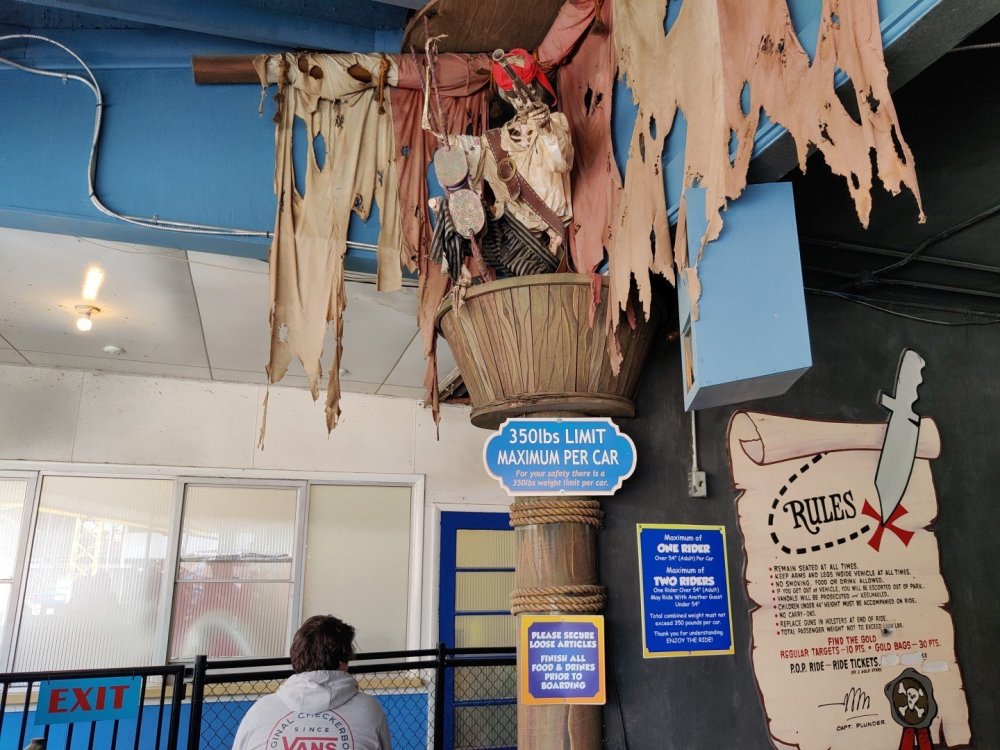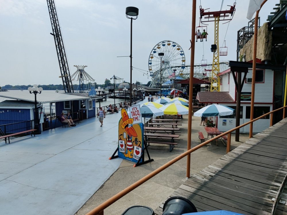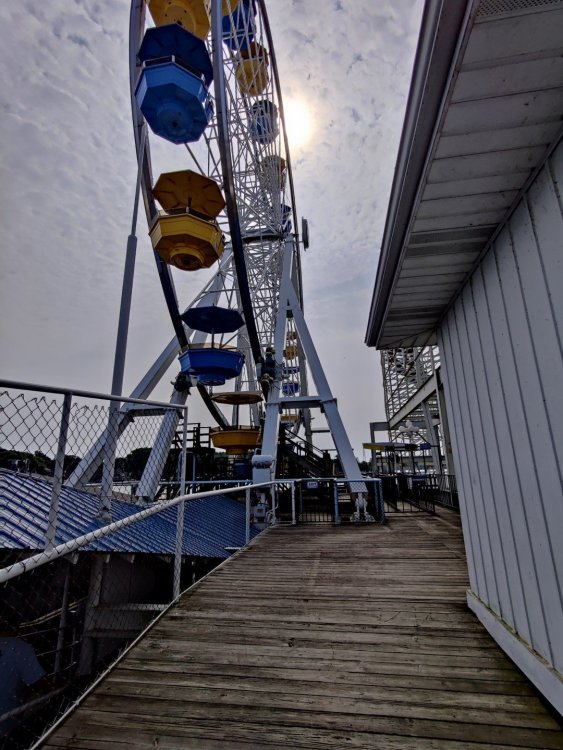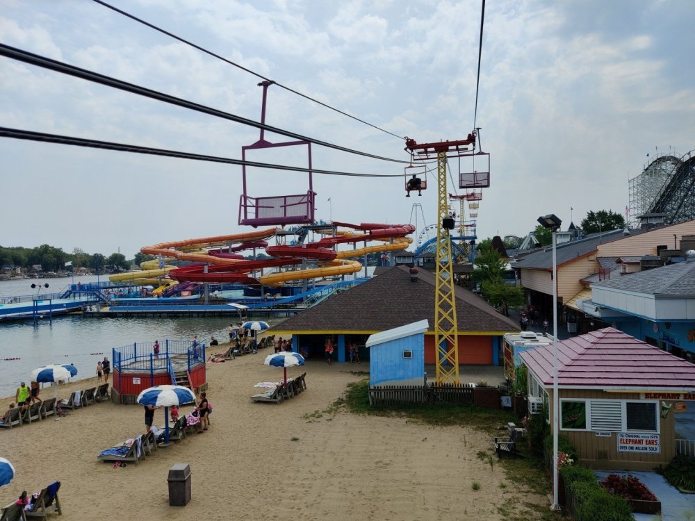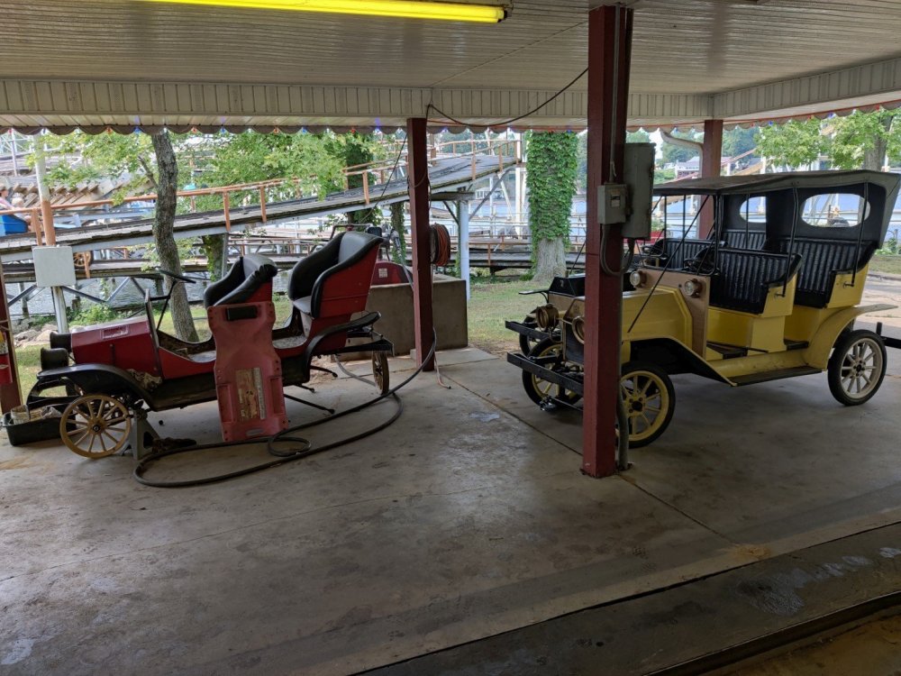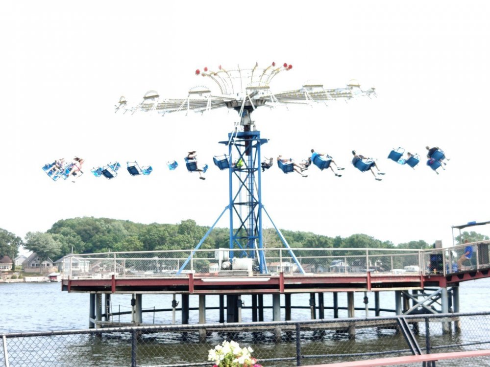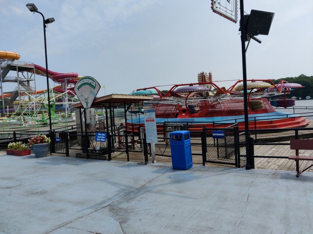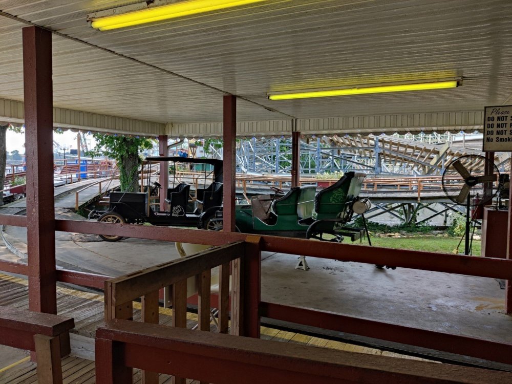 13. Alright, Indiana Beach! So, I'm looking past the flying bobs out over the water, at the jetskis darting around the bigger boats. To one side, there's the bang of an old dark ride car coming through the crash doors, next to the skull that leers down at the midway, just beneath the multicolored chairlift... Wait, I'm supposed to be doing a TR on Indiana Beach, not going on about childhood memories of Rocky Point. I don't know how many people, if anyone, around this place remember Rocky Point Park, and given that they're both small parks, there probably isn't a big cross section of people who've been to both it and Indiana Beach, but Rocky Point was a small park in Warwick RI, the second oldest running amusement park in the US, until it closed in 1996 after the board of directors embezzled all of its money away. Rocky Point was one of the best parts of my childhood, it's almost solely responsible for my being such a fan of amusement parks, and I have so many memories of it. Indiana Beach ended up being something unexpectedly special for me because of how much it brought those memories back, more than any park I've been to since Rocky Point closed down. It looks so much the same, right on the water even if it's a lake instead of the ocean, they use the same simple old style park decor, even the same colors, it shares so many of the same rides, they run the rides the same way...Indiana Beach was like going back in a time a quarter of a century for me. But you're here for the photos and all. So, the day didn't start off looking like it was going to be particularly good that morning. In fact, the day didn't start out looking like I was going to even make it to an amusement park at all. I was seriously doubting my GPS right up until I saw the entrance to the park. If you've been to Indiana Beach, you probably know what I mean; if not, well... Thiiiiiis is what it looks like 30 miles from the park. Oh look, corn. ...And 20 miles from the park... ...and ten miles from the park... ...Five miles from the park, and we still have corn... And this is less than a mile from the park. I don't know about you but I was growing a bit concerned at this point. Just beyond those trees in the distance though, it turns out Indiana is hiding a lovely lakeside resort area. Huh. Unfortunately a fair number of rides weren't running that day, including the park's biggest coaster, and their flyers. A bit disappointing. The entrance to the park is picturesque, though, nearly cinematic with how it appears from nowhere, in the middle of these fields... ...and over a big, swinging and bouncing suspension bridge. The park isn't quite on an island, connected to the rest of the shore at the far end, but you could be forgiven for missing that from here, and this is quite a way to head to the main gate. I'd gotten an early start and got through the gate while most of the park was still waking up; the skyride wasn't running yet. It might have been nice to get the layout of the park from the air before anything else, but there would be time for this later. Like so much else at this park, the multicolored, open air chairlift style ride across the midway immediately brought back memories for me. As did the Flying Bobs down near the water. I always love these rides but this was on the "not running" list for the day. Too bad. The ferris wheel did run, but not quite yet. I forgot to get back to it later, and wish I had; it probably would have been a nice view down by the water. Not even down the entrance ramp into the park itself and they're already trying to make me hungry. Apparently these "pronto pups" aren't actually corn dogs but a sort of pancake battered dog that predates normal corn dogs? Meant to try them but didn't. Only a few people in the park so far, and the first rides just starting up along the midway. I've never seen a view quite like this at a park before; it's not quite like any boardwalk I've been to; halfway between the craziness of most of them and the more laid back classic feel of, dare I go as far as say Knoebels? I noticed a few little projects like this, with new bricks and materials going in, scattered around the park. From what I've heard the park's previous owners didn't take particularly good care of it, but the current one seems to be putting some work into getting things back in shape. Some parts of it still look a little dingy now, though not terribly so, but I'm curious to see how it'll look in a year or two now. No Wave Swinger at this park, but a classic Chance Yo-Yo instead. I don't know if I can really say I like the Yo-Yo better, but it's comparatively rare enough to be much more exciting to see one. Also one of the first "adult" rides I ever got on at Rocky Point... This one hadn't opened yet but would soon. Lost Coaster of Superstition Mountain was running, and I could barely stop myself from sprinting to it. It had been ages since I'd seen the first pictures and video of that bizarre coaster, and it felt sort of surreal that I was actually going to get on it, especially after hearing about IB's "closing forever." Pretty much everyone already in the park was in line here, and with the coaster's rather pitiful capacity it was a good 45 minute wait. I didn't really mind, given that it was the last 45 minutes of a decade plus long wait. The skyride started up while I was waiting here. I was going to have to get that view of the park at some point! Almost there! So, Lost Coaster of Superstition mountain is...it's really difficult to think of a word other than "unique." The hydraulic vertical lift is definitely not something I've seen before. Neither are the cars, which are a bit cramped but reasonably comfortable, even riding backwards like I ended up. The ride is deceptive though; it's not big and it doesn't hit any real high speeds but it feels a lot faster riding it. The twisty, bumpy course throws you around quite a lot as it winds around and inside the mountain, especially when you can't s