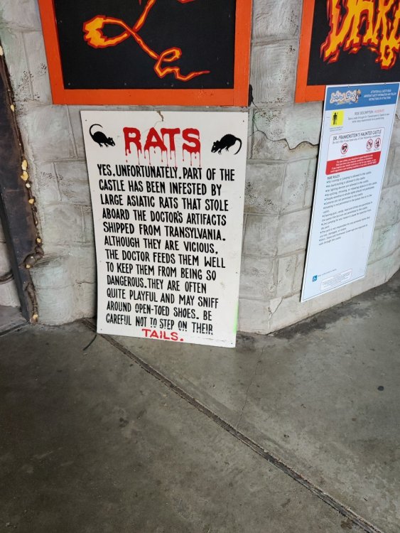 7. Monster Stomp was a decent enough show (though I'm not really into the whole song and dance thing, they did have a cool "knife" segment. The bars seemed really nicely and heavily themed, though I only looked in from the outside. I didn't have anything to drink. The actors did a pretty good job, but I only found two of the four houses to be decently done set-wise. The fact that they don't do Conga Lines like Horror Nights does always give SEAS a step up in scare factor. Always a positive. I had high hopes for the Wild Arctic one but that ended up being the worst. The scare zones were very basic, but again, I think there are more scares at SeaWorld than say HHN. The makeup was pretty impressive in the scare zones too. Set-wise was very very eh. Not usually one to complain, but the night was a bit tainted and very frustrating by some of the guest services staff and the staff at the front of ALL the houses who were completely clueless on procedures that were told to us, so my group had some major ADA issues, but they did give us tickets for next year to try and make things right. They would have let us go again this year but we are no longer local and wouldn't have an opportunity to use the tickets. Hopefully nobody else has to go through what we went through. I understand it was their second day and have kinks to work out, but it was a complete shitshow and I feel bad for anyone who needed special accommodations. Overall I think Tampa is a much better value, but Seaworld was decent enough to warrant a visit. Just make sure you understand the cheese factor going into it and the fairly generic themes in the houses, and you will have a good time. Don't expect Horror Nights. A much more "budget-ty" haunt. Which is not surprising, lol.
