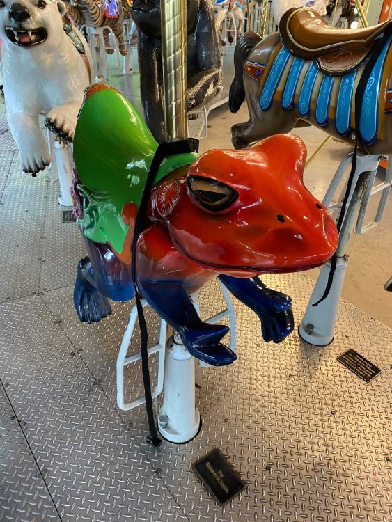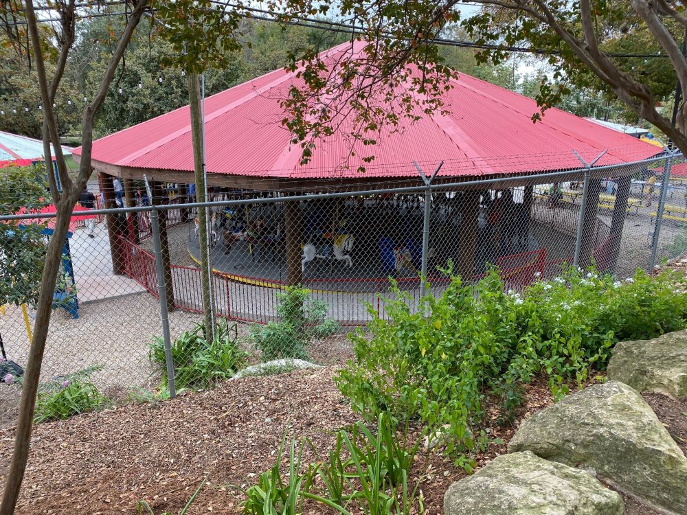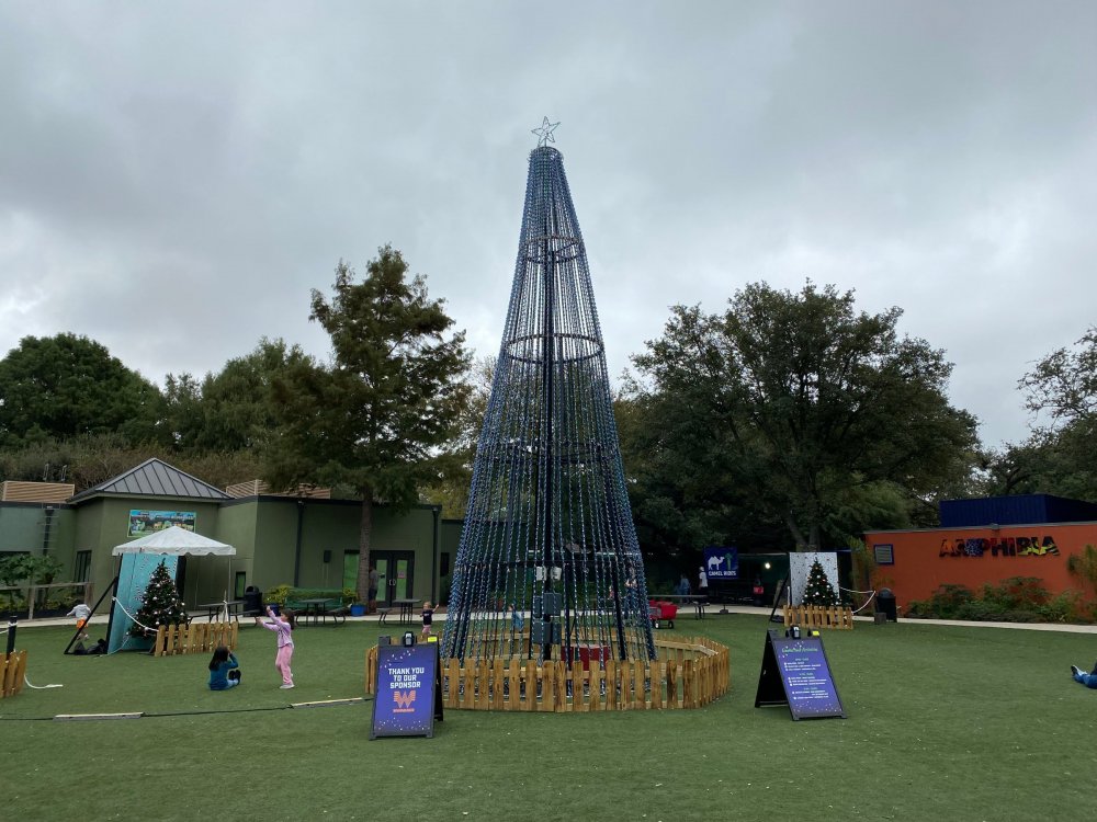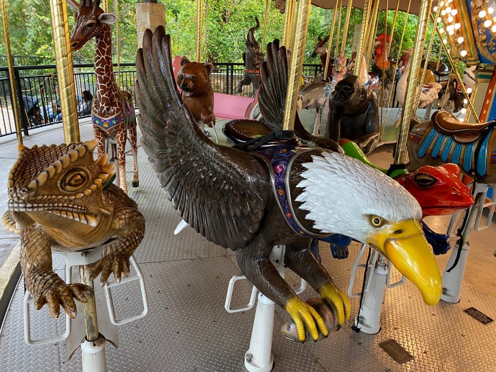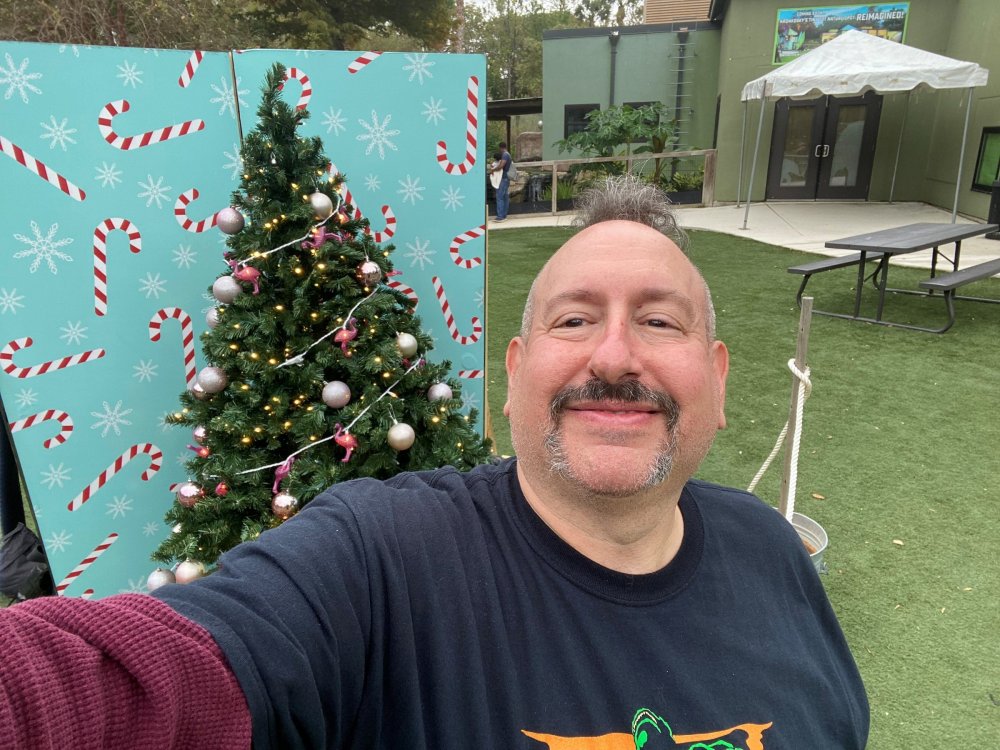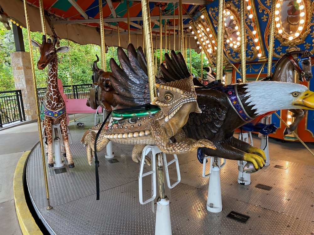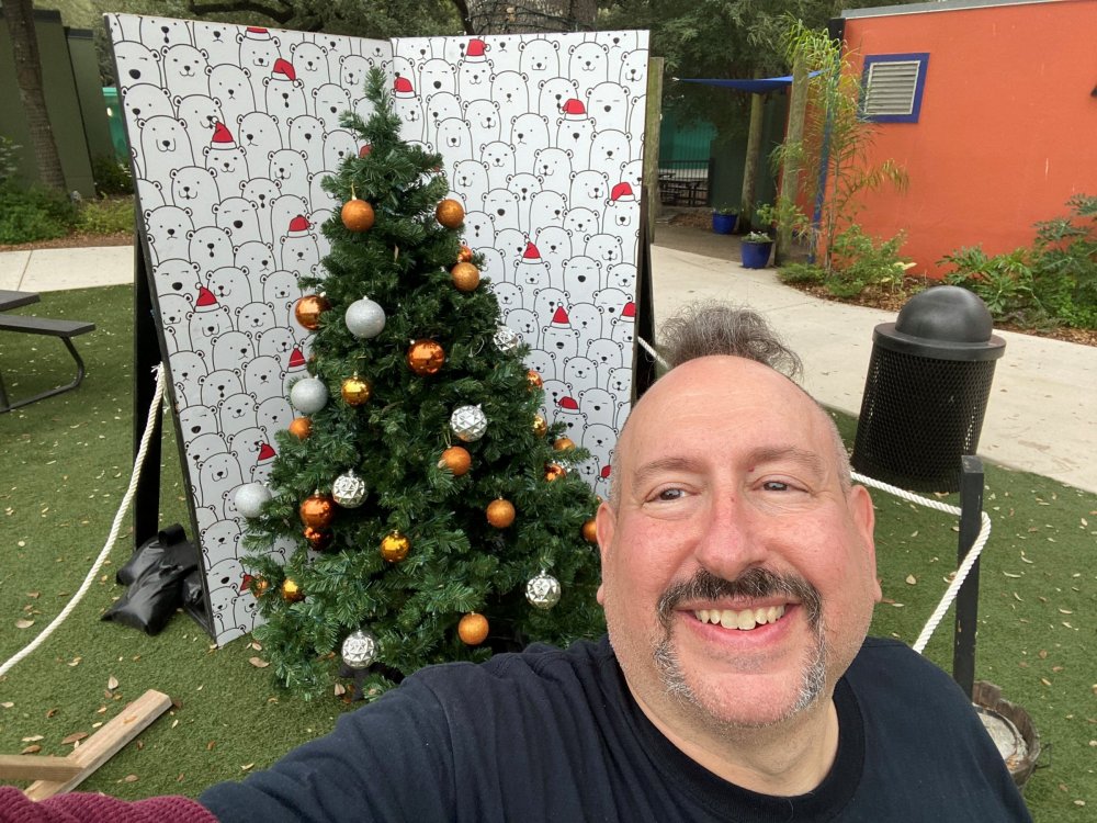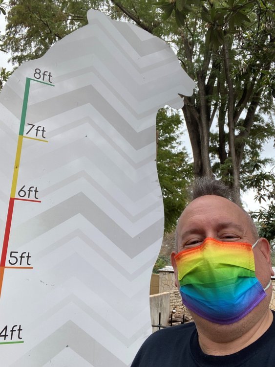 More zoo.. . still in Africa section: the Elephants were all out, and were pretty active today too and just up the pathway? FEEEEEED MEEEEEEEEE the San Antonio Zoo has gotten in on the trend of places charging for every possible extra. . so yeah, you can feed the Elephants, or fish, or Birds, or Giraffes (if you pay extra) or walk with the flamingos, or kangaroos, or take behind the scenes tours. . if you pay. i TOTALLY get that they are raising additional cash this way, and good on them. but is sucks that things like the Giraffe Enclosure - that used to let you get up pretty close to that barrier, no longer lets you do that - unless you want to pay to feed them lettuce. oh well, still got some pretty good pictures. the Giraffe Enclosure also has Zebras and some Emus in it. . some of those guys just don't wanna deal with people, and preferred to hang out towards the back of the enclosure eating the provided food, instead of having to intermingle with HUMANS to get it: the Emu was hiding underneath the platform. .but can still see them from certain angles More of that really nice artwork that's around the San Antonio Zoo.. this one just outside the Rhino enclosure who were also all out and about. . .and eating. They must have just done a feeding after the zoo opened. these were put up for the Zoo Lights. . so temporary art. but love the signs warning the kids to keep off "Santa's Watching". . . . LOL and a Rhino that also lights up Warthogs recall I noted that one can really tell where the "old zoo" starts and the "new zoo" ends? yeah. . getting over into the older zoo section now with the old skool enclosures: for some reason, this display wasn't near the Giraffes. .but was in front of the Lion enclosure. I thought Lions didn't tend to go after Giraffes since they are so big? the Giant Anteater was actually out. think it's the first time I've ever seen him! I saw these suckers in Japan. .they are MEAN. and they look mean! just look at those claws. amusingly. . as so many of the animals that are never active were active today? the big cats - that usually are prowling - were sleeping, and kinda hidden, today. here's the Lions: and here's the Tiger - hanging out in the hammock even the Kangaroos were kinda lazy this afternoon. tho the Porcupines were quite active yeah. . older section of the zoos.. but at least this enclosure seems to be getting a bit of love. (some of them have sat empty for years, and one of them even just has a giant tree in it) how does *this* bear measure up? hahahaha. .that sad enclosure that I just mentioned that only has a tree in it? they "festive-ed" it up, by putting lights on it, and a snowman! HA! again, the enclosures in the "older" section of the zoo, can be a little bit depressing. but I guess Fish (and birds) that tend to be over in this section, don't really care. Mean. . . so mean. and just waiting for a small child to fall lin. another "repurposed" empty enclosure. HO HO HO way way back at the very end of a dead end. . is the Kangaroo encounter (no feeding tho). the zoo put this big Kanga at the end of the main path to at least draw people over, so they would see what's over there. it worked for me. . even if I didn't bother with the paid "Encounter" [Kennywood] Turrrrrrrr-tullllllllllle [/Kennywood] wow. . BOTH Eagles were out. one perched: and one on the ground eating what looked like a dead mouse: moving out of the older section back into the newer areas as I make my way around the zoo. . ther really are some lovely areas. think this is an older part still tho.. as it's not ADA compliant, and several sections of this path were closed-off and way overgrown. but you can get some nice pics from this "bridge" another one of those huge "I'm not scared of humans" Black Squirrels I'd held it off long enough.. time for a ride on the Zoo Carousel. Strangely, NOT called the "Conservation Carousel" here. I wonder if the National Zoo Association knows they broke precedent? at only $3 a ride, it's a fairly good deal. I had really wanted to ride the Eagle. . but once I got to it, I quickly realized that any adult is gonna have an issue. . as the way they did the wings? there's no place for one's legs to go! so I settled for the Tree Frog next to the Eagle. Whee! It really is quite lovely. . if not the greatest Carousel I've ever been on. Still. .it's a nice one. and a *really* nice job on the animals/reptiles on it. it was getting past 2pm by this point, and SFFT had opened at 2. . so I headed over to the last sections of the Zoo I'd not yet been to - mainly Amphibia, for the frogs/creatures. and they had this area all done up for the Zoo Lights with a few displays up. " so I stopped in front of a few of the decorated trees/backgrounds that I liked for some selfies. it was so quiet over here, I took my mask off for the pics. (this area is really sorta hidden off the main pathway around the zoo, since the Kiddie Amusement area cuts it off from the front gates of the zoo) as noted. .it's really sorta hidden back here. So imagine my surprise when I realized that over here is where they had put Santa and "Twinkle Penguin the Elf" for photos. Twinkle saw me taking pics and called/waved me over to them. She said "So what would you like for Christmas?" and I responded: "Well, I'm Jewish, and Chanukah starts soon. . so what I'd really like for Chanukah is a free photo with you and Santa on my phone, instead of paying for a picture" She and Santa both laughed. . and: Ta-Da! there was no one else around, so I hung out and talked to them for a few minutes - she liked my shirt, and my hair.. and we just BSed until some families showed up to purchase photos - at which point I took a quick pic of them, and went on into the Amphibia display. not sure what kind of sea-snakes these are. .but they freaked me out. NOPE Big, ol, fat, frog. there's a nice play area out back over here with some lovely mosaics too. Some small animal enclosures. .but I think they might rent this area out 