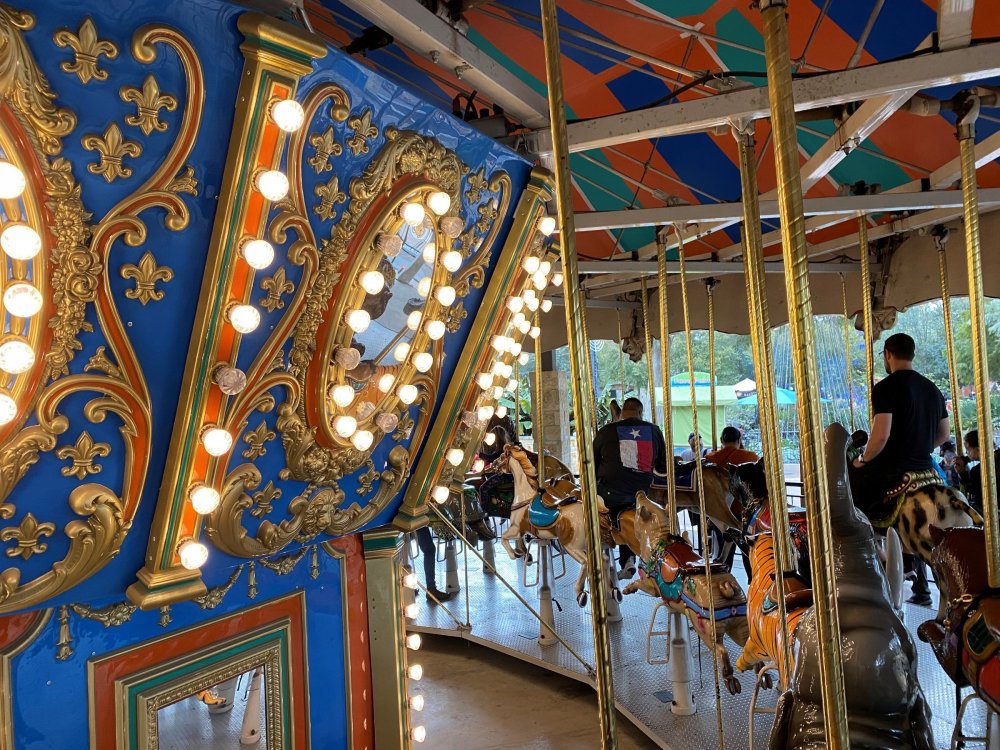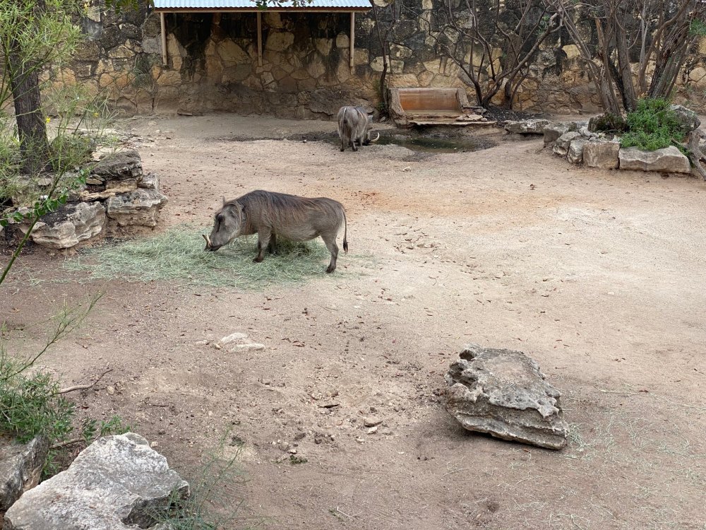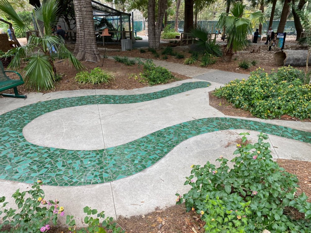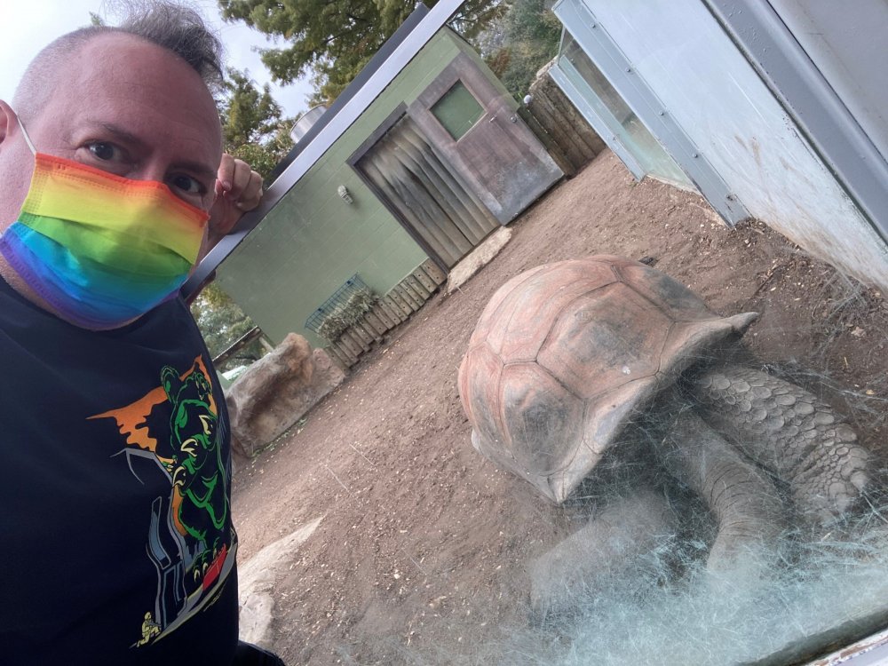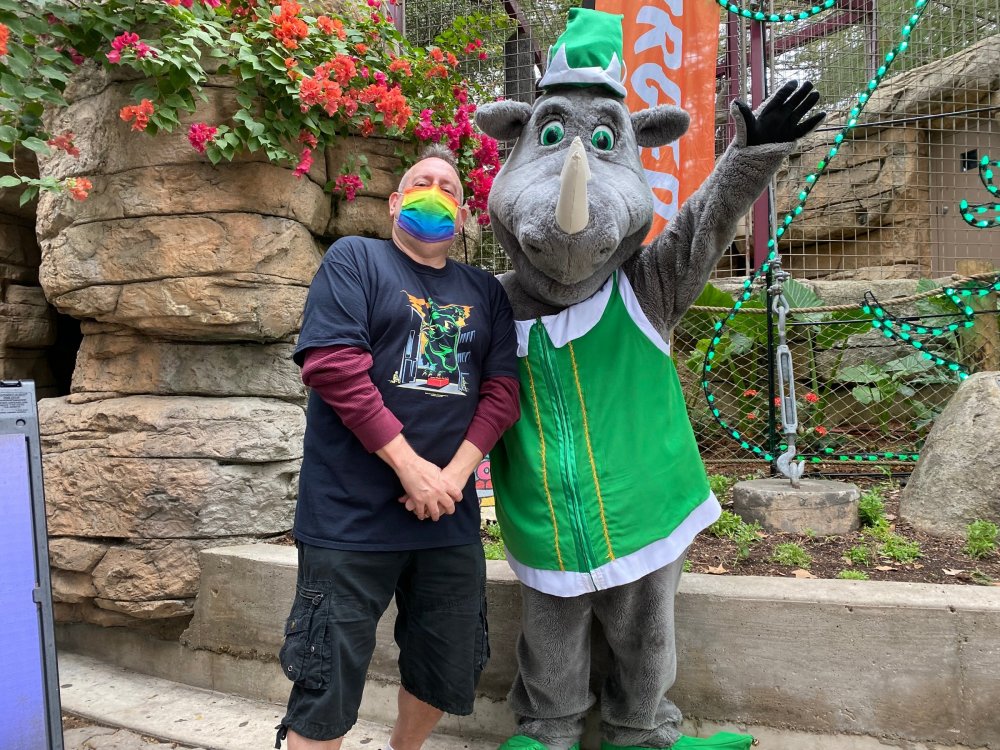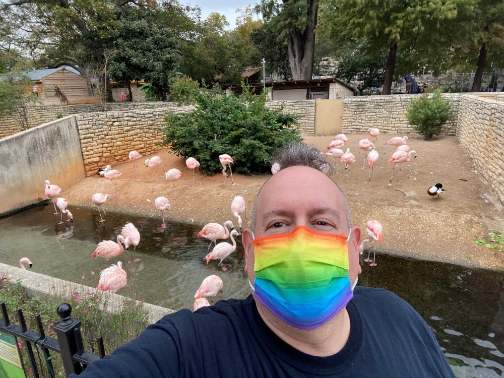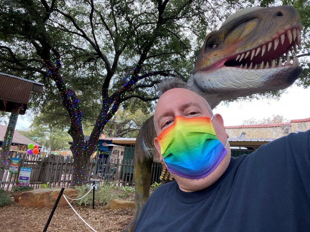 More zoo.. . still in Africa section: the Elephants were all out, and were pretty active today too and just up the pathway? FEEEEEED MEEEEEEEEE the San Antonio Zoo has gotten in on the trend of places charging for every possible extra. . so yeah, you can feed the Elephants, or fish, or Birds, or Giraffes (if you pay extra) or walk with the flamingos, or kangaroos, or take behind the scenes tours. . if you pay. i TOTALLY get that they are raising additional cash this way, and good on them. but is sucks that things like the Giraffe Enclosure - that used to let you get up pretty close to that barrier, no longer lets you do that - unless you want to pay to feed them lettuce. oh well, still got some pretty good pictures. the Giraffe Enclosure also has Zebras and some Emus in it. . some of those guys just don't wanna deal with people, and preferred to hang out towards the back of the enclosure eating the provided food, instead of having to intermingle with HUMANS to get it: the Emu was hiding underneath the platform. .but can still see them from certain angles More of that really nice artwork that's around the San Antonio Zoo.. this one just outside the Rhino enclosure who were also all out and about. . .and eating. They must have just done a feeding after the zoo opened. these were put up for the Zoo Lights. . so temporary art. but love the signs warning the kids to keep off "Santa's Watching". . . . LOL and a Rhino that also lights up Warthogs recall I noted that one can really tell where the "old zoo" starts and the "new zoo" ends? yeah. . getting over into the older zoo section now with the old skool enclosures: for some reason, this display wasn't near the Giraffes. .but was in front of the Lion enclosure. I thought Lions didn't tend to go after Giraffes since they are so big? the Giant Anteater was actually out. think it's the first time I've ever seen him! I saw these suckers in Japan. .they are MEAN. and they look mean! just look at those claws. amusingly. . as so many of the animals that are never active were active today? the big cats - that usually are prowling - were sleeping, and kinda hidden, today. here's the Lions: and here's the Tiger - hanging out in the hammock even the Kangaroos were kinda lazy this afternoon. tho the Porcupines were quite active yeah. . older section of the zoos.. but at least this enclosure seems to be getting a bit of love. (some of them have sat empty for years, and one of them even just has a giant tree in it) how does *this* bear measure up? hahahaha. .that sad enclosure that I just mentioned that only has a tree in it? they "festive-ed" it up, by putting lights on it, and a snowman! HA! again, the enclosures in the "older" section of the zoo, can be a little bit depressing. but I guess Fish (and birds) that tend to be over in this section, don't really care. Mean. . . so mean. and just waiting for a small child to fall lin. another "repurposed" empty enclosure. HO HO HO way way back at the very end of a dead end. . is the Kangaroo encounter (no feeding tho). the zoo put this big Kanga at the end of the main path to at least draw people over, so they would see what's over there. it worked for me. . even if I didn't bother with the paid "Encounter" [Kennywood] Turrrrrrrr-tullllllllllle [/Kennywood] wow. . BOTH Eagles were out. one perched: and one on the ground eating what looked like a dead mouse: moving out of the older section back into the newer areas as I make my way around the zoo. . ther really are some lovely areas. think this is an older part still tho.. as it's not ADA compliant, and several sections of this path were closed-off and way overgrown. but you can get some nice pics from this "bridge" another one of those huge "I'm not scared of humans" Black Squirrels I'd held it off long enough.. time for a ride on the Zoo Carousel. Strangely, NOT called the "Conservation Carousel" here. I wonder if the National Zoo Association knows they broke precedent? at only $3 a ride, it's a fairly good deal. I had really wanted to ride the Eagle. . but once I got to it, I quickly realized that any adult is gonna have an issue. . as the way they did the wings? there's no place for one's legs to go! so I settled for the Tree Frog next to the Eagle. Whee! It really is quite lovely. . if not the greatest Carousel I've ever been on. Still. .it's a nice one. and a *really* nice job on the animals/reptiles on it. it was getting past 2pm by this point, and SFFT had opened at 2. . so I headed over to the last sections of the Zoo I'd not yet been to - mainly Amphibia, for the frogs/creatures. and they had this area all done up for the Zoo Lights with a few displays up. " so I stopped in front of a few of the decorated trees/backgrounds that I liked for some selfies. it was so quiet over here, I took my mask off for the pics. (this area is really sorta hidden off the main pathway around the zoo, since the Kiddie Amusement area cuts it off from the front gates of the zoo) as noted. .it's really sorta hidden back here. So imagine my surprise when I realized that over here is where they had put Santa and "Twinkle Penguin the Elf" for photos. Twinkle saw me taking pics and called/waved me over to them. She said "So what would you like for Christmas?" and I responded: "Well, I'm Jewish, and Chanukah starts soon. . so what I'd really like for Chanukah is a free photo with you and Santa on my phone, instead of paying for a picture" She and Santa both laughed. . and: Ta-Da! there was no one else around, so I hung out and talked to them for a few minutes - she liked my shirt, and my hair.. and we just BSed until some families showed up to purchase photos - at which point I took a quick pic of them, and went on into the Amphibia display. not sure what kind of sea-snakes these are. .but they freaked me out. NOPE Big, ol, fat, frog. there's a nice play area out back over here with some lovely mosaics too. Some small animal enclosures. .but I think they might rent this area out 