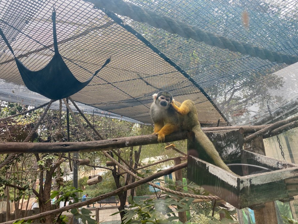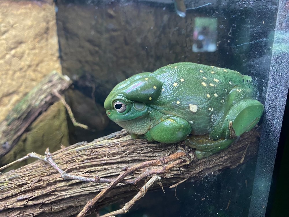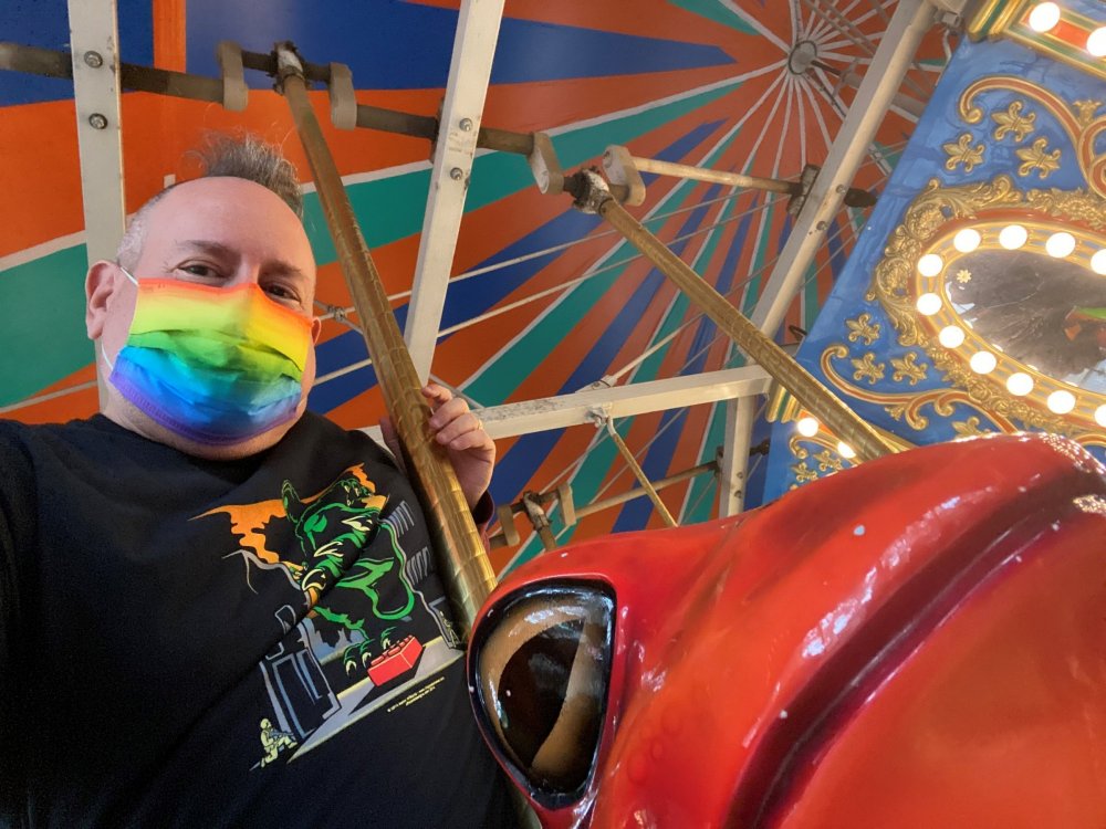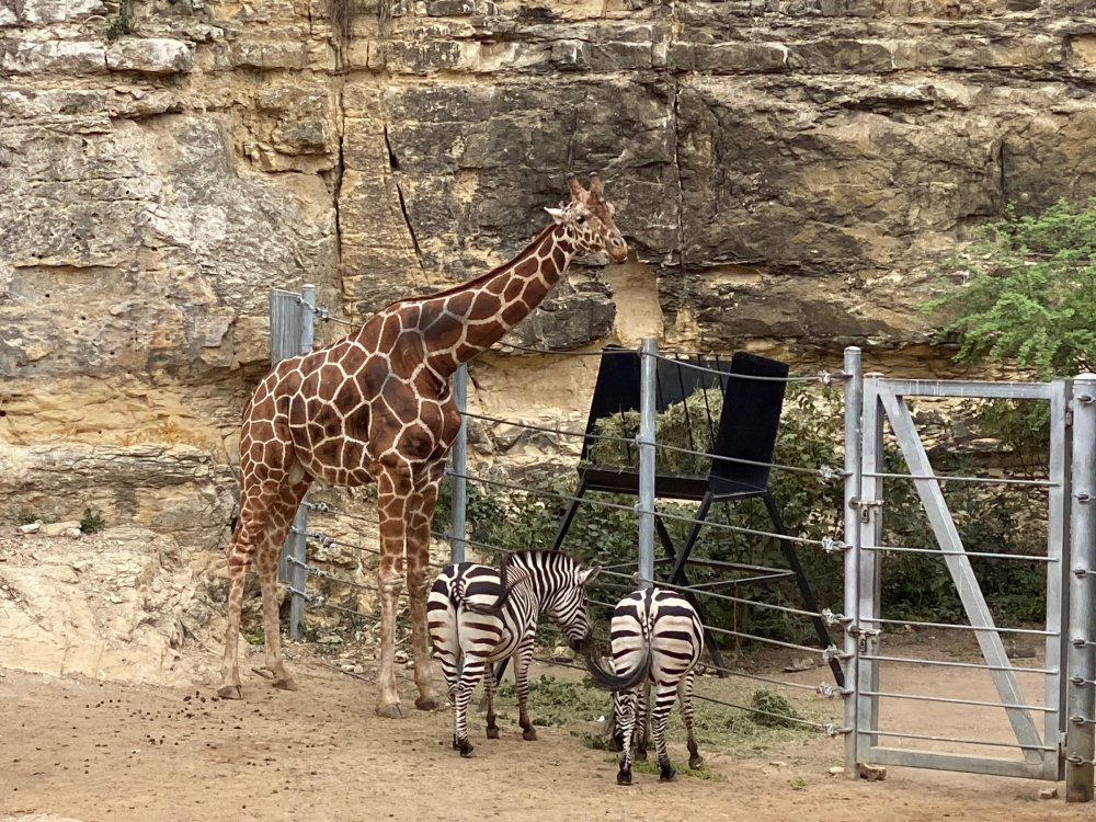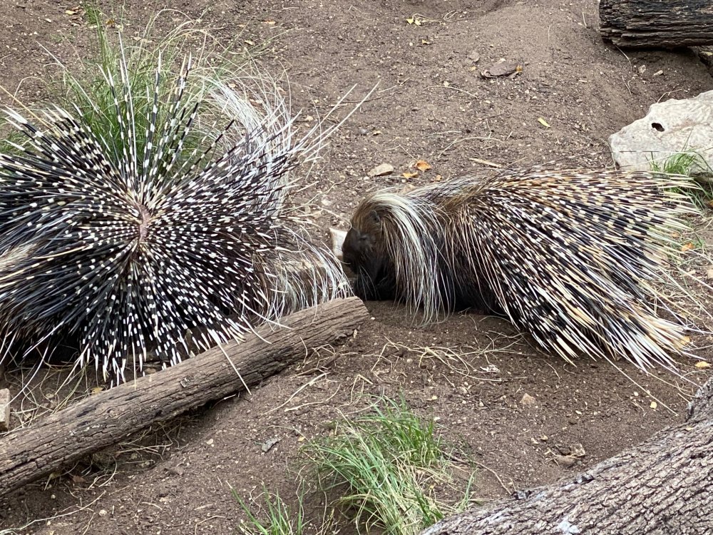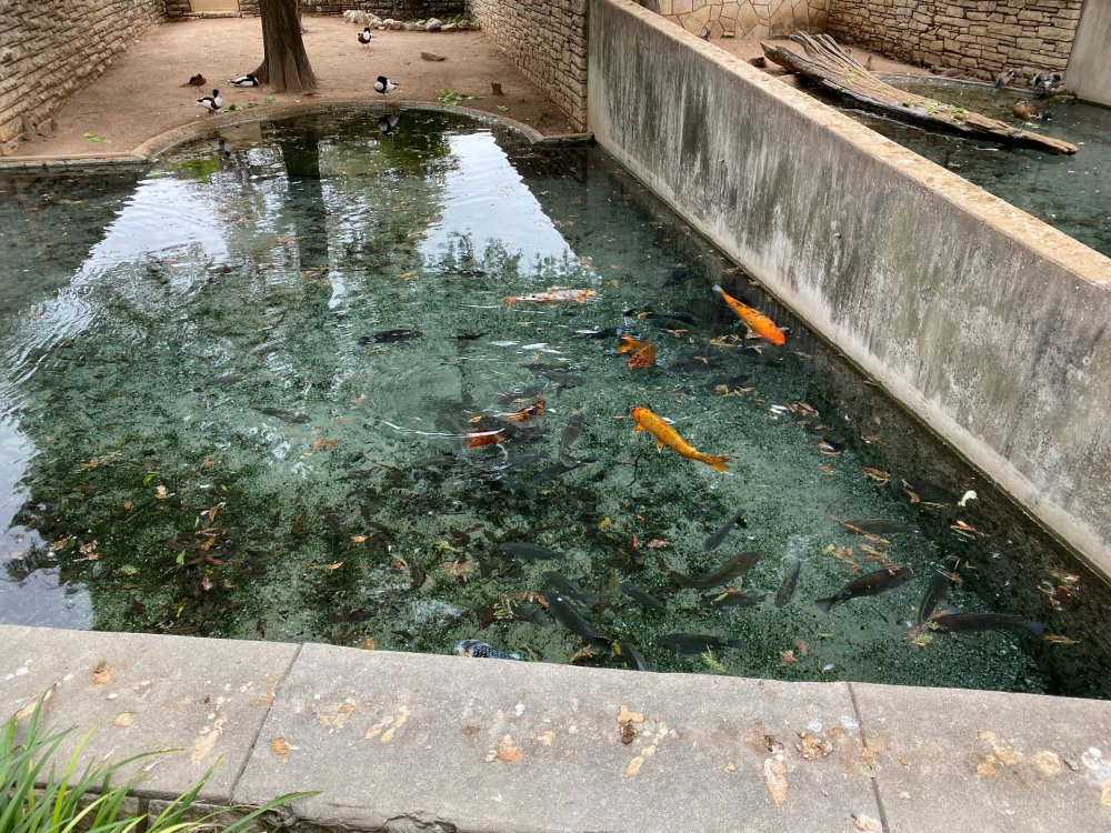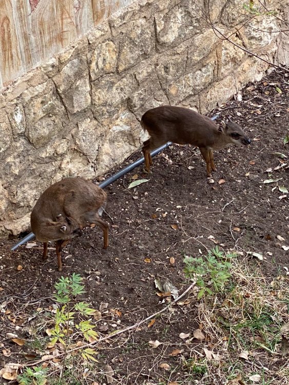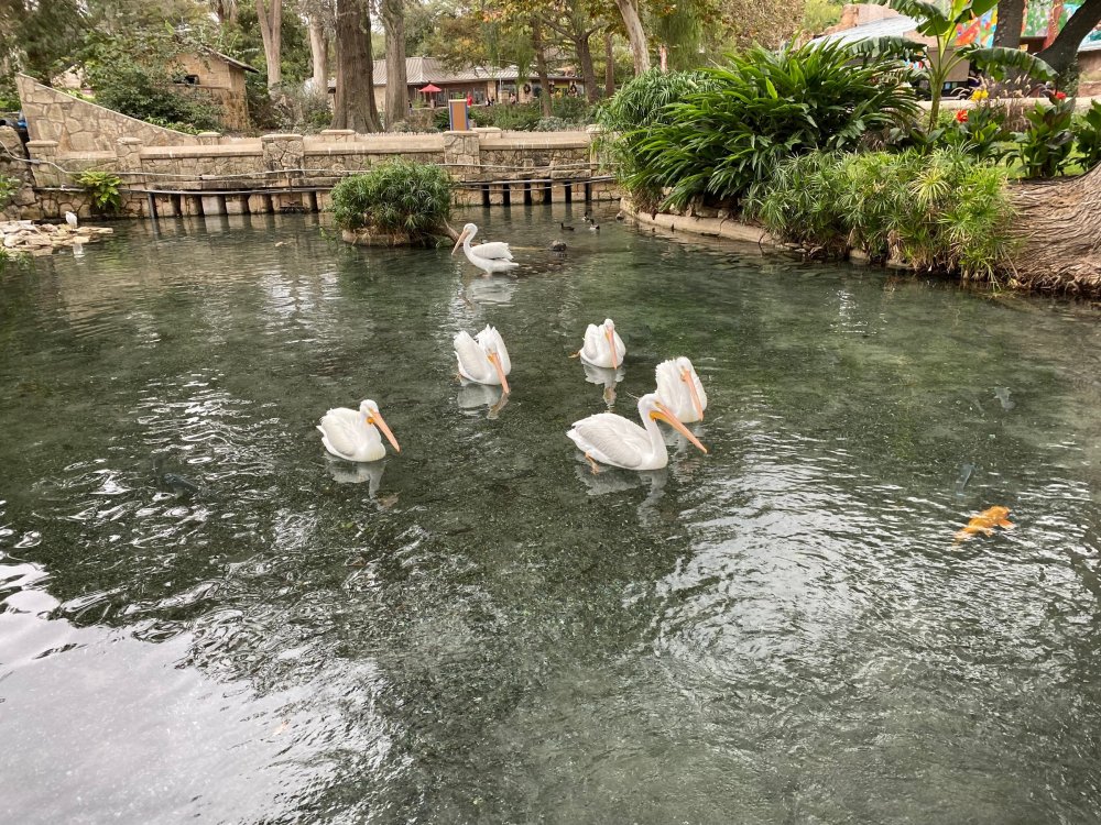 More zoo.. . still in Africa section: the Elephants were all out, and were pretty active today too and just up the pathway? FEEEEEED MEEEEEEEEE the San Antonio Zoo has gotten in on the trend of places charging for every possible extra. . so yeah, you can feed the Elephants, or fish, or Birds, or Giraffes (if you pay extra) or walk with the flamingos, or kangaroos, or take behind the scenes tours. . if you pay. i TOTALLY get that they are raising additional cash this way, and good on them. but is sucks that things like the Giraffe Enclosure - that used to let you get up pretty close to that barrier, no longer lets you do that - unless you want to pay to feed them lettuce. oh well, still got some pretty good pictures. the Giraffe Enclosure also has Zebras and some Emus in it. . some of those guys just don't wanna deal with people, and preferred to hang out towards the back of the enclosure eating the provided food, instead of having to intermingle with HUMANS to get it: the Emu was hiding underneath the platform. .but can still see them from certain angles More of that really nice artwork that's around the San Antonio Zoo.. this one just outside the Rhino enclosure who were also all out and about. . .and eating. They must have just done a feeding after the zoo opened. these were put up for the Zoo Lights. . so temporary art. but love the signs warning the kids to keep off "Santa's Watching". . . . LOL and a Rhino that also lights up Warthogs recall I noted that one can really tell where the "old zoo" starts and the "new zoo" ends? yeah. . getting over into the older zoo section now with the old skool enclosures: for some reason, this display wasn't near the Giraffes. .but was in front of the Lion enclosure. I thought Lions didn't tend to go after Giraffes since they are so big? the Giant Anteater was actually out. think it's the first time I've ever seen him! I saw these suckers in Japan. .they are MEAN. and they look mean! just look at those claws. amusingly. . as so many of the animals that are never active were active today? the big cats - that usually are prowling - were sleeping, and kinda hidden, today. here's the Lions: and here's the Tiger - hanging out in the hammock even the Kangaroos were kinda lazy this afternoon. tho the Porcupines were quite active yeah. . older section of the zoos.. but at least this enclosure seems to be getting a bit of love. (some of them have sat empty for years, and one of them even just has a giant tree in it) how does *this* bear measure up? hahahaha. .that sad enclosure that I just mentioned that only has a tree in it? they "festive-ed" it up, by putting lights on it, and a snowman! HA! again, the enclosures in the "older" section of the zoo, can be a little bit depressing. but I guess Fish (and birds) that tend to be over in this section, don't really care. Mean. . . so mean. and just waiting for a small child to fall lin. another "repurposed" empty enclosure. HO HO HO way way back at the very end of a dead end. . is the Kangaroo encounter (no feeding tho). the zoo put this big Kanga at the end of the main path to at least draw people over, so they would see what's over there. it worked for me. . even if I didn't bother with the paid "Encounter" [Kennywood] Turrrrrrrr-tullllllllllle [/Kennywood] wow. . BOTH Eagles were out. one perched: and one on the ground eating what looked like a dead mouse: moving out of the older section back into the newer areas as I make my way around the zoo. . ther really are some lovely areas. think this is an older part still tho.. as it's not ADA compliant, and several sections of this path were closed-off and way overgrown. but you can get some nice pics from this "bridge" another one of those huge "I'm not scared of humans" Black Squirrels I'd held it off long enough.. time for a ride on the Zoo Carousel. Strangely, NOT called the "Conservation Carousel" here. I wonder if the National Zoo Association knows they broke precedent? at only $3 a ride, it's a fairly good deal. I had really wanted to ride the Eagle. . but once I got to it, I quickly realized that any adult is gonna have an issue. . as the way they did the wings? there's no place for one's legs to go! so I settled for the Tree Frog next to the Eagle. Whee! It really is quite lovely. . if not the greatest Carousel I've ever been on. Still. .it's a nice one. and a *really* nice job on the animals/reptiles on it. it was getting past 2pm by this point, and SFFT had opened at 2. . so I headed over to the last sections of the Zoo I'd not yet been to - mainly Amphibia, for the frogs/creatures. and they had this area all done up for the Zoo Lights with a few displays up. " so I stopped in front of a few of the decorated trees/backgrounds that I liked for some selfies. it was so quiet over here, I took my mask off for the pics. (this area is really sorta hidden off the main pathway around the zoo, since the Kiddie Amusement area cuts it off from the front gates of the zoo) as noted. .it's really sorta hidden back here. So imagine my surprise when I realized that over here is where they had put Santa and "Twinkle Penguin the Elf" for photos. Twinkle saw me taking pics and called/waved me over to them. She said "So what would you like for Christmas?" and I responded: "Well, I'm Jewish, and Chanukah starts soon. . so what I'd really like for Chanukah is a free photo with you and Santa on my phone, instead of paying for a picture" She and Santa both laughed. . and: Ta-Da! there was no one else around, so I hung out and talked to them for a few minutes - she liked my shirt, and my hair.. and we just BSed until some families showed up to purchase photos - at which point I took a quick pic of them, and went on into the Amphibia display. not sure what kind of sea-snakes these are. .but they freaked me out. NOPE Big, ol, fat, frog. there's a nice play area out back over here with some lovely mosaics too. Some small animal enclosures. .but I think they might rent this area out 