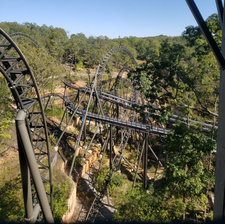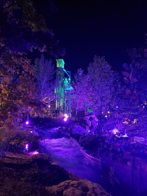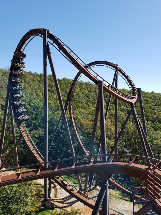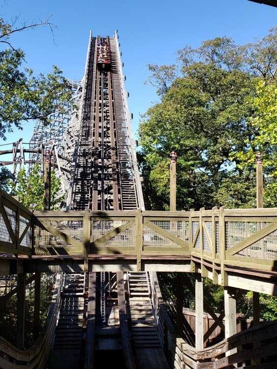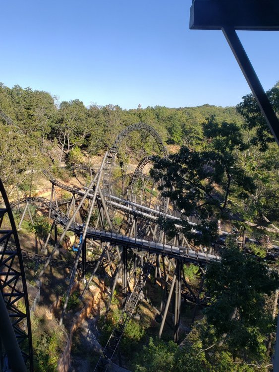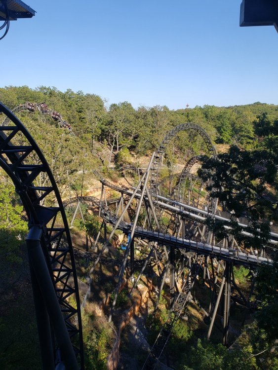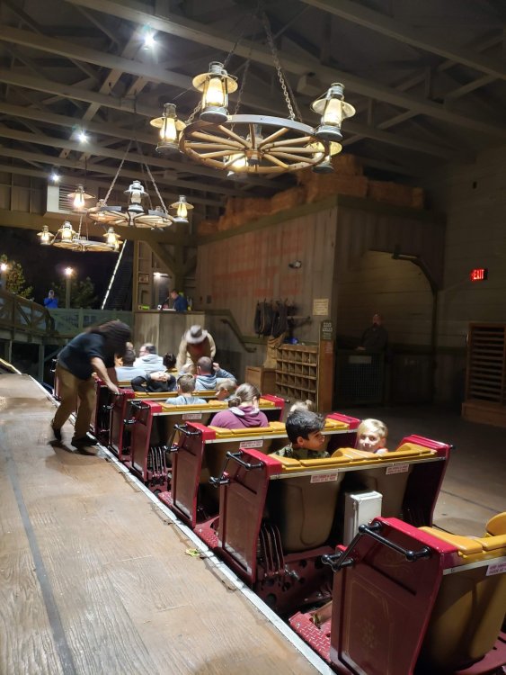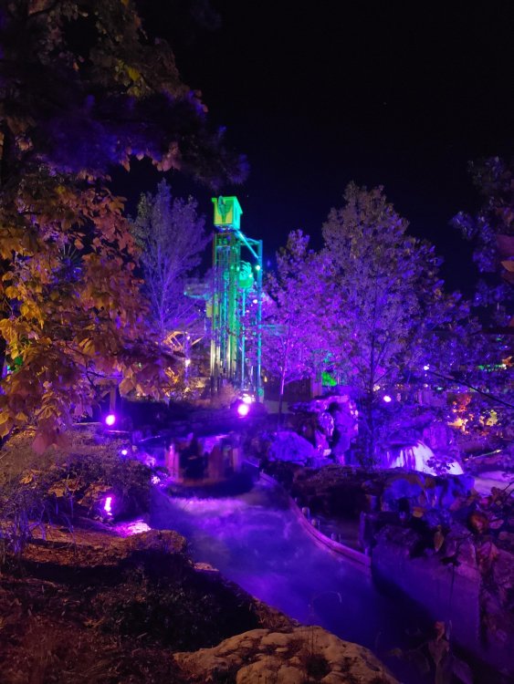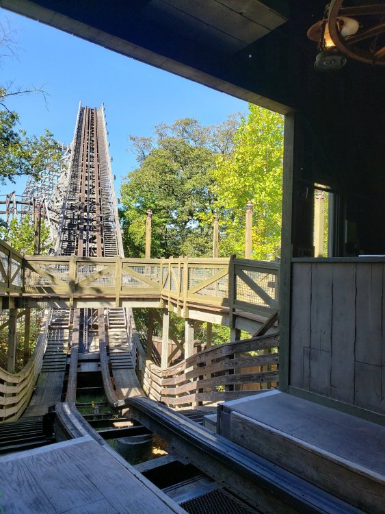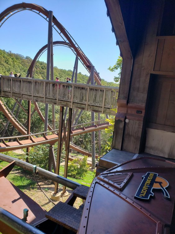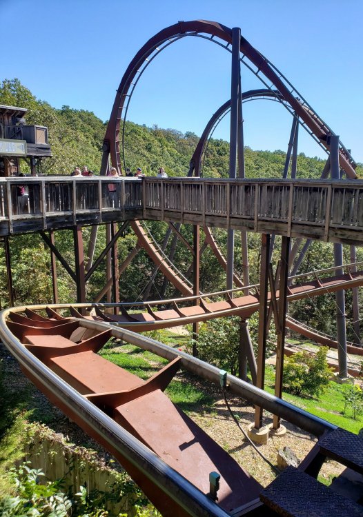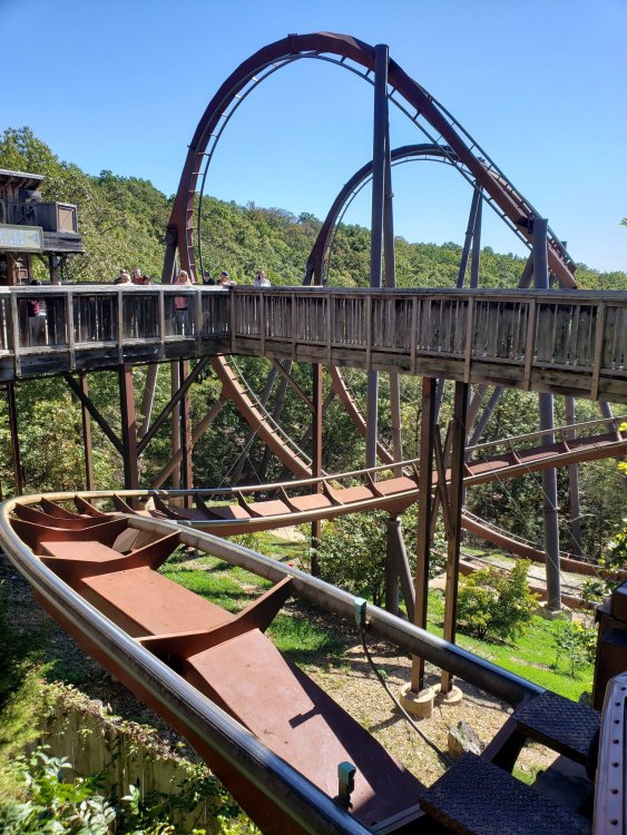 Thanks everyone! I believe it was about a 3.5 hour drive to the 'New England Cottage" I booked through my Chase travel portal. Our group consisted of 4 guys, but Branson seemed to have a lot of cabins/cottages for a good price. If you can book where we stayed - definitely do it! https://bransonsnantucket.com/ The 'cottage' turned out to be a stunning little three bedroom house in this Cape Cod themed gated community on a hill overlooking one of the huge lakes and it was only a 5 minute drive to SDC. The funny thing is that it's mainly a time share - so I guess they have some inventory that if unsold/booked goes out to travel sites. When checking in we "didn't qualify for any of the couples activities" so being a group of 4 guys allowed us to skip any upselling/boat/show tickets, haha. There were 2 awesome restaurant bar restaurants offering crazy good deals for happy hour (I think 2 beers and a quesadilla was $15) and great views of the hills and water. Saturday Night we planned on just going into the park for the atmosphere, hoping that we could get a ride or two in on Time Traveler and Outlaw Run, but that Saturday night was one of the busiest days in park history, we learned the next day. It was so crazy Saturday night that even people we had the Time Savers/Fast Pass were leaving early - and we had some gifted to us for the last 2 hours of the park opening. With 1 train ops both days and lines closing early we were just able to get 1 ride on Time Traveler and one or two on Outlaw Run before the park closed. With a 10pm closing I'd bet the ops didn't get out until after midnight and the frustration was pretty clear on the op's faces. SDC and their clocks... Outlaw Run at night simply must be experienced! Wow. Even thought it's short on length, to me it feels like a complete top tier coaster. ~ Sunday! Surely all of those good ol Branson folks will be in church leaving the park open for ERT in the morning right? Wrong! It was a solid wait to get in to park and we headed straight for cinnamon bread at opening. It's been a while since I was at SDC but I didn't know that they held church services multiple times on Sundays, so there was already a healthy crowd in the park. Cinnamon Bread took about 30-40 minutes to get, the line was just outside of the door. I already ranted about this but the new location has the workers making bread, deserts, cashiering, anddddd nowww making Starbucks drinks. It just takes forever now that the workers have the juggle a number of tasks which leaves the warm cinnamon bread getting cold while you wait to get through the line and pay. Many of the fall featured food items ended up being sold out by the time we had waited in a 15-20 minute line to get said item - you only find out at the window. All around I am not sure any of us had a meal at SDC that stood out, which was a bummer. One train ops run as fast as they could all day but it was still busy and we had pre-purchased time saver to get in as many rides as we wanted to. The lantern tour was truly a highlight, it was very informative, entertaining, fun ghost stories, it was just a long tour. I don't mind tours going over the pre set time, but the lantern tour started at 5:30, ending at 7pm with the 9pm closing. Since the tour went long, we didn't get out of the cave until after 7pm which left us in a bit of a time crunch to get dinner and night rides. It didn't help that again the lines closed so early without warning - Time Traveler closed around 8pm. But it was very obvious the staff was overworked and wanted to go home. There were a few times a certain crew lied to other guests telling them 'this is the last ride of the day' and 'maintenance will be here to put the ride to sleep by the time you're back' but the coaster ran until a few minutes before close. It was great to get back to Silver Dollar City. I know the charm seems to be a bit lacking this year and I understand long time fans are missing some of the old nostalgia that is slowly fading away. A crazy busy year combined with lack of staff that is sure to showcase a park's imperfections and I'm excited to see how they are going to refresh/rebuild some of the current attractions. It was too cold for Mystic River but wow it looked incredible. This is the original Cinnamon Bread location right? Woops, guess they moved! Ah, here you are. They're featured on the Today show now, so everyone knows about it. There's t shirts, coffee cups, all sorts of commercialized stuff to buy. Here it is, just getting cold while I wait for 3 employees to make/serve the bread, cash people out, and make Starbucks drinks. I wish they would separate those just getting bread from those getting coffee and bread. This seems like a great place to have breakfast. This whole area is simply beautiful. It's amazing how huge this attraction is. Holy shit there's actually people on it! So it was about 47* this time in the morning... but the water is 52*! Come on in yall! If you saw my Insta/or others, there's a guy who's only job is to sit at the base of the drop and tell people at water cannons how many people are on the incoming raft. You have a high likelihood of coming off this ride drenched due to splashes or most likely, full pressure water cannons haha. So so pretty day or night. Okay so yeah, definitely too cold for Mystic Rivers, so let's get to the main reason I'm here! Still flying through those barrel rolls into the brakes. There were still plenty of leaves on the trees mid October, the weather was really nice! Outlaw Run front seat just hits different! About to be chucked off a cliff into the Branson hills! Look at how open the front seat is. The views are amazing and I love how you take the inversions in the front. You've gotta come ride this beast! One train ops everywhere, only one arm working on Barn Swing..... Fire in the Hole has some fun drops but this ride is currently in 'ultra creepo' mode since many lights, sounds, and theming are not working. At times it'