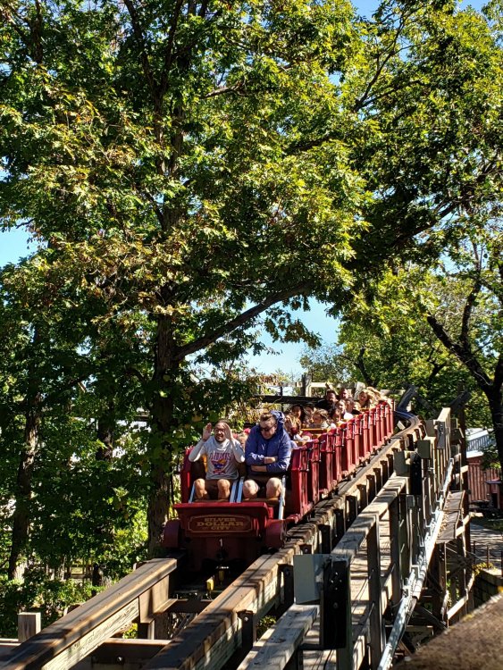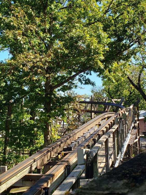 Day 3: Seabreeze I thought about knocking out SFDL and Seabreeze in the same day. A brief brewery stop in Rochester led to three brewery stops so I decided to spend the night and do Seabreeze the next morning. It was a cool overcast morning and I arrived at the gate as the park was opening. I walked straight to Jack Rabbit, which wasn't running just yet. I decided to wait for it as I really hadn't done any research on this park and wasn't sure what else I was going to ride. I just knew I had to ride this one. The queue pretty much the whole time I was there: Them's the brakes: Since the ride operator was on the opposite side of the track, I took a quick selfie: I loved this coaster! Nice little pops of airtime in the front seat on the hill to the turnaround and the last hill before the helix. The tunnel at the end was great. This coaster is amazingly well maintained. I got 12 or 13 rides all over the train in between rides on Bobsleds and WhirlWind and I think the front was my favorite. Bobsleds was a really cool, funky ride. I have really enjoyed all the park-built rides I've been on the last four years. This was no exception. I rode WhirlWind 3x because it was fun and I hadn't been on that exact model of Maurer Spinning Coaster. There were nice views of the lake from there. Eventually the overcast day turned into a drizzly day. I don't like getting caught in the rain so I headed to the nearest brewery, K2 Brothers for a Piña Colada Milkshake IPA (I know, I know). It was tasty. All in all, Seabreeze was quite the gem of a small park and well worth a stop for Jack Rabbit alone. I drove to Utica before deciding to stop for the night, with visions of riding Alpine Bobsled the next day dancing in my head. That's as close as I got.1 point