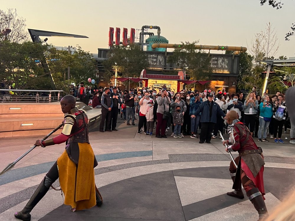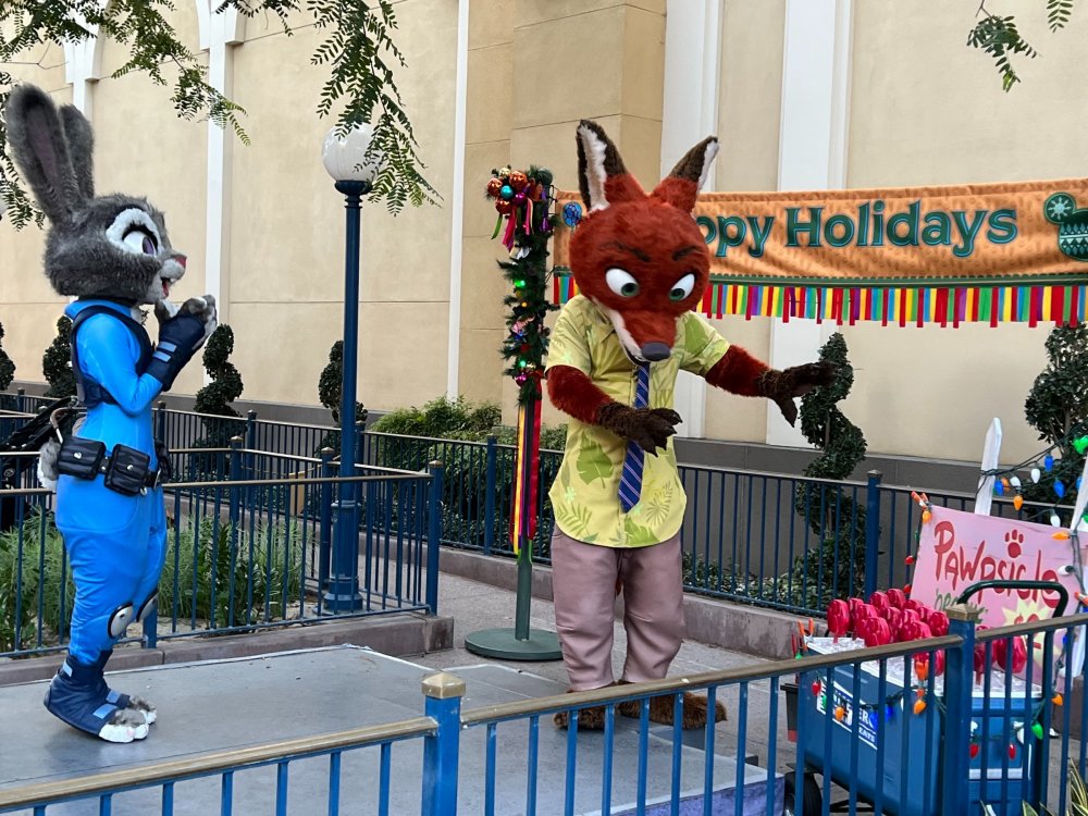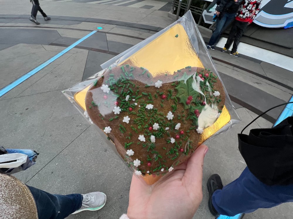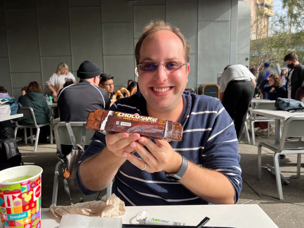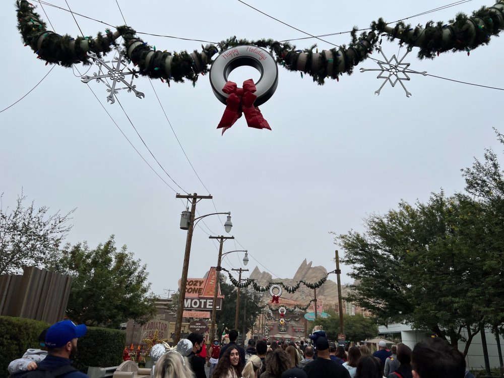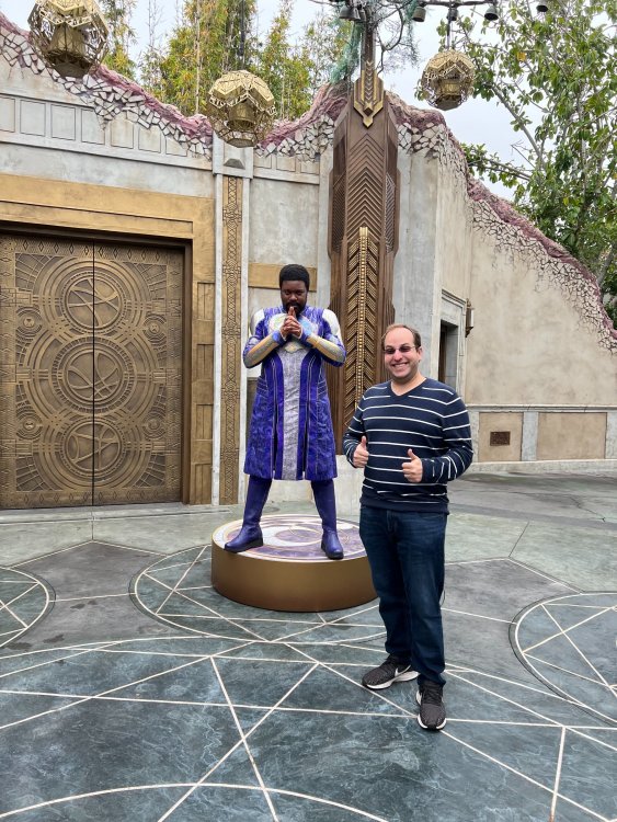 We started our next day at Disney California Adventure, with a focus on revisiting old favorites and experiencing more of the new and seasonal offerings in the park. We weren't the only ones with this idea. I love Buena Vista Street and seeing it for the holidays was no less special. Cars Land during the holidays is even more charming. I love this so much! Don't mind if I do! A personal favorite landmark of mine in Cars Land. This attraction will never cease to amaze me. I've only been able to experience Ramone's side of Radiator Springs Racers a few times. "...And quattro to go!" We didn't win this time. I marvel at the fact that this was built stateside. My second ride for the morning yielded a pit stop at Luigi's. We won this time! The entrance to Avengers Campus from Cars Land is neat in that it features a more antiquated space from the form SSR base on the grounds. Looking forward to the attraction announced at the D23 Expo a few years ago opening here in the future. The Kirby Krackle is real! I'll never turn down a chance to experience Guardians of the Galaxy Mission: Breakout! I love this preshow (and attraction) so much! Shawarma Palace for breakfast! Ant-Man was among the many heroes we saw in Avengers Campus on this day. I met Phastos from The Eternals! Very cool. The world is upside down. I really like what was done to the tunnels when California Screamin' was transformed into the Incredicoaster. We always try our hand at the Games of the Boardwalk at Pixar Pier. This time, the tokens were familiar because they were from the former Mad T Party that used to be hosted in Hollywoodland. This photo does a good job of giving the impression that I actually nailed this shot. I'll let you decide if I did. Captain America (Steve Rogers), Taskmaster and Black Widow battling atop the Avengers headquarters... Time for lunch at Pym's Test Kitchen! I love this tap handles! To give you idea of the different presentations of food here... I was so ridiculously excited to try Pingo Doce and I was by no means disappointed. I wasn't going to pass up a chance to try this Buffalo Chicken Loaded Pretzel! I knew I had to try the Celestial-sized Candy Bar, Choco-Smash. This thing is intense and contains Dark Chocolate, Peanuts, Caramel, Nougat and Chocolate Brownie. I struggled to finish it but it was so good! I love the holiday cavalcades they had running through the park during the day for the Festival of the Holidays. So glad I finally had a chance to experience Cars Land for the holidays! The seasonal overlays for Mater's Junkyard Jamboree and Luigi's Rollickin' Roadsters were both great! The Wasp was at Avengers Campus too! Roz was in the holiday spirit. The Super Store Featuring Avengers Campus was a fun extra option for Marvel-inspired merchandise. Hi Elissa! Still one of my favorite spaces in any Disney park stateside. Grizzly Peak is always fun to walk around, but it is especially plussed for the holidays. One of my favorite views in the entire resort. I love that the Country Bears still have a presence at the Disneyland Resort despite the show being closed decades ago. Nick and Judy from Zootopia! We really enjoyed the performance by "Mostly Kosher" at the Sonoma Terrace. It was especially fun for us to hear traditional Jewish tunes (presented in a far more modern, accessible format) for the holidays. We both wished we had found them earlier in the trip so we could have come back for a second performance! Quite a delicious Gingerbread Mickey Mouse Cookie to be had. It didn't make it home to Orlando. Evening begins to fall on Avengers Campus... Cool! As the sun began to set, even more Marvel characters began to arrive at Avengers Campus...1 point