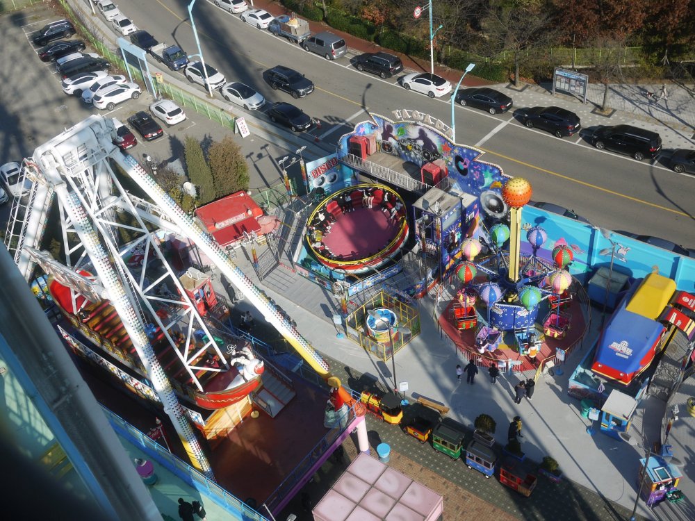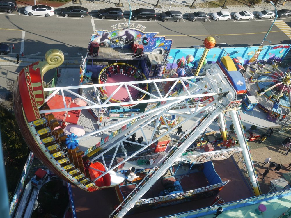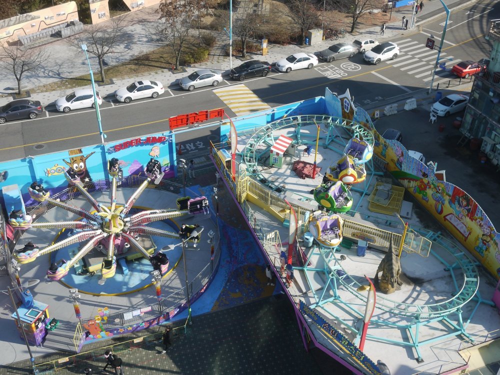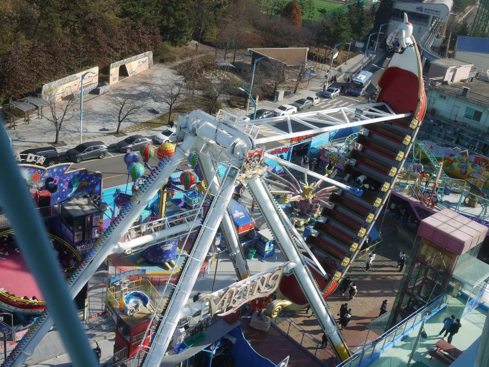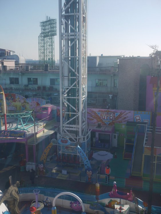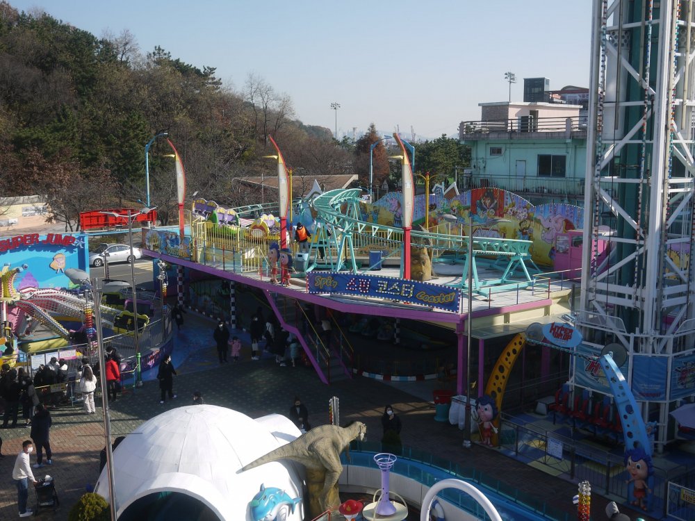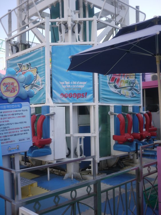So 400m down the road was Wolmi Theme Park. After 3 viking rides and 3 tagada rides as well as being owned by the same company as the previous park, I was curious what rides they would have to differentiate from their sister park being so close together. Looking up old videos online, the park was hope to a pair of S&S towers, which would be a little unique for Korea and a Chance Double Inverter.... I remember Submission at Alton Towers being one of my least favorite flat rides but again it would be a ride that was unique to Korea. 400m down and we've already arrived. Notice the yellow curves on top of that building? That's where the other park is located. To answer Northwind's question, yes that is a monorail. Welcome to Wolmi Theme Park. These two rides do stand out and can be seen all along the sea-front. You may have noticed already that one of the towers is missing. Giant ferris wheels aren't as common in Korea compared to Japan,but there are quite a few parks that either have them or keep them SBNO for over a decade, cough, Everland, cough, to look pretty. This one had a more unique carriage design at least. Here's the monorail from earlier. It runs along most of the island, but it's a one way system and trains seemed to go about every 10 minutes. Corona here was 500,000 a day and the stations looked busy so sadly we skipped it. It's a shame, because it went right around the perimeter of the park and this would probably give great views of hereand of the rest of the island. I love little seaside monorails, I remember riding one in Yokohama with little curtains on the window and seeing Blue Fall (RIP) approach as we went to sea paradise. So the original space-shot was removed, which was a shame but at least there is another S&S space shot in Korea (future spoilers). However they left in Hyper Drop, which would be unique to Korea. Unfortunately it was closed despite it being a busy Saturday due to fireworks. It's still listed on the site and ticket box so maybe I was just unlucky but the space-shot next to it had recently been removed. Let's move on to the open rides.... and it's another Tagada. So this is the 4th one in one day. Plot twist though, there's also a mini one. Korea starts them young on training for this ride. Let's look for another completely unique ride that hasn't been seen 3 times already in this TR. OK, joking aside let's now move on to other flat rides of the park. There's a jumping ride just like the one 400m down the road. A old school simulator... I think I saw another one of these somewhere. And the Universal Studios log flume. I didn't take a picture in the last park but would it surprise you at this point to know that there was also one of these (minus themeing) at the previous park? If you didn't believe me before that this is Universal Studios Log Flume, well Spider-Man is also there plus you get lightly splashed in the face just like most Universal rides. Notice the trampolines/rolling pin slide in the background, that was where the space-shot used to be. There were a couple of rides unique to the park. A road train was here, which are fairly common in areas where families visit. And an assortment of children's rides and indoor play area under cover or inside for when there's bad weather. Up on the roof to overlook the park. The boat ride is probably not running today... Spin Coaster, the islands only credit. This ride is where the Chance Double Inverter used to be. The park seemed to be mostly visited by families and with Cyberloop replaced by this coaster, the Space-shot replaced by trampolines, I would not be surprised if Hyper Drop was actually closed for good. I'll close out this TR with some shots from the Ferris Wheel. Some high tech air-con in here. Like most indoor rides, it was covered in grafitti. Was hard to tell why the ride was closed, no-one seemed to be working on it and I can't find any recent videos of it from after my visit. The Hyper Drop may be the tallest ride on the island. You can see how small the park is from the top of the Ferris Wheel. For a seaside park thread, I haven't shown much of the sea... That's because the view is under construction.... If you look in the center of the picture you can see the drop tower and Viking of the other park to show how close the parks are to each other. Ok, I'll wrap this park up with some final views and thoughts of the island. If your coming to the island for rides, you'll probably be disappointed. It can be a little trek from Seoul but it's not too bad to get her overall. It is close to the airport though so can always be a first port of call if you're flying in. Although I didn't visit there's also a very small indoor park called Wonderbox even closer to the airport. China Town is also located at the entrance to the island. If you just want to eat some food, enjoy the sea views and just get a break from the city life though, it's probably one of the closest seaside parks to Seoul. See you next time Wolmi Island.2 points