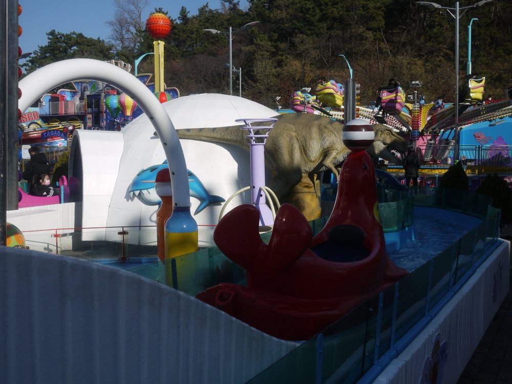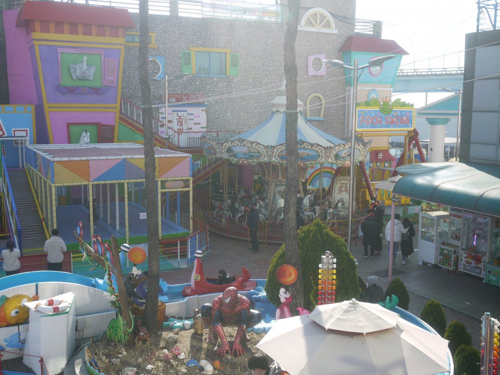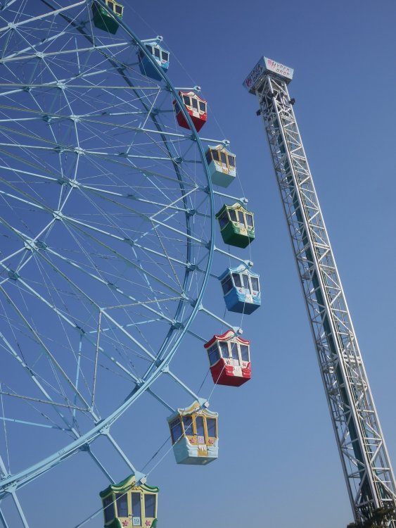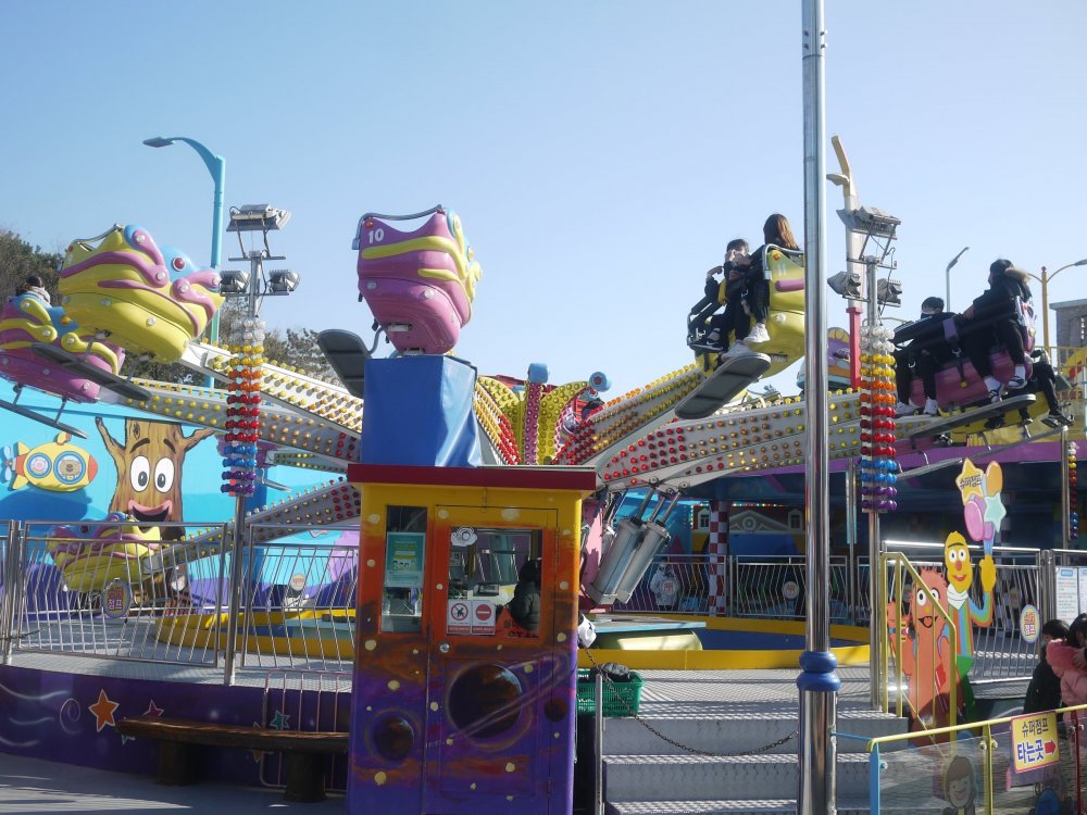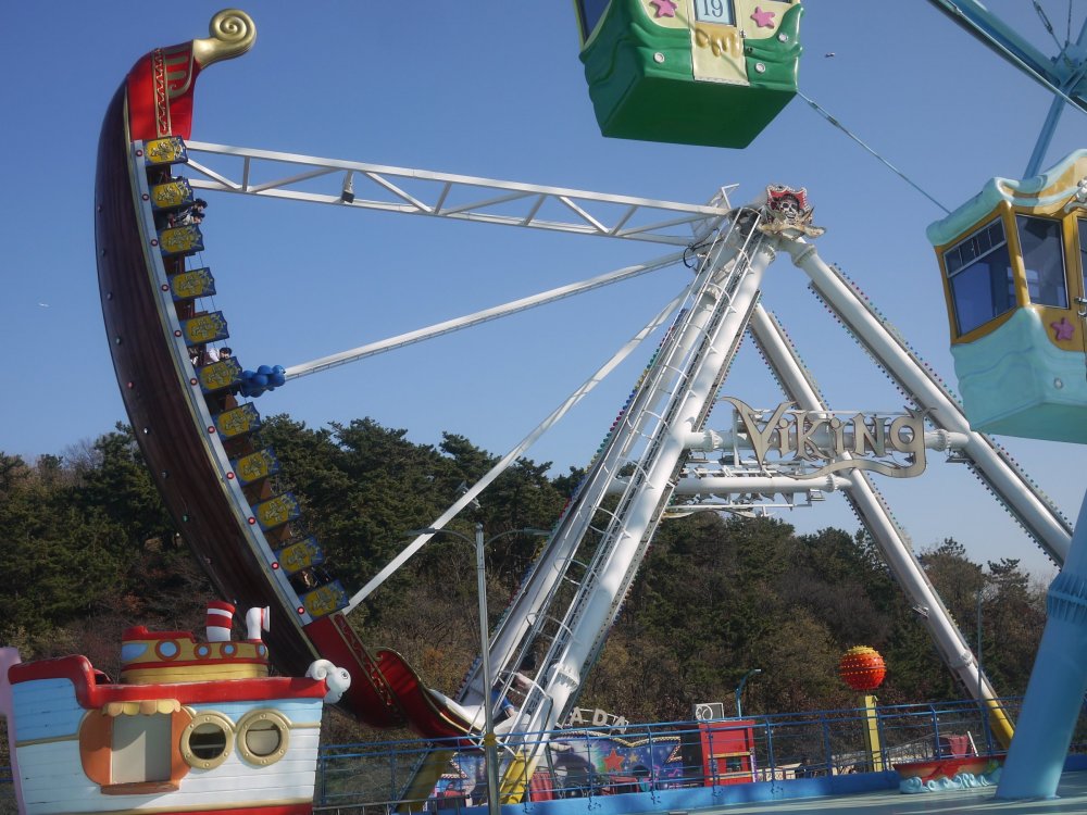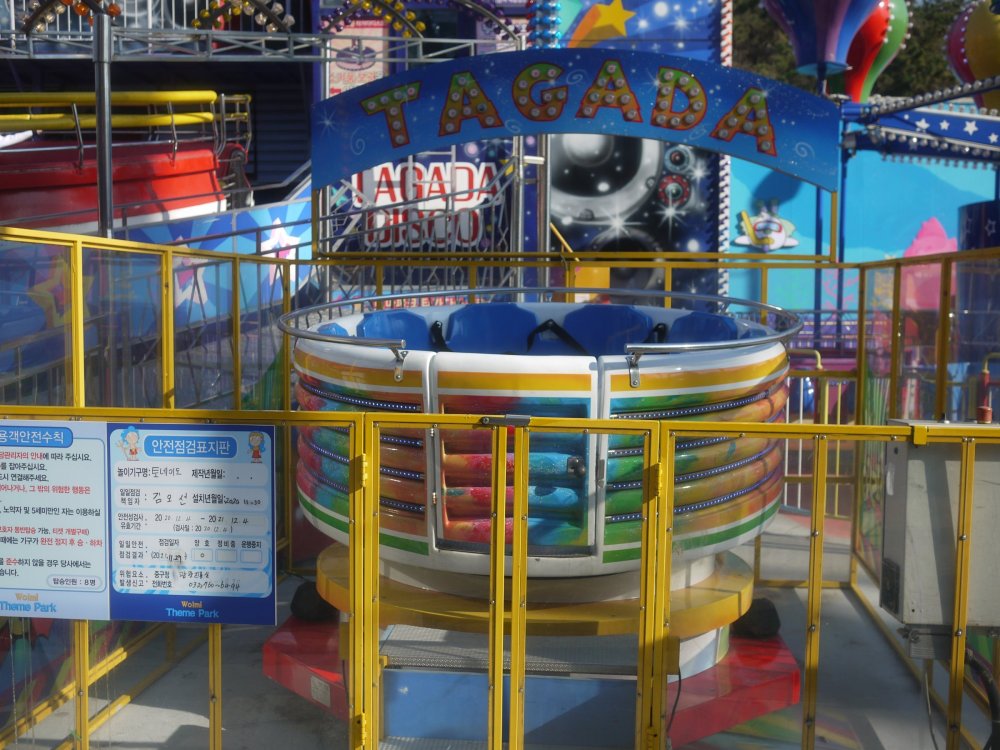So 400m down the road was Wolmi Theme Park. After 3 viking rides and 3 tagada rides as well as being owned by the same company as the previous park, I was curious what rides they would have to differentiate from their sister park being so close together. Looking up old videos online, the park was hope to a pair of S&S towers, which would be a little unique for Korea and a Chance Double Inverter.... I remember Submission at Alton Towers being one of my least favorite flat rides but again it would be a ride that was unique to Korea. 400m down and we've already arrived. Notice the yellow curves on top of that building? That's where the other park is located. To answer Northwind's question, yes that is a monorail. Welcome to Wolmi Theme Park. These two rides do stand out and can be seen all along the sea-front. You may have noticed already that one of the towers is missing. Giant ferris wheels aren't as common in Korea compared to Japan,but there are quite a few parks that either have them or keep them SBNO for over a decade, cough, Everland, cough, to look pretty. This one had a more unique carriage design at least. Here's the monorail from earlier. It runs along most of the island, but it's a one way system and trains seemed to go about every 10 minutes. Corona here was 500,000 a day and the stations looked busy so sadly we skipped it. It's a shame, because it went right around the perimeter of the park and this would probably give great views of hereand of the rest of the island. I love little seaside monorails, I remember riding one in Yokohama with little curtains on the window and seeing Blue Fall (RIP) approach as we went to sea paradise. So the original space-shot was removed, which was a shame but at least there is another S&S space shot in Korea (future spoilers). However they left in Hyper Drop, which would be unique to Korea. Unfortunately it was closed despite it being a busy Saturday due to fireworks. It's still listed on the site and ticket box so maybe I was just unlucky but the space-shot next to it had recently been removed. Let's move on to the open rides.... and it's another Tagada. So this is the 4th one in one day. Plot twist though, there's also a mini one. Korea starts them young on training for this ride. Let's look for another completely unique ride that hasn't been seen 3 times already in this TR. OK, joking aside let's now move on to other flat rides of the park. There's a jumping ride just like the one 400m down the road. A old school simulator... I think I saw another one of these somewhere. And the Universal Studios log flume. I didn't take a picture in the last park but would it surprise you at this point to know that there was also one of these (minus themeing) at the previous park? If you didn't believe me before that this is Universal Studios Log Flume, well Spider-Man is also there plus you get lightly splashed in the face just like most Universal rides. Notice the trampolines/rolling pin slide in the background, that was where the space-shot used to be. There were a couple of rides unique to the park. A road train was here, which are fairly common in areas where families visit. And an assortment of children's rides and indoor play area under cover or inside for when there's bad weather. Up on the roof to overlook the park. The boat ride is probably not running today... Spin Coaster, the islands only credit. This ride is where the Chance Double Inverter used to be. The park seemed to be mostly visited by families and with Cyberloop replaced by this coaster, the Space-shot replaced by trampolines, I would not be surprised if Hyper Drop was actually closed for good. I'll close out this TR with some shots from the Ferris Wheel. Some high tech air-con in here. Like most indoor rides, it was covered in grafitti. Was hard to tell why the ride was closed, no-one seemed to be working on it and I can't find any recent videos of it from after my visit. The Hyper Drop may be the tallest ride on the island. You can see how small the park is from the top of the Ferris Wheel. For a seaside park thread, I haven't shown much of the sea... That's because the view is under construction.... If you look in the center of the picture you can see the drop tower and Viking of the other park to show how close the parks are to each other. Ok, I'll wrap this park up with some final views and thoughts of the island. If your coming to the island for rides, you'll probably be disappointed. It can be a little trek from Seoul but it's not too bad to get her overall. It is close to the airport though so can always be a first port of call if you're flying in. Although I didn't visit there's also a very small indoor park called Wonderbox even closer to the airport. China Town is also located at the entrance to the island. If you just want to eat some food, enjoy the sea views and just get a break from the city life though, it's probably one of the closest seaside parks to Seoul. See you next time Wolmi Island.2 points