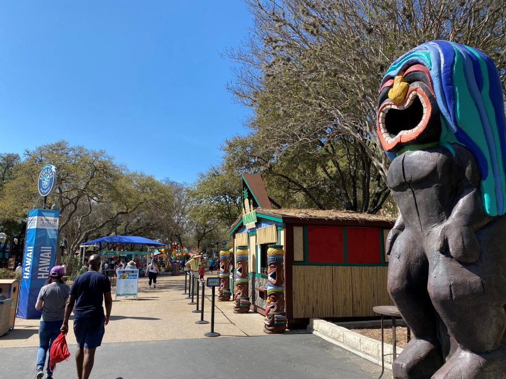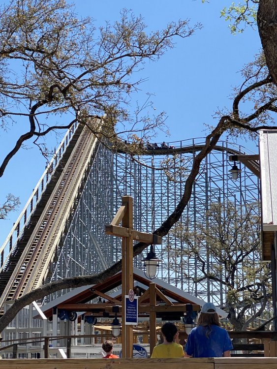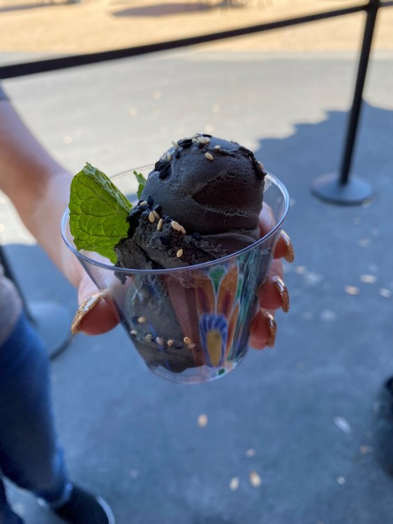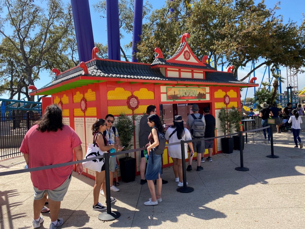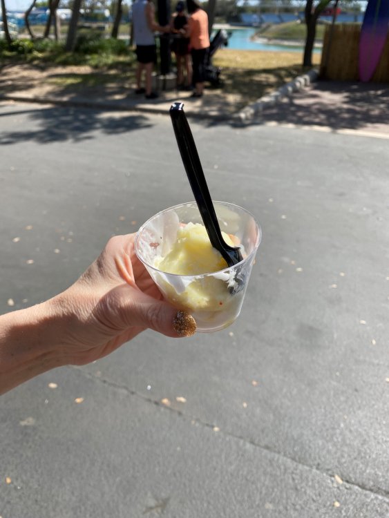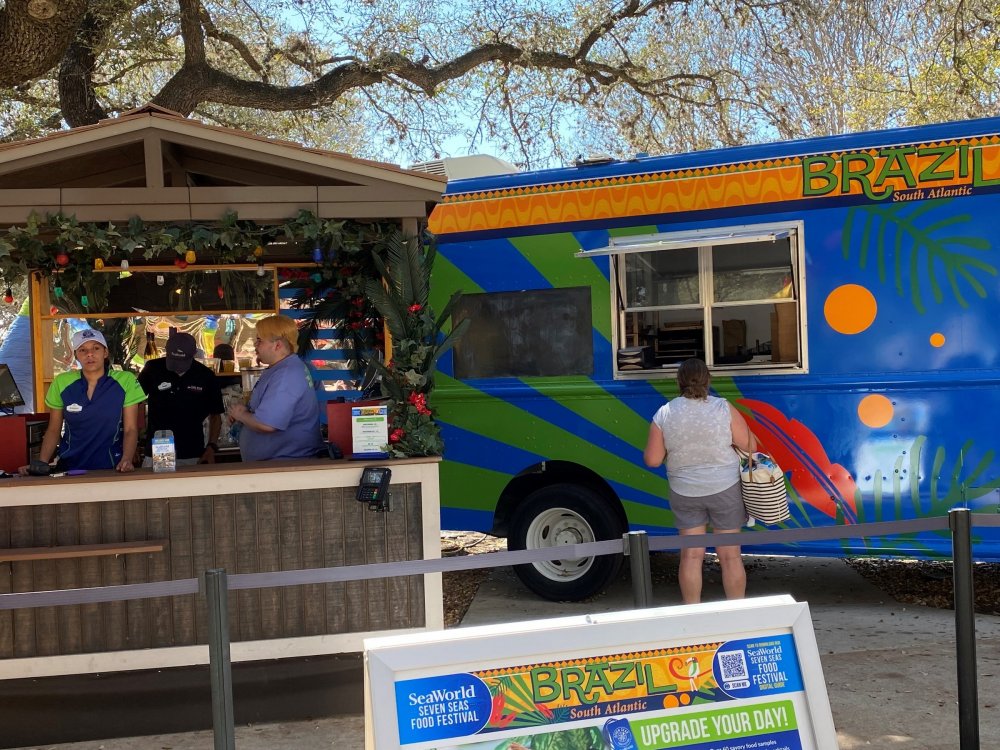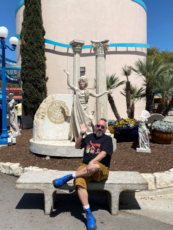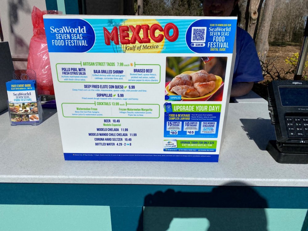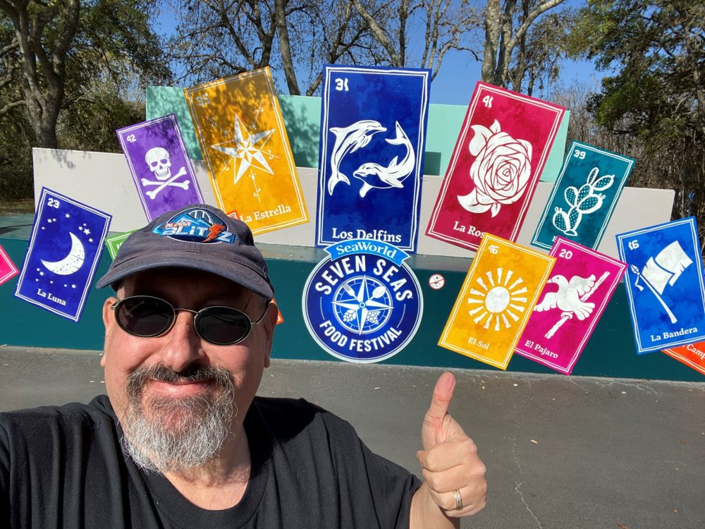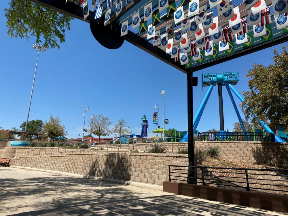 So yesterday, I went up to SeaWorld San Antonio to enjoy the 1st weekend of Seven Seas Food Festival. had a really good time, although dealing with some Med interaction issues, that made me take it pretty slow when moving between Food Stands (resulting in one loop around the lagoon taking ~5 hours to stop at each stand), and tho it was a GORGEOUS day, the ride I did the most was "Bench" Here's how the day went. . and please keep in mind that I didn't try anything from Hawaii, Japan, Italy, or Greece (yet. . was just too full! So those will get tried, along with my favorites from Saturday, when I'm back in 2 weeks to help celebrate Great White's Birthday). let's take a look at the Seven Seas Food Festival at SeaWorld San Antonio! Lovely drive from Austin to San Antonio today. . . SW is a bit further than SFFT for me, so it takes ~1:40 to get there from my house. but I arrived just before opening to a bit of a back up at the parking gates, and a LOT of cars in the lot already. Luckily, because my Season Pass has a hard time reading, the gentleman at the parking booth apologized for the extended wait, and gave me an Up Close Parking pass. I'll take it, even tho a day at SWSA involves a lot of walking anyways - it's a big park! hmmm. . . doesn't look too busy just before opening. oh. . . on the OTHER side of the main arch. yeah. . . Luckily it turned out the vast majority of these folks were either heading to Aquatica, or were going into the SW side for some sort of cheer competition that was taking place at one of the large auditoriums. so it meant that we had lovely weather, and really short lines for both the food, and the rides (tho as noted, I skipped pretty much all rides due to concern about my BP being low) Once the main gates opened, the lines moved fast tho, and before long was at the main Welcome booth - where i decided to wait in the short line to pick up my Seven Seas Food Festival Badge - which would have been WAY quicker, if both registers were only selling that. However, the registers also were selling meal plan. .and almost everyone in front of me were large groups buying meal plan for the day, and unlimited Drink Cups. So . . yeah, that took a while. On the website it notes you can pick up your prebought Seven Seas badge at any booth. . but I only saw one other booth (Korea) that actually had them available, so I was glad I waited here to pick mine up. To be fair, it's the 1st weekend. . I'm sure as it progresses, more booths will have the lanyards/badges available for pickup. one thing I noticed as well. . many folks were paying cash for the daily meal plan. So SWSA is still a cash *and* credit park. once i had my lanyard/punch badge, I headed to Mexico. . where I was meeting up with several folks from the "local" / Texas Based: Thrill Seekers United Group. and my Friend Amy, who had helped organize the casual meet up to tour the world of food, wanted to start at Mexico (I suspect for the Margaritas :p) Unfortunately for me, alcohol is a no-no for me at he moment. But everyone that tried the drinks said they were excellent at every booth. here's the offerings at Mexico: these are the Baja Grilled Shrimp Street Tacos. the shrimp were great, as was the tortilla, but I found the red cabbage way too dry. . I think the fix for that would be to either add more of that Aioli, or toss it in a vinaigrette - or a quick pickle - would have made it better, I think. But it was good. the top are the Chicken Tacos (which I was told were good) and below are the Sopapillas - which I tried one of and were really great. Just sweet enough with the brown sugar & honey, and pillowy soft. this is the Deep Fried Elote - which I was told I must try when I go back (so I will). . it looks great. and below is the Braised Beef taco, which got the comment to "pick off the jalepeno, as they are super spicy" While waiting for some to get Margaritas (with edible flavored straws!), I peeked over a construction fence. what in the world is THIS?? . . .hmmm. . . . we discussed among ourselves, and we think we know exactly what this foundation is for. . but wont' say in public, as we wouldn't want to ruin the park's big 2023 announcement! then it was onward to France! this is the Chocolate Cherries & Cream on the left, and the Caramel Apple on the right. I'm not an apple fan, but was told it was good. The Chocolate Cherry is excellent, but a little bit too sweet for my tastes (tho others with us loved it) the winner of the day for me: the savory Turkey, Mushroom, Spinach and Swiss Crepe. this thing was AMAZING. . .I could have had several more of them. Favorite thing I tasted today, and highly recommended. oh looks. . some of the Countries have entertainment, and some of them have Photo Ops set up. how fun. . I'm in a Seurat painting! (A Sunday Afternoon on the Island of La Grande Jatte) Seurat, knew a lot, about dots While sitting eating the crepes, we got a lovely view of Steel Eel & Wave Breaker across the lagoon. . look at that Lovely Weather! It got a little warm, but beautiful. (tho by now I was really feeling "off" and knew I wasn't going to be riding anything "extreme" today) Sad that Tidal Surge had very little line, but no way could I chance a ride on it. So I focused on the food, and visiting with friends - which were the main reasons I had come today anyways. onwards to Germany! this is the Beer Braised Bratwurst with Caramelized onions. the Bratwurst itself was very good. The onions simply didnt' have enough to counteract the amount of mustard on this thing, and therefore couldn't really taste them. but the real sad part was the pretzel bun just was not good. . it tasted a bit stale. Top is the Braised Beef Spaetzle, and bottom is the Beer Cheese (without the Onions) the folks who got this said it was "ok" but it doesn't look like a "must try" to me, which is a shame. and this is the Apple Strudel - which I was told was fantastic, and the best offering on the Germany menu (didn't try, as I don't l