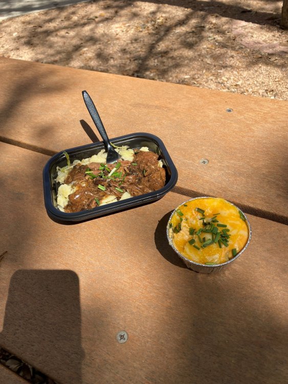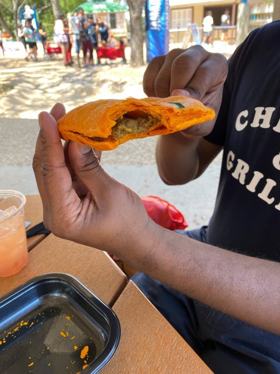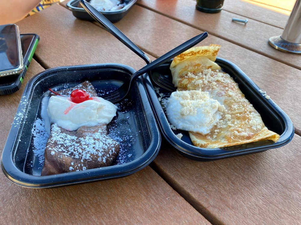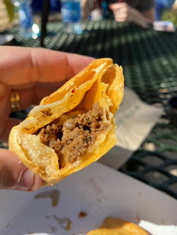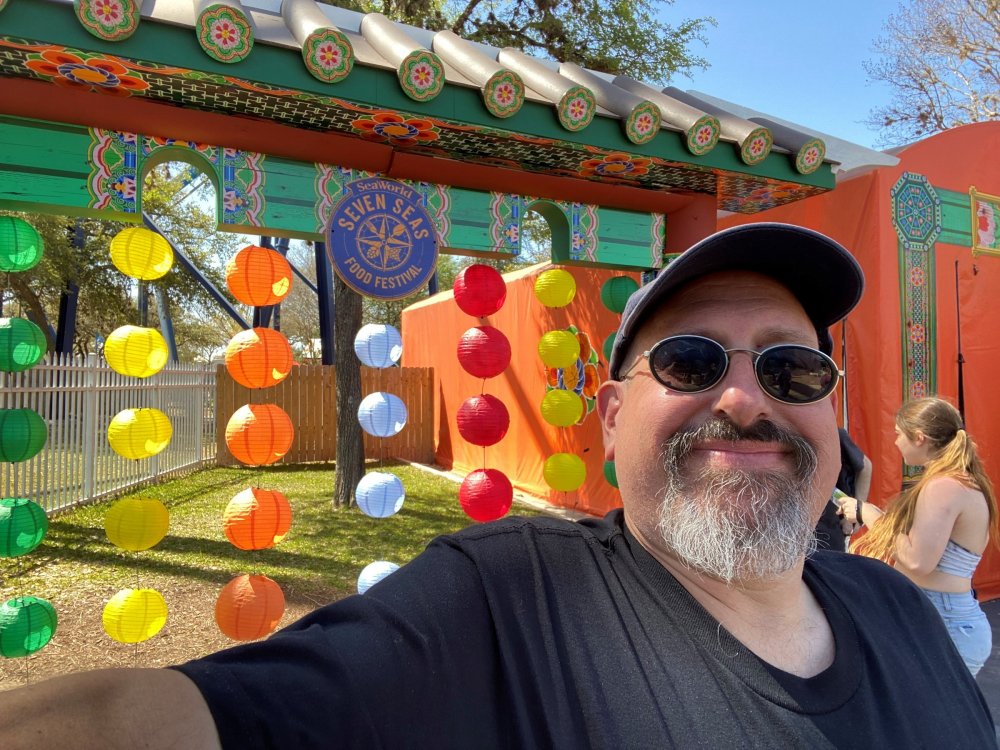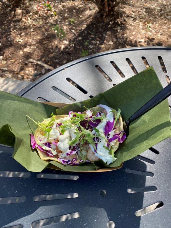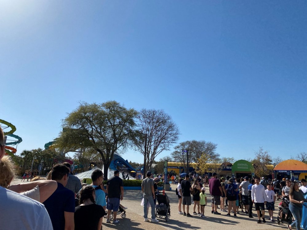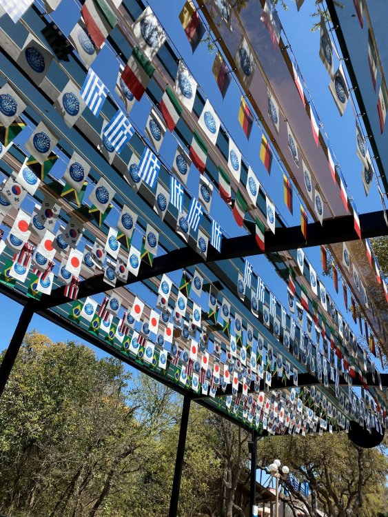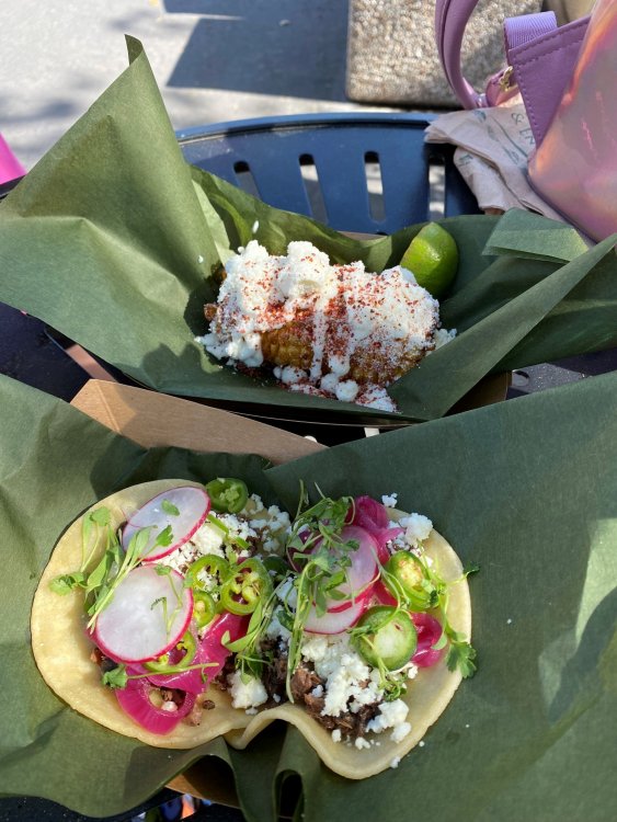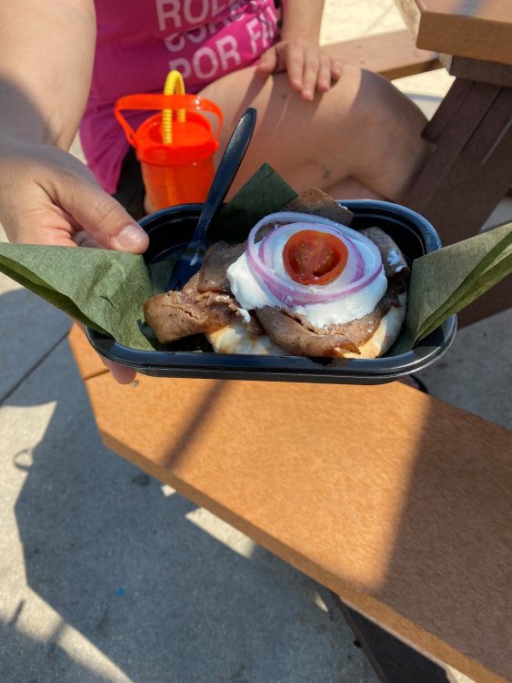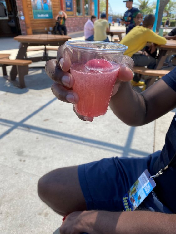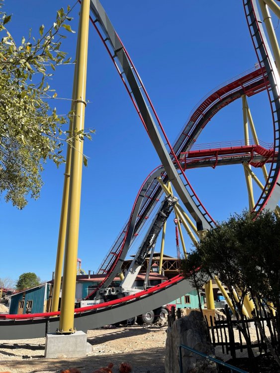 So yesterday, I went up to SeaWorld San Antonio to enjoy the 1st weekend of Seven Seas Food Festival. had a really good time, although dealing with some Med interaction issues, that made me take it pretty slow when moving between Food Stands (resulting in one loop around the lagoon taking ~5 hours to stop at each stand), and tho it was a GORGEOUS day, the ride I did the most was "Bench" Here's how the day went. . and please keep in mind that I didn't try anything from Hawaii, Japan, Italy, or Greece (yet. . was just too full! So those will get tried, along with my favorites from Saturday, when I'm back in 2 weeks to help celebrate Great White's Birthday). let's take a look at the Seven Seas Food Festival at SeaWorld San Antonio! Lovely drive from Austin to San Antonio today. . . SW is a bit further than SFFT for me, so it takes ~1:40 to get there from my house. but I arrived just before opening to a bit of a back up at the parking gates, and a LOT of cars in the lot already. Luckily, because my Season Pass has a hard time reading, the gentleman at the parking booth apologized for the extended wait, and gave me an Up Close Parking pass. I'll take it, even tho a day at SWSA involves a lot of walking anyways - it's a big park! hmmm. . . doesn't look too busy just before opening. oh. . . on the OTHER side of the main arch. yeah. . . Luckily it turned out the vast majority of these folks were either heading to Aquatica, or were going into the SW side for some sort of cheer competition that was taking place at one of the large auditoriums. so it meant that we had lovely weather, and really short lines for both the food, and the rides (tho as noted, I skipped pretty much all rides due to concern about my BP being low) Once the main gates opened, the lines moved fast tho, and before long was at the main Welcome booth - where i decided to wait in the short line to pick up my Seven Seas Food Festival Badge - which would have been WAY quicker, if both registers were only selling that. However, the registers also were selling meal plan. .and almost everyone in front of me were large groups buying meal plan for the day, and unlimited Drink Cups. So . . yeah, that took a while. On the website it notes you can pick up your prebought Seven Seas badge at any booth. . but I only saw one other booth (Korea) that actually had them available, so I was glad I waited here to pick mine up. To be fair, it's the 1st weekend. . I'm sure as it progresses, more booths will have the lanyards/badges available for pickup. one thing I noticed as well. . many folks were paying cash for the daily meal plan. So SWSA is still a cash *and* credit park. once i had my lanyard/punch badge, I headed to Mexico. . where I was meeting up with several folks from the "local" / Texas Based: Thrill Seekers United Group. and my Friend Amy, who had helped organize the casual meet up to tour the world of food, wanted to start at Mexico (I suspect for the Margaritas :p) Unfortunately for me, alcohol is a no-no for me at he moment. But everyone that tried the drinks said they were excellent at every booth. here's the offerings at Mexico: these are the Baja Grilled Shrimp Street Tacos. the shrimp were great, as was the tortilla, but I found the red cabbage way too dry. . I think the fix for that would be to either add more of that Aioli, or toss it in a vinaigrette - or a quick pickle - would have made it better, I think. But it was good. the top are the Chicken Tacos (which I was told were good) and below are the Sopapillas - which I tried one of and were really great. Just sweet enough with the brown sugar & honey, and pillowy soft. this is the Deep Fried Elote - which I was told I must try when I go back (so I will). . it looks great. and below is the Braised Beef taco, which got the comment to "pick off the jalepeno, as they are super spicy" While waiting for some to get Margaritas (with edible flavored straws!), I peeked over a construction fence. what in the world is THIS?? . . .hmmm. . . . we discussed among ourselves, and we think we know exactly what this foundation is for. . but wont' say in public, as we wouldn't want to ruin the park's big 2023 announcement! then it was onward to France! this is the Chocolate Cherries & Cream on the left, and the Caramel Apple on the right. I'm not an apple fan, but was told it was good. The Chocolate Cherry is excellent, but a little bit too sweet for my tastes (tho others with us loved it) the winner of the day for me: the savory Turkey, Mushroom, Spinach and Swiss Crepe. this thing was AMAZING. . .I could have had several more of them. Favorite thing I tasted today, and highly recommended. oh looks. . some of the Countries have entertainment, and some of them have Photo Ops set up. how fun. . I'm in a Seurat painting! (A Sunday Afternoon on the Island of La Grande Jatte) Seurat, knew a lot, about dots While sitting eating the crepes, we got a lovely view of Steel Eel & Wave Breaker across the lagoon. . look at that Lovely Weather! It got a little warm, but beautiful. (tho by now I was really feeling "off" and knew I wasn't going to be riding anything "extreme" today) Sad that Tidal Surge had very little line, but no way could I chance a ride on it. So I focused on the food, and visiting with friends - which were the main reasons I had come today anyways. onwards to Germany! this is the Beer Braised Bratwurst with Caramelized onions. the Bratwurst itself was very good. The onions simply didnt' have enough to counteract the amount of mustard on this thing, and therefore couldn't really taste them. but the real sad part was the pretzel bun just was not good. . it tasted a bit stale. Top is the Braised Beef Spaetzle, and bottom is the Beer Cheese (without the Onions) the folks who got this said it was "ok" but it doesn't look like a "must try" to me, which is a shame. and this is the Apple Strudel - which I was told was fantastic, and the best offering on the Germany menu (didn't try, as I don't l
