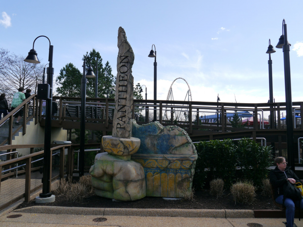 What Have the Roman Gods Wrought? Some Thoughts on and Photos of Pantheon Sing to me, o muse, of Busch Gardens Williamsburg and its tribute to the majesty of the Roman gods! Swift Mercury of the winged feet! Minerva, whose wisdom and beauty shamed the rosy fingered dawn! Neptune, master of the wine dark sea! Pluto, the sinister lord of the Underworld! And Mighty Jupiter, father of the gods and the most powerful of all! OK, my knowledge of classical poetry is a bit rusty, so I think I'll stick to regular old prose now. Pantheon, Busch Gardens' new multi-launch coaster, opened to the public on Friday, March 25. Well, "officially" opened following a few weekends of previews for Busch Gardens member passholders. I rode it three times during those preview days--front, middle, and back. The verdict: It's a very good ride that's finally brought some nice Intamin ejector air to the Williamsburg park. Here are a few thoughts: For me, the backseat is the best place to ride most coasters, and Pantheon is no exception. The ejector airtime is more pronounced, and when you go backward up that spike (excuse me, "Neptune's Trident"), it's pretty hair raising looking straight down. That being said, the front seat offers a great ride too--especially when it comes to the hangtime through the inversions. The initial launch into an inversion is a great beginning, and the weird outward-banked bit just before the brake run is a good finish. I like the outward-banked turn near over the banks of the Rhine River, too. I wish the Rhine River Cruise was operating, as you can get some good views of Pantheon from down there. The station is rather small for such a big coaster. The queue is a bit odd, too. The ride is susceptible to windy conditions; that is, they'll suspend operations during gusty days until things die down. Although this isn't a "top 10" ride for me, it could find a place in my "top 25." My first ride was in a middle seat during a cold day, and the coaster seemed a bit sluggish. But when I rode it on a warmer day in the back and front seats, I thought, "This is more like it." Let's have a look at Pantheon. This rather threatening sign shows you the way to Pantheon in Festa Italia. Those who would ride Pantheon must get past this imposing iron monster! (Fortunately, that's pretty easy to do.) Here's what you'll be getting yourself into. You can put your bags in the lockers on the left. There is a wire basket on the station for smaller loose objects. I think you can wear glasses on Pantheon as long as you have sport straps for them (they've been getting stricter about glasses on coasters this year.) After you leave the station, Winged Mercury gives you a nice launch through this inversion, which I think has something to do with Minerva. Perhaps Minerva, in her wisdom, is preparing you for what's to come. Come on, Mercury! You can do it!! Oops! Big raspberry from Jupiter, try again. Fortunately, Neptune is there to help with his trident. Jupiter says, "Greetings, mortal fools!" Yep--nice pop of air in the back seat here, as the train just makes it over the hill. Pantheon: Hi, Tempesto! Tempesto: Back at ya, new kid! Here's part of what Pluto has in store for you after your initial plunge. "Nice view . . . aghh! What the hell?" You can get a good view of this element from the bridge between Italy and Germany. It's such a weird (but cool) feeling as you lean toward the river. Tempesto: Hi, Loch Ness Monster. Loch Ness Monster: Best returns of the day to ye, laddie--as long as ye show proper respect to your elders." Verbolten: Ach! don't mind him, Pantheon. Those old Arrow coasters are always grouchy. Congratulations, mortals! Your quest is at an end! And that's a wrap from Pantheon. Get out to Virginia and ride it, lest your cowardice anger the gods! Thanks for reading.2 points