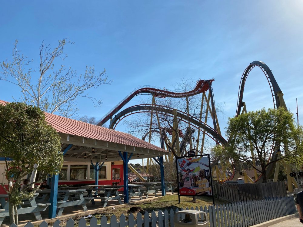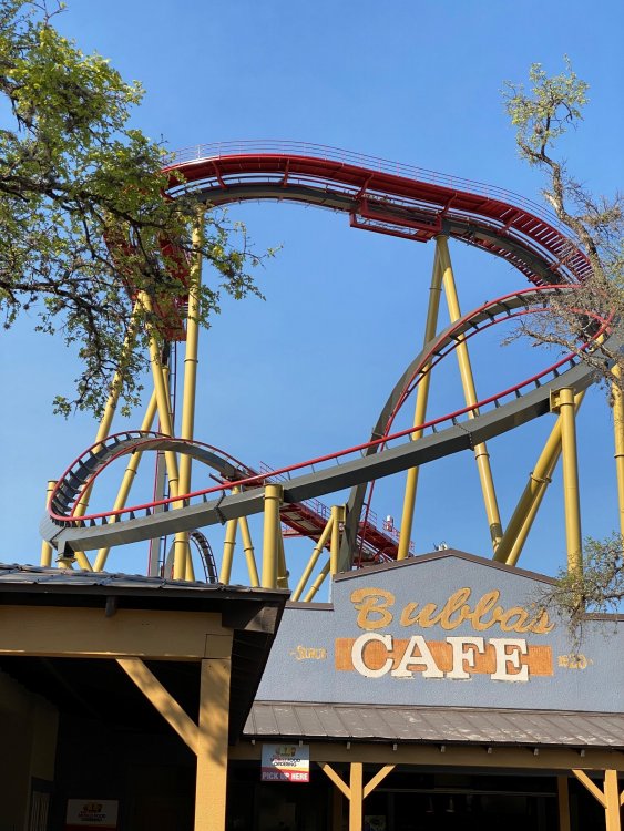 So yesterday, I went up to SeaWorld San Antonio to enjoy the 1st weekend of Seven Seas Food Festival. had a really good time, although dealing with some Med interaction issues, that made me take it pretty slow when moving between Food Stands (resulting in one loop around the lagoon taking ~5 hours to stop at each stand), and tho it was a GORGEOUS day, the ride I did the most was "Bench" Here's how the day went. . and please keep in mind that I didn't try anything from Hawaii, Japan, Italy, or Greece (yet. . was just too full! So those will get tried, along with my favorites from Saturday, when I'm back in 2 weeks to help celebrate Great White's Birthday). let's take a look at the Seven Seas Food Festival at SeaWorld San Antonio! Lovely drive from Austin to San Antonio today. . . SW is a bit further than SFFT for me, so it takes ~1:40 to get there from my house. but I arrived just before opening to a bit of a back up at the parking gates, and a LOT of cars in the lot already. Luckily, because my Season Pass has a hard time reading, the gentleman at the parking booth apologized for the extended wait, and gave me an Up Close Parking pass. I'll take it, even tho a day at SWSA involves a lot of walking anyways - it's a big park! hmmm. . . doesn't look too busy just before opening. oh. . . on the OTHER side of the main arch. yeah. . . Luckily it turned out the vast majority of these folks were either heading to Aquatica, or were going into the SW side for some sort of cheer competition that was taking place at one of the large auditoriums. so it meant that we had lovely weather, and really short lines for both the food, and the rides (tho as noted, I skipped pretty much all rides due to concern about my BP being low) Once the main gates opened, the lines moved fast tho, and before long was at the main Welcome booth - where i decided to wait in the short line to pick up my Seven Seas Food Festival Badge - which would have been WAY quicker, if both registers were only selling that. However, the registers also were selling meal plan. .and almost everyone in front of me were large groups buying meal plan for the day, and unlimited Drink Cups. So . . yeah, that took a while. On the website it notes you can pick up your prebought Seven Seas badge at any booth. . but I only saw one other booth (Korea) that actually had them available, so I was glad I waited here to pick mine up. To be fair, it's the 1st weekend. . I'm sure as it progresses, more booths will have the lanyards/badges available for pickup. one thing I noticed as well. . many folks were paying cash for the daily meal plan. So SWSA is still a cash *and* credit park. once i had my lanyard/punch badge, I headed to Mexico. . where I was meeting up with several folks from the "local" / Texas Based: Thrill Seekers United Group. and my Friend Amy, who had helped organize the casual meet up to tour the world of food, wanted to start at Mexico (I suspect for the Margaritas :p) Unfortunately for me, alcohol is a no-no for me at he moment. But everyone that tried the drinks said they were excellent at every booth. here's the offerings at Mexico: these are the Baja Grilled Shrimp Street Tacos. the shrimp were great, as was the tortilla, but I found the red cabbage way too dry. . I think the fix for that would be to either add more of that Aioli, or toss it in a vinaigrette - or a quick pickle - would have made it better, I think. But it was good. the top are the Chicken Tacos (which I was told were good) and below are the Sopapillas - which I tried one of and were really great. Just sweet enough with the brown sugar & honey, and pillowy soft. this is the Deep Fried Elote - which I was told I must try when I go back (so I will). . it looks great. and below is the Braised Beef taco, which got the comment to "pick off the jalepeno, as they are super spicy" While waiting for some to get Margaritas (with edible flavored straws!), I peeked over a construction fence. what in the world is THIS?? . . .hmmm. . . . we discussed among ourselves, and we think we know exactly what this foundation is for. . but wont' say in public, as we wouldn't want to ruin the park's big 2023 announcement! then it was onward to France! this is the Chocolate Cherries & Cream on the left, and the Caramel Apple on the right. I'm not an apple fan, but was told it was good. The Chocolate Cherry is excellent, but a little bit too sweet for my tastes (tho others with us loved it) the winner of the day for me: the savory Turkey, Mushroom, Spinach and Swiss Crepe. this thing was AMAZING. . .I could have had several more of them. Favorite thing I tasted today, and highly recommended. oh looks. . some of the Countries have entertainment, and some of them have Photo Ops set up. how fun. . I'm in a Seurat painting! (A Sunday Afternoon on the Island of La Grande Jatte) Seurat, knew a lot, about dots While sitting eating the crepes, we got a lovely view of Steel Eel & Wave Breaker across the lagoon. . look at that Lovely Weather! It got a little warm, but beautiful. (tho by now I was really feeling "off" and knew I wasn't going to be riding anything "extreme" today) Sad that Tidal Surge had very little line, but no way could I chance a ride on it. So I focused on the food, and visiting with friends - which were the main reasons I had come today anyways. onwards to Germany! this is the Beer Braised Bratwurst with Caramelized onions. the Bratwurst itself was very good. The onions simply didnt' have enough to counteract the amount of mustard on this thing, and therefore couldn't really taste them. but the real sad part was the pretzel bun just was not good. . it tasted a bit stale. Top is the Braised Beef Spaetzle, and bottom is the Beer Cheese (without the Onions) the folks who got this said it was "ok" but it doesn't look like a "must try" to me, which is a shame. and this is the Apple Strudel - which I was told was fantastic, and the best offering on the Germany menu (didn't try, as I don't l