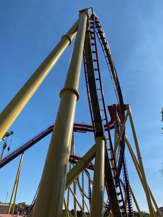 Yep, our very own MrRC has been posting pictures in this thread here of a tilt prototype at the Vekoma facility, largely assumed to have been the one going to Energylandia (as they'd already announced one), but it would appear now that with the red track/blue supports, it is actually the COTA one.1 point