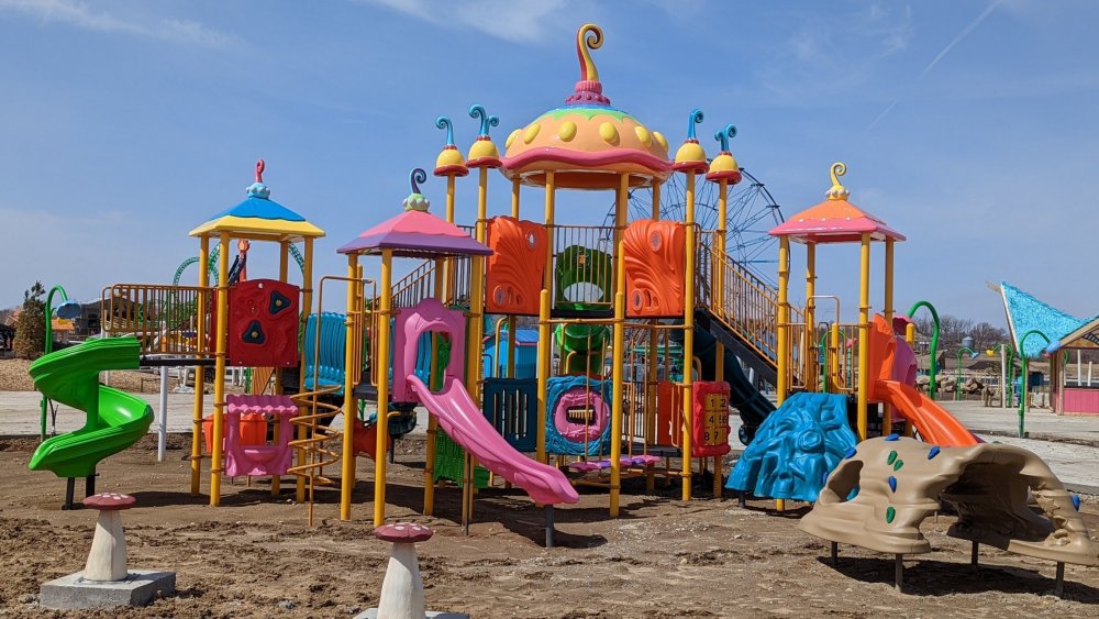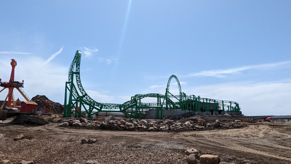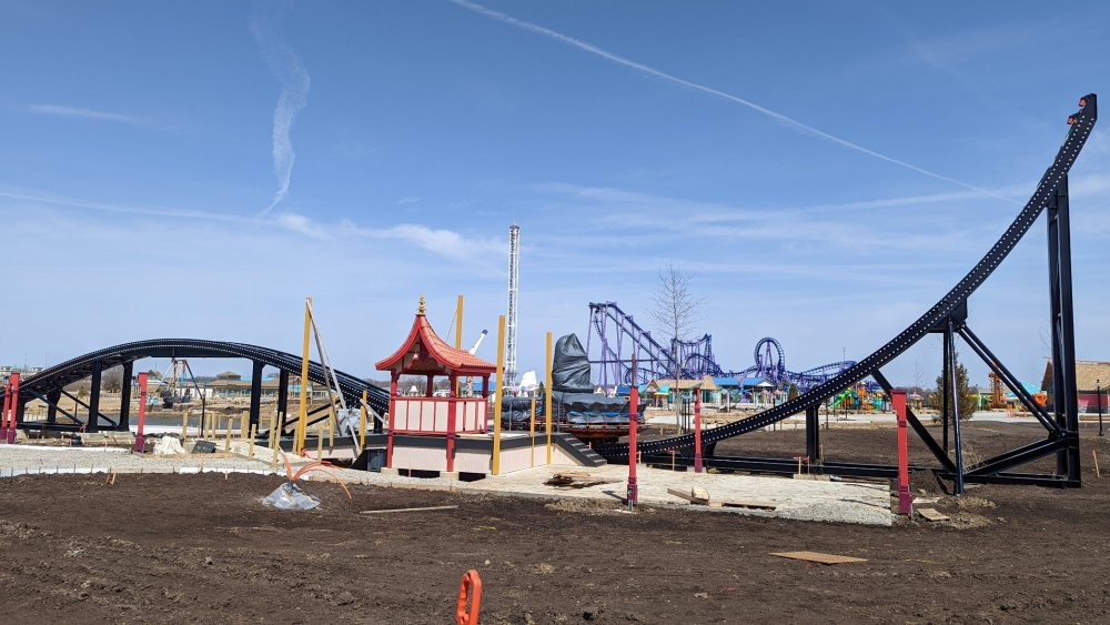 Had my first visit of 2022 today, Sunday. The changes this season begin in the parking lot. There are at least 5 security camera masts throughout the lot now. Approaching the entrance the canopy over the ticket takers has been repainted and it's blue and white now. Which if memory serves is more like it was a couple decades ago with the old structure. Catwoman is coming along, though a fair amount is still framing. There are still stairs from Bugs Bunny National Park to the upper bit of Illinois but they're all-new. As for Eagle. The entrance is improved but they aren't done with it. Looks like it'll have full ADA-compliance with a new ramp still going in. It leads to the entrance side of the platform though. Also got a couple shots of the changes to the Palace area. That's about it for my short stop. Never got to see the DC comics and Log Flume/American Thunder loop. Mooseburger being converted to 100% mobile ordering only is pretty nice and the menu has been expanded. But there are still some omissions from this menu (no loaded nacho option, nothing with a hot dog in it). Macho Nacho and World's Fair Hot Dogs are both back this year. I'll leave you with the rest of my Catwoman photos.5 points