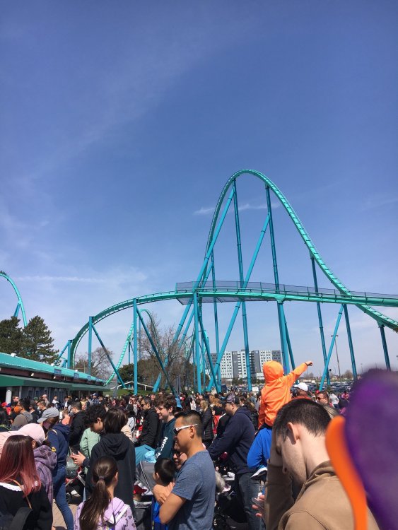 Yeah from the highway it took us about 40 min to get parked, and then another 20 min to get through security/gate. If I didn't have Fastlane I woulda turned around lol lines aren't bad with FL+. Starbucks and the muskoga burger place were a shit show. I rode Leviathan twice and Wilde Beast before my wife even got her drink and they ran out of stuff and were giving attitude. At Muskoga, after waiting 30 min to order a burger, then an additional 30 to get the burger, they said they ran out of beef and it would be another 30 min. So people just took chicken or impossible burgers because there is no way anyone was waiting any longer than an hour. I enjoyed my cider and the impossible burger wasn't that bad. In line for Yukon Striker front row line with FL+. More than 90 min in standard queue, about 15 with FL. Great weather and definitely enjoying myself. I haven't been to a park in a long while so it's good to be back. Food service to be expected on their "opening day" but just informing everyone Also nobody appears to be directing people to the real entrance of Yukon Striker everyone is thinking the single rider is the real line that is overflowing onto the midway. And to add extra insult tons of empty seats going out. I'm sure they'll get in their groove soon, but, eek.1 point