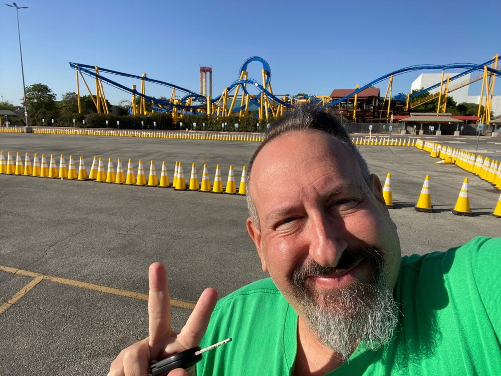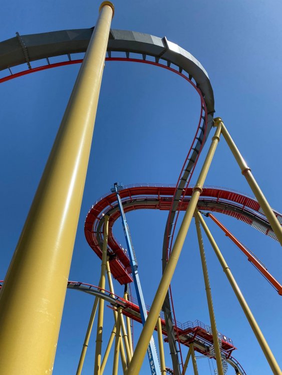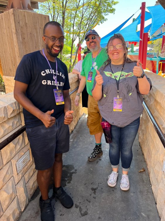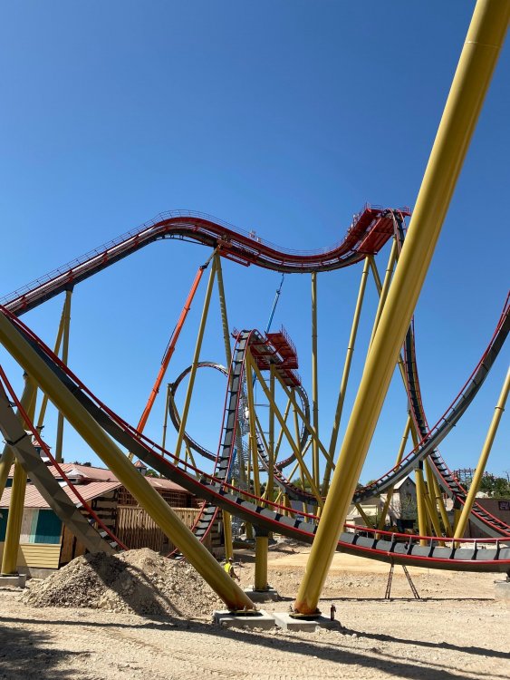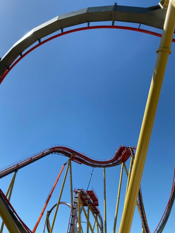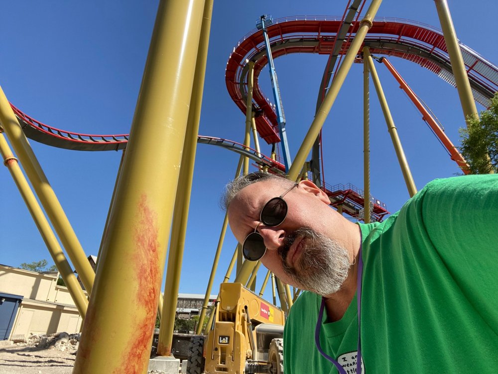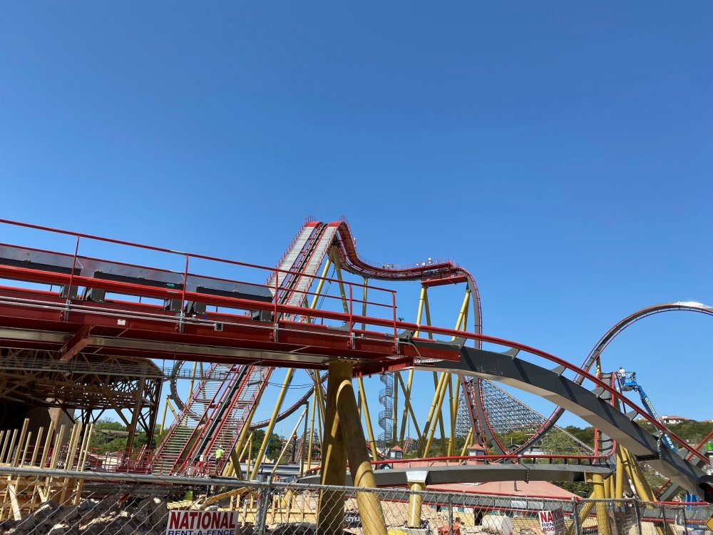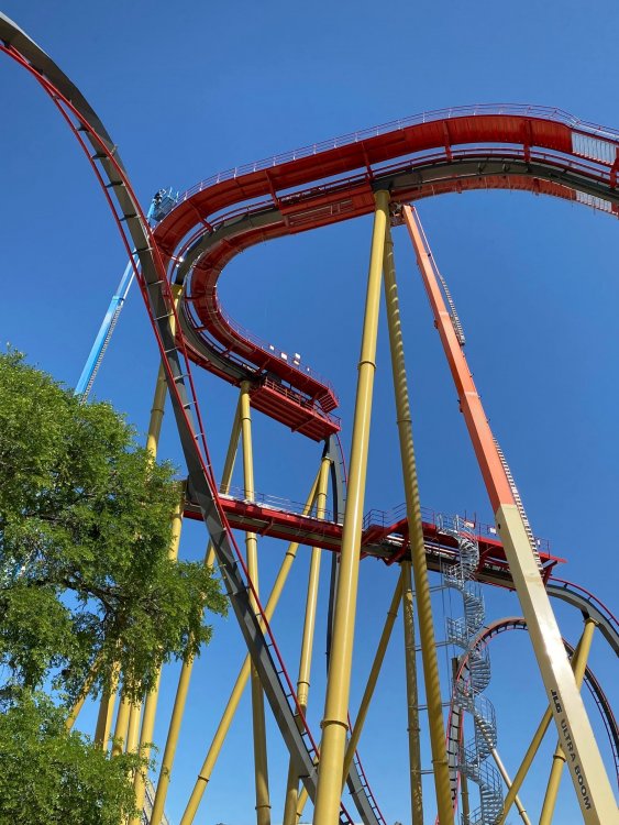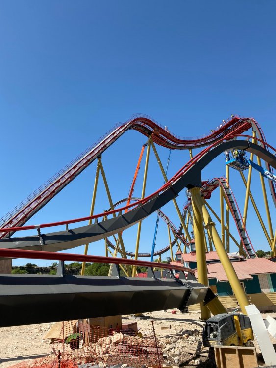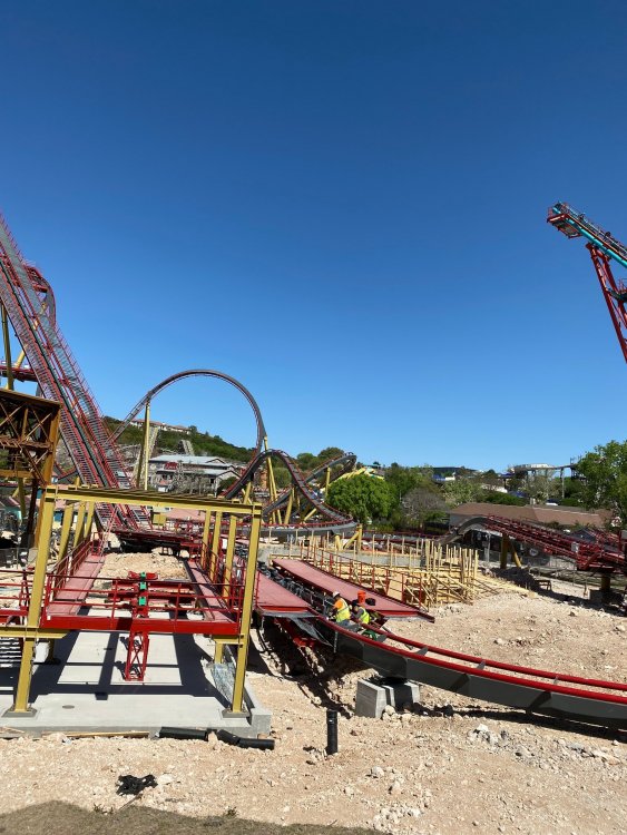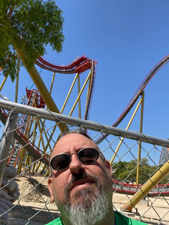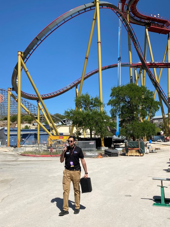 Life gets in the way so took me over a week. .but here's my TR from Fiesta Fest at SFFT on 4/9/22 FiestaFest is an event put on by American Coaster Enthusiasts, but ACE also invited those in the Thrill Seekers United (Texas based group) to participate as well if they wanted to. SFFT goes all out for events like this, and I try to attend when I can- and it's great to see all my friends from TSU (and ACE as well). here are LOTS of pics: best thing about these events, is that the check in is usually well before the park opens. . so even tho there were other events going on today (a cheer competition, and a car show in the parking lot). . still ended up with really up close parking. right next to the Valet parking (which - shocking to me- some people later in the day DID use, at $70 a spot!). Guess that's why Six Flags is doing that now. Got checked in and met up with my friend Sean (a local Austinite whom I often drive up to San Antonio for TSU events with) once we were all checked in (think the total count was ~125 people if not mistaken), we were brought into the park, and past rope drop area where Jorge gave us a welcoming to Fiesta Fest, and explained the agenda for the day (and how our badges would act as Flash Pass - yay!! that was super unexpected, and super appreciated!). .and then they brought our group back to Wonder Woman where tho we didn't have ERT, we did have 1st rides of the day on it before the park officially opened. Here's Jeff (not Jeffrey Siebert, who'd we see later, but the other Jeff in Promotions), who also "managed' our group today, and was telling us about the up close tour we'd be getting of Dr. Diabolical's Cliffhanger Coaster in about an hour. . they had just finished putting in the last piece of track the day before and it was now a full circuit! skipping past Wondy rides, and the other assorted stuff to about an hour later, and here's Jorge leading us back into the construction area, and giving us the stats and directions about being careful where we step and where we could and could not go. the construction guys were working on the lift hill, and stopped to wave hello to us. yeah. .we were gonna get really close! see? either a paint test for the Patina. . . or Dr. Diabolical has already started her experiments on unsuspecting workers! the transfer bay to work on the coasters, and the work that had already started on the Station (all that wood, and foundation work on the right) this is truly looking impressive as hell in person! and it just LOOMS over the biggest outdoor stage at the park. the great lawn, where we'd be later to watch the 30th Fireworks/cliff show. YEAH!!!! since the Train is not operating right now during construction, we were able to walk along the track to get some unique views of the new coaster LOVE this rare picture. . and have to thank Chris from SFFT for taking this pic of me. really love it. but here's the main reason we went up the tracks. . to see the Golden Bolt - the last piece input to complete the circuit. This will be visible from the Queue line if you know where to look for it. . . really cool. Unique views from the train tracks: after the tour, we were free to enjoy the park until 5 pm, when it was time for a performance of Rockin at Rockville High - one of the classic shows the park has brought back for it's 30th Anniversary. even tho we had ERT on it after park close, we also had Flash Pass, so we headed right over to Iron Rattler. I really like how they have added Single Rider lines, in addition to Flash Pass lines to several of the Big coasters now. then we tempted fate and got in line for DareDevil Dive. I've actually only once before gotten in line ,and ridden it without having to wait out a shutdown and maintenance having to come reset. but the universe was on our side today, and we not only - using Flash Pass - got up to the station pretty quickly, but we actually got on it and got a ride with no breakdown! since we hadn't really eaten yet today (tho I think that there were perhaps cookies handed out in the morning. . can't recall. . LOL). . but it turned out that SFFT is doing a 30th Anniversary Food festival too, and added bonus to our event were some food/drink coupons to the special booths (most of the food is also avail as a "snack" on meal plan, so I recommend trying them out. Of course, I headed here - and ended up convincing everyone I was hanging with to try the Armadillo Egg. . OMG . .it was so good. nearby at the Pour Haus festival pop up, I got the 30th. . . wow, this thing is kinda scary, in that it tastes like a wonderful fruit punch. . .but man does it sneak up on you! Recommended and of course, we can't go into Sangerfest Halle without stopping to grab a pic with Sweet Connie. I love the renovations in here, and I'm not sure that Jeffrey Siebert really knows just how much I appreciate that they "saved" Sweet Connie when they re-did everything. Yes, I've told him multiple times how much I appreciate it, but not sure he "gets" how wonderful I think it is that she exists in this park. She's an ICON. .LOL me, Paige, Conne, Sean, and Juan (my "hang out crew" for most of the day) it had gotten hot, and the water rides were pulling huge lines . . so we took advantage of the Flash Pass to ride both Gully Washer (the waterfall was on, and we got soaked. . so no pics, because phone was put away), and also Bug's Whitewater Rapids. . . I did not feel guilty at ALL bypassing this massive hour + line. Sam and Dragon at the Flash Pass entrance! Sean didn't want to get wet, so he took this pic of us as we left the station: and yes, we got a bit wet - much of it from that darn spitting dragon, that TRACKS the log, and gets everyone soaked! around this time, I left the park for 30 minutes to run across the freeway and check into my hotel (had to do it in person to make sure everything went smoothly since i had a free night I was using to make up for a major S#!tshow the last time i stayed there). . worked out well, and h