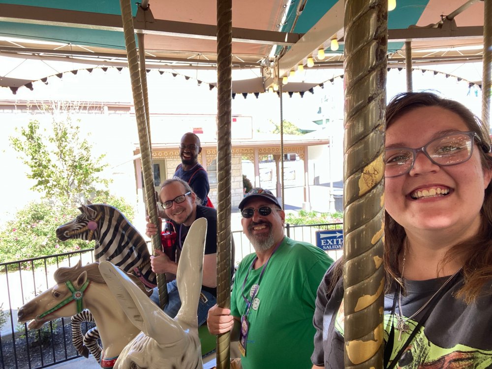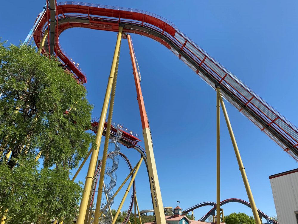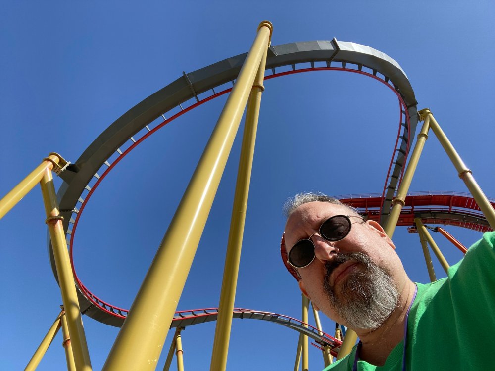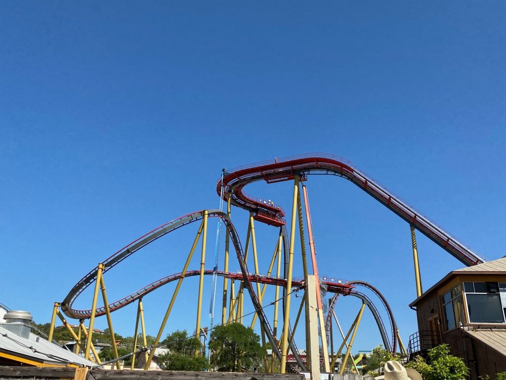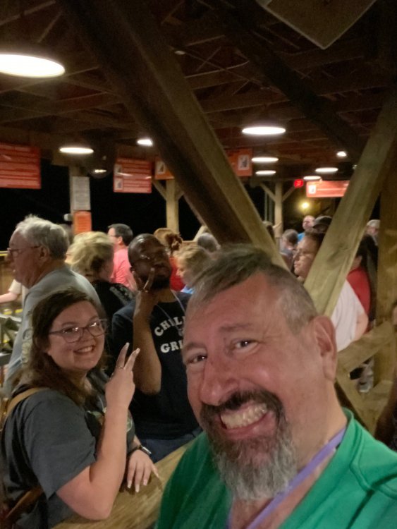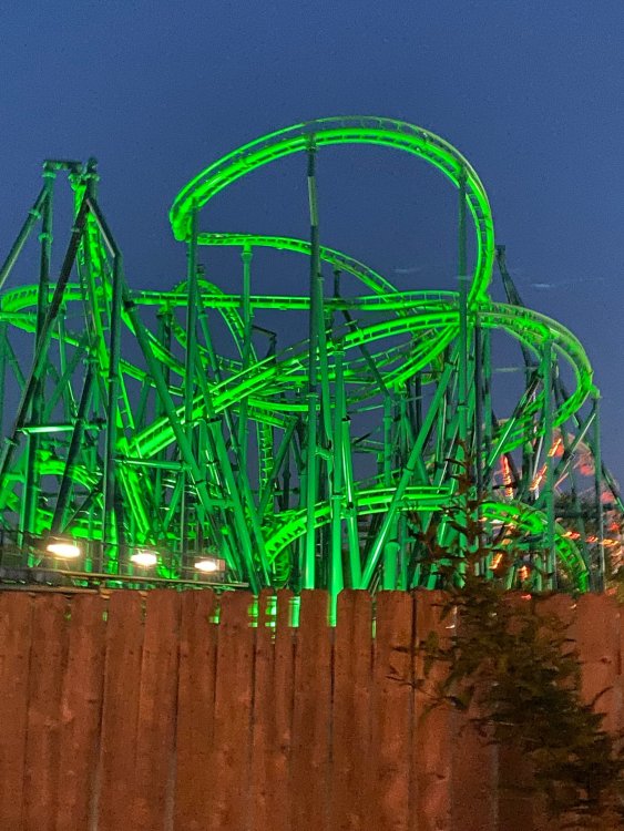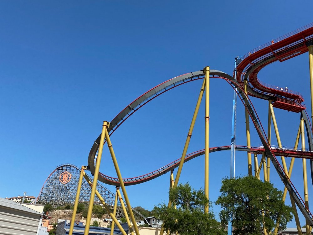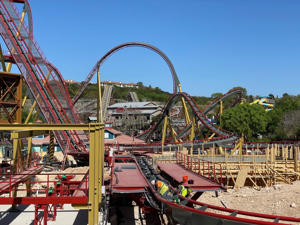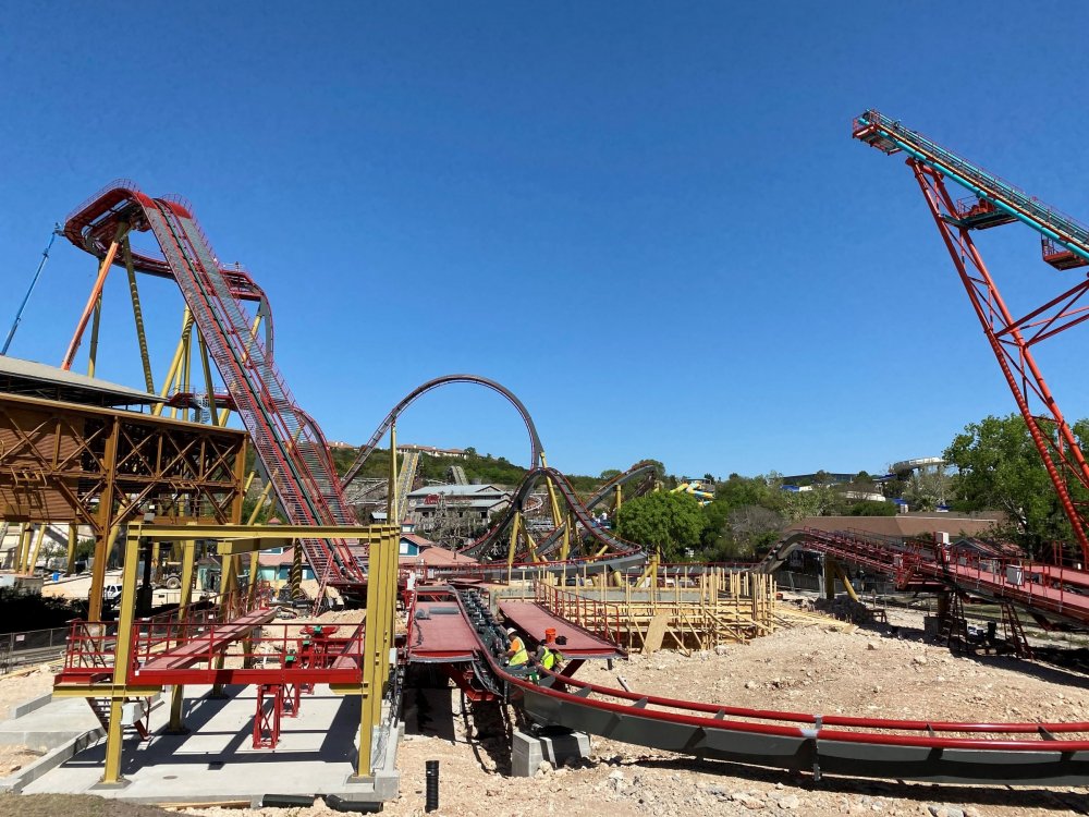 Life gets in the way so took me over a week. .but here's my TR from Fiesta Fest at SFFT on 4/9/22 FiestaFest is an event put on by American Coaster Enthusiasts, but ACE also invited those in the Thrill Seekers United (Texas based group) to participate as well if they wanted to. SFFT goes all out for events like this, and I try to attend when I can- and it's great to see all my friends from TSU (and ACE as well). here are LOTS of pics: best thing about these events, is that the check in is usually well before the park opens. . so even tho there were other events going on today (a cheer competition, and a car show in the parking lot). . still ended up with really up close parking. right next to the Valet parking (which - shocking to me- some people later in the day DID use, at $70 a spot!). Guess that's why Six Flags is doing that now. Got checked in and met up with my friend Sean (a local Austinite whom I often drive up to San Antonio for TSU events with) once we were all checked in (think the total count was ~125 people if not mistaken), we were brought into the park, and past rope drop area where Jorge gave us a welcoming to Fiesta Fest, and explained the agenda for the day (and how our badges would act as Flash Pass - yay!! that was super unexpected, and super appreciated!). .and then they brought our group back to Wonder Woman where tho we didn't have ERT, we did have 1st rides of the day on it before the park officially opened. Here's Jeff (not Jeffrey Siebert, who'd we see later, but the other Jeff in Promotions), who also "managed' our group today, and was telling us about the up close tour we'd be getting of Dr. Diabolical's Cliffhanger Coaster in about an hour. . they had just finished putting in the last piece of track the day before and it was now a full circuit! skipping past Wondy rides, and the other assorted stuff to about an hour later, and here's Jorge leading us back into the construction area, and giving us the stats and directions about being careful where we step and where we could and could not go. the construction guys were working on the lift hill, and stopped to wave hello to us. yeah. .we were gonna get really close! see? either a paint test for the Patina. . . or Dr. Diabolical has already started her experiments on unsuspecting workers! the transfer bay to work on the coasters, and the work that had already started on the Station (all that wood, and foundation work on the right) this is truly looking impressive as hell in person! and it just LOOMS over the biggest outdoor stage at the park. the great lawn, where we'd be later to watch the 30th Fireworks/cliff show. YEAH!!!! since the Train is not operating right now during construction, we were able to walk along the track to get some unique views of the new coaster LOVE this rare picture. . and have to thank Chris from SFFT for taking this pic of me. really love it. but here's the main reason we went up the tracks. . to see the Golden Bolt - the last piece input to complete the circuit. This will be visible from the Queue line if you know where to look for it. . . really cool. Unique views from the train tracks: after the tour, we were free to enjoy the park until 5 pm, when it was time for a performance of Rockin at Rockville High - one of the classic shows the park has brought back for it's 30th Anniversary. even tho we had ERT on it after park close, we also had Flash Pass, so we headed right over to Iron Rattler. I really like how they have added Single Rider lines, in addition to Flash Pass lines to several of the Big coasters now. then we tempted fate and got in line for DareDevil Dive. I've actually only once before gotten in line ,and ridden it without having to wait out a shutdown and maintenance having to come reset. but the universe was on our side today, and we not only - using Flash Pass - got up to the station pretty quickly, but we actually got on it and got a ride with no breakdown! since we hadn't really eaten yet today (tho I think that there were perhaps cookies handed out in the morning. . can't recall. . LOL). . but it turned out that SFFT is doing a 30th Anniversary Food festival too, and added bonus to our event were some food/drink coupons to the special booths (most of the food is also avail as a "snack" on meal plan, so I recommend trying them out. Of course, I headed here - and ended up convincing everyone I was hanging with to try the Armadillo Egg. . OMG . .it was so good. nearby at the Pour Haus festival pop up, I got the 30th. . . wow, this thing is kinda scary, in that it tastes like a wonderful fruit punch. . .but man does it sneak up on you! Recommended and of course, we can't go into Sangerfest Halle without stopping to grab a pic with Sweet Connie. I love the renovations in here, and I'm not sure that Jeffrey Siebert really knows just how much I appreciate that they "saved" Sweet Connie when they re-did everything. Yes, I've told him multiple times how much I appreciate it, but not sure he "gets" how wonderful I think it is that she exists in this park. She's an ICON. .LOL me, Paige, Conne, Sean, and Juan (my "hang out crew" for most of the day) it had gotten hot, and the water rides were pulling huge lines . . so we took advantage of the Flash Pass to ride both Gully Washer (the waterfall was on, and we got soaked. . so no pics, because phone was put away), and also Bug's Whitewater Rapids. . . I did not feel guilty at ALL bypassing this massive hour + line. Sam and Dragon at the Flash Pass entrance! Sean didn't want to get wet, so he took this pic of us as we left the station: and yes, we got a bit wet - much of it from that darn spitting dragon, that TRACKS the log, and gets everyone soaked! around this time, I left the park for 30 minutes to run across the freeway and check into my hotel (had to do it in person to make sure everything went smoothly since i had a free night I was using to make up for a major S#!tshow the last time i stayed there). . worked out well, and h