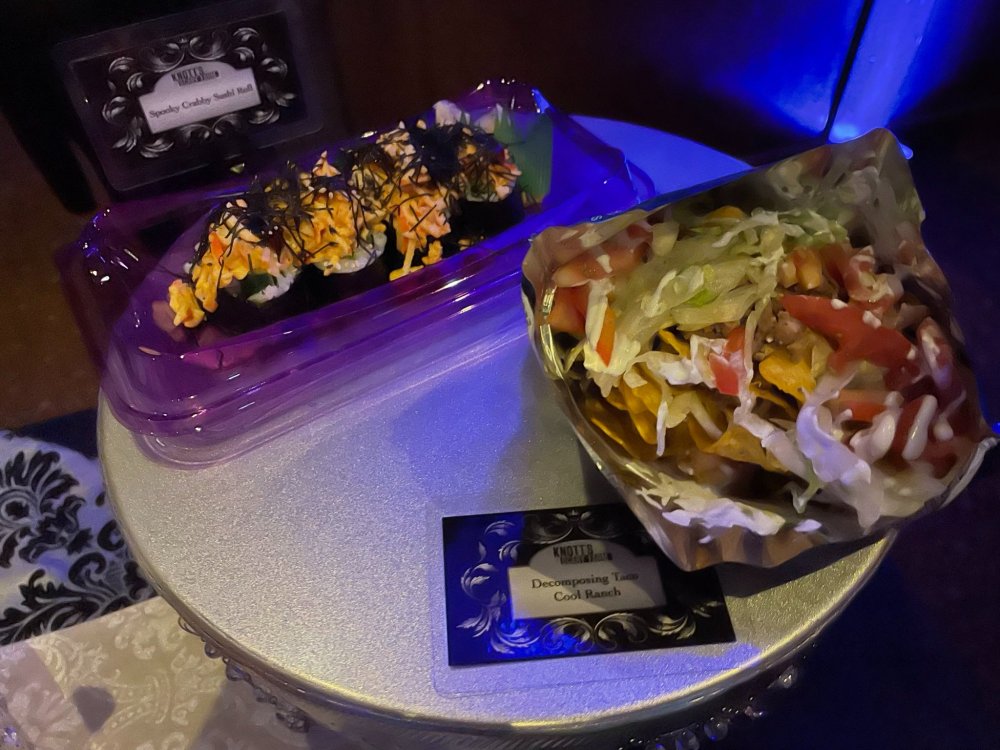 Knott's Berry Farm just held one of the most unique media previews ever for Knott's Scary Farm! 2022 is going to be an *awesome* year for Scary Farm, starting Sept. 22! TPR is ready to preview everything that Scary Farm has in store for this season! We enjoyed a pre-dinner reception featuring artwork from this year's Beyond the Fog art show, featuring artwork inspired by all generations of Halloween Haunt. Also enjoyed the "I Vant Your Blood", a syringe drink with vodka and Strawberry Lemonade. Yes please! We were then asked to find seats in the main dining space, for a legit Haunt banquet comprised of samples of a ton of the food and drinks that will be available throughout the park this year. "Kindly find your seats..." Here is what we sampled! Some of the photos were better at the preview table, so here they are! The Spooky Crabby Sushi Roll was on point! So was the Canine Candy Corn! Is "one of everything" too much? A look at some of the merchandise available this year. Haunt + Tiki = Yes, yes, yes! Take your pick! Which is your favorite maze represented? Oh hey, Snoopy! We can't wait for September 22, and seeing one of the new mazes this year: The Grimoire! Plan your visit: https://www.knotts.com/events/scary-farm/calendar3 points